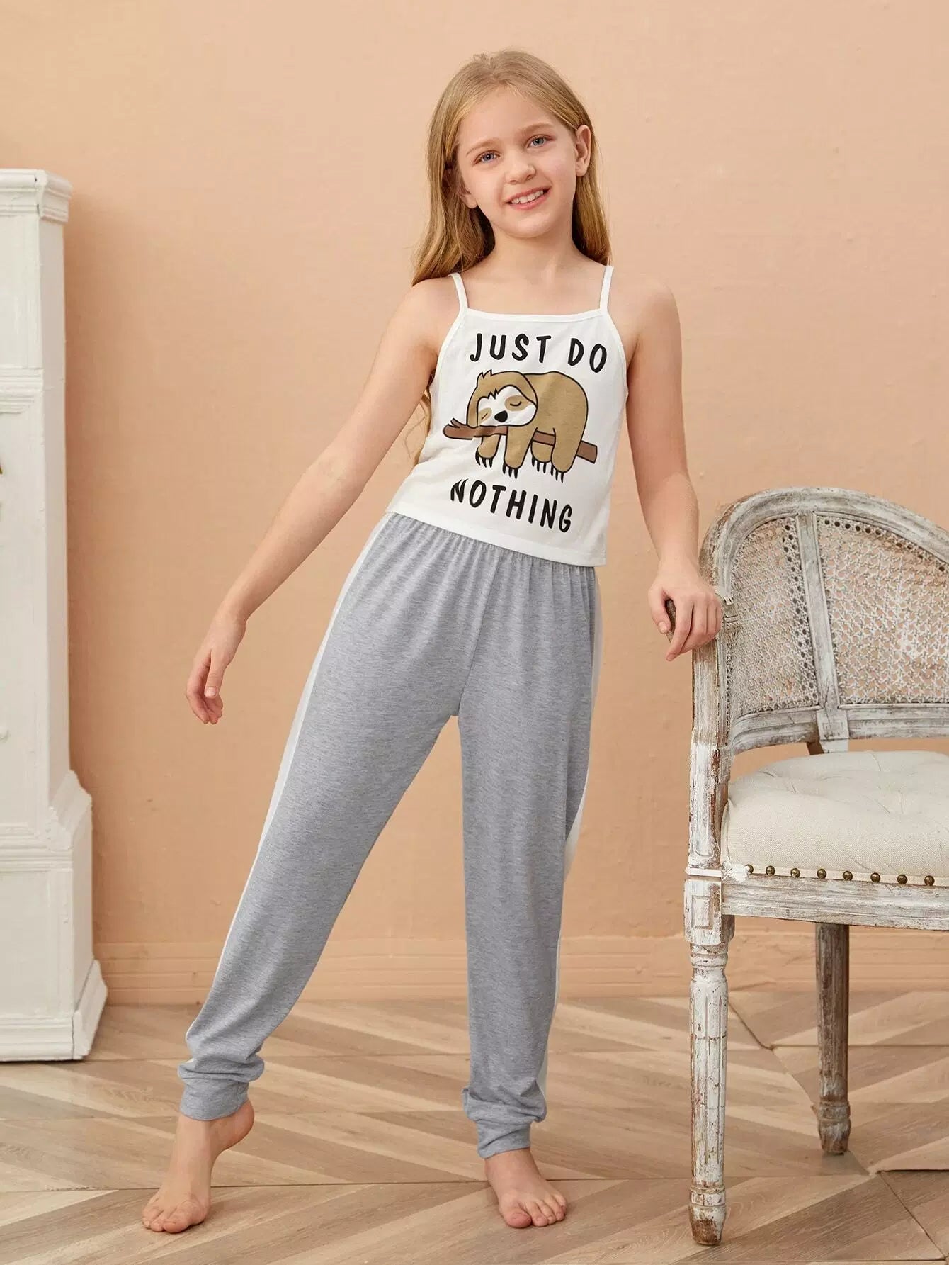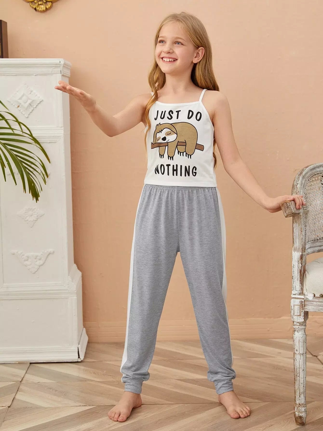 Girls Cartoon And Slogan Graphic PJ Set