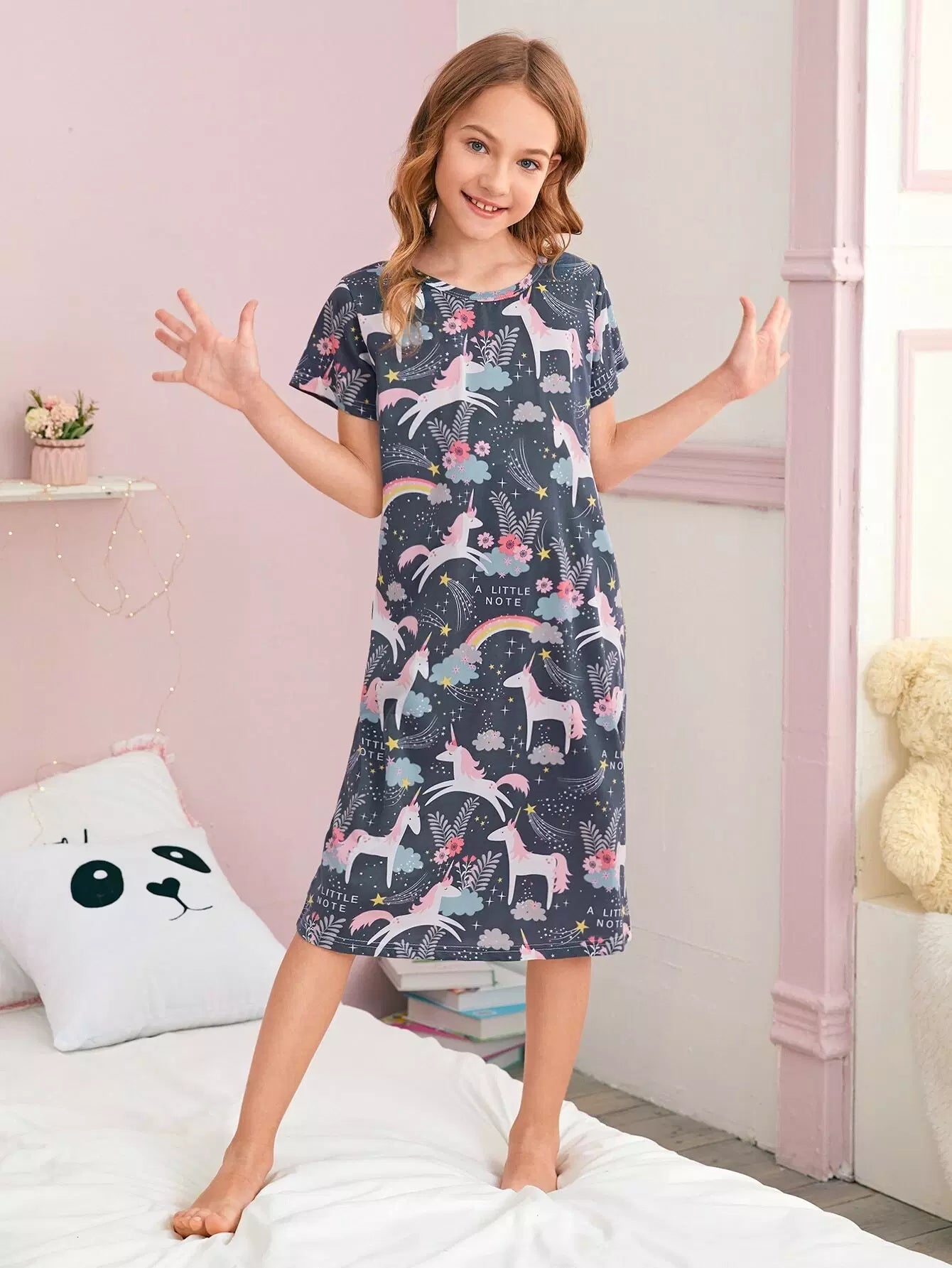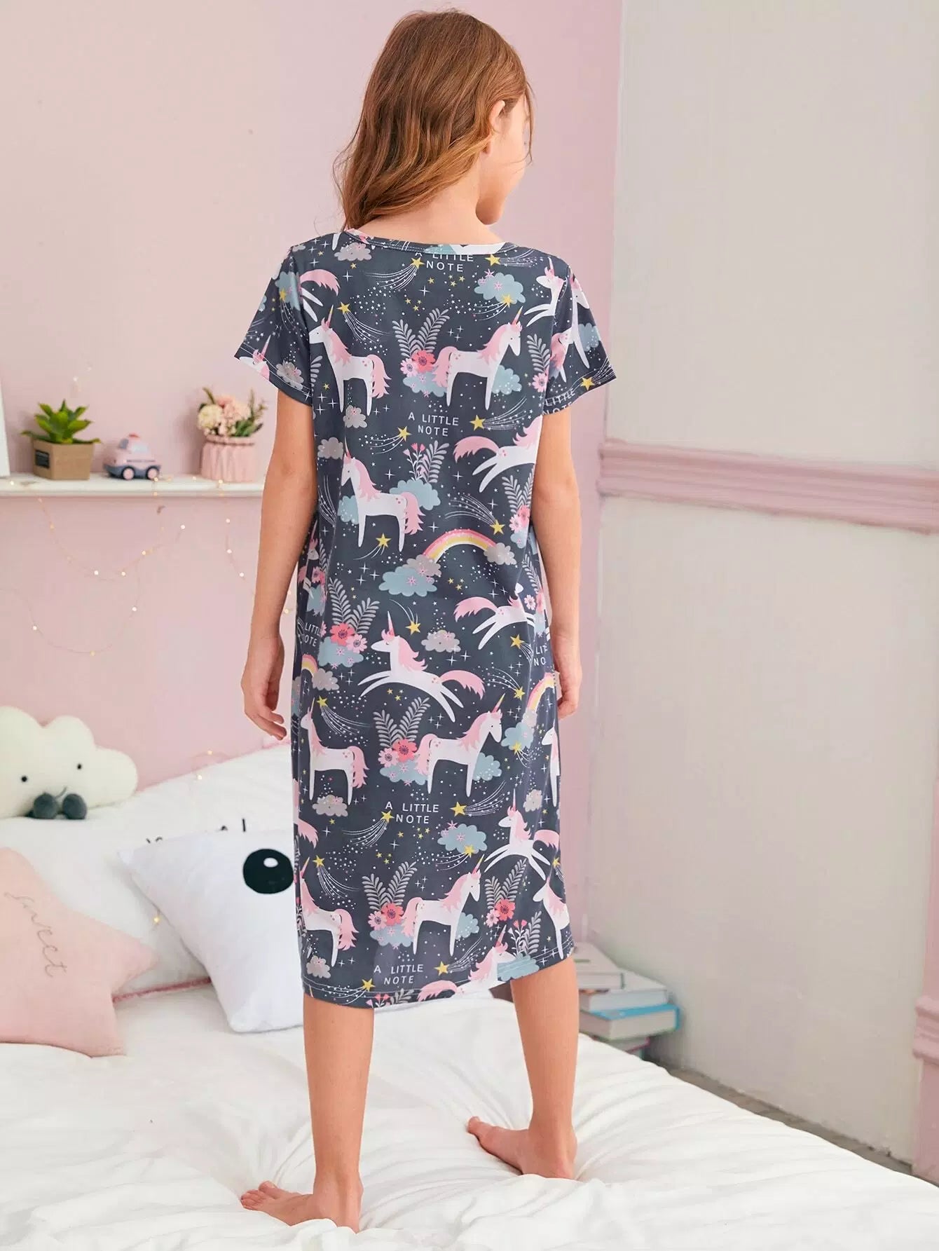 Girls Cartoon Unicorn Print Night Dress