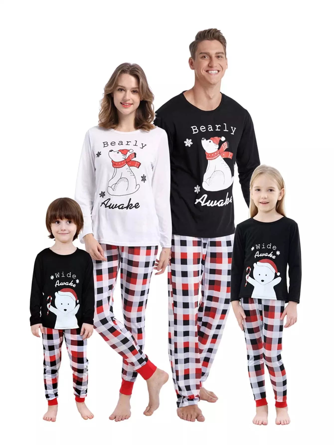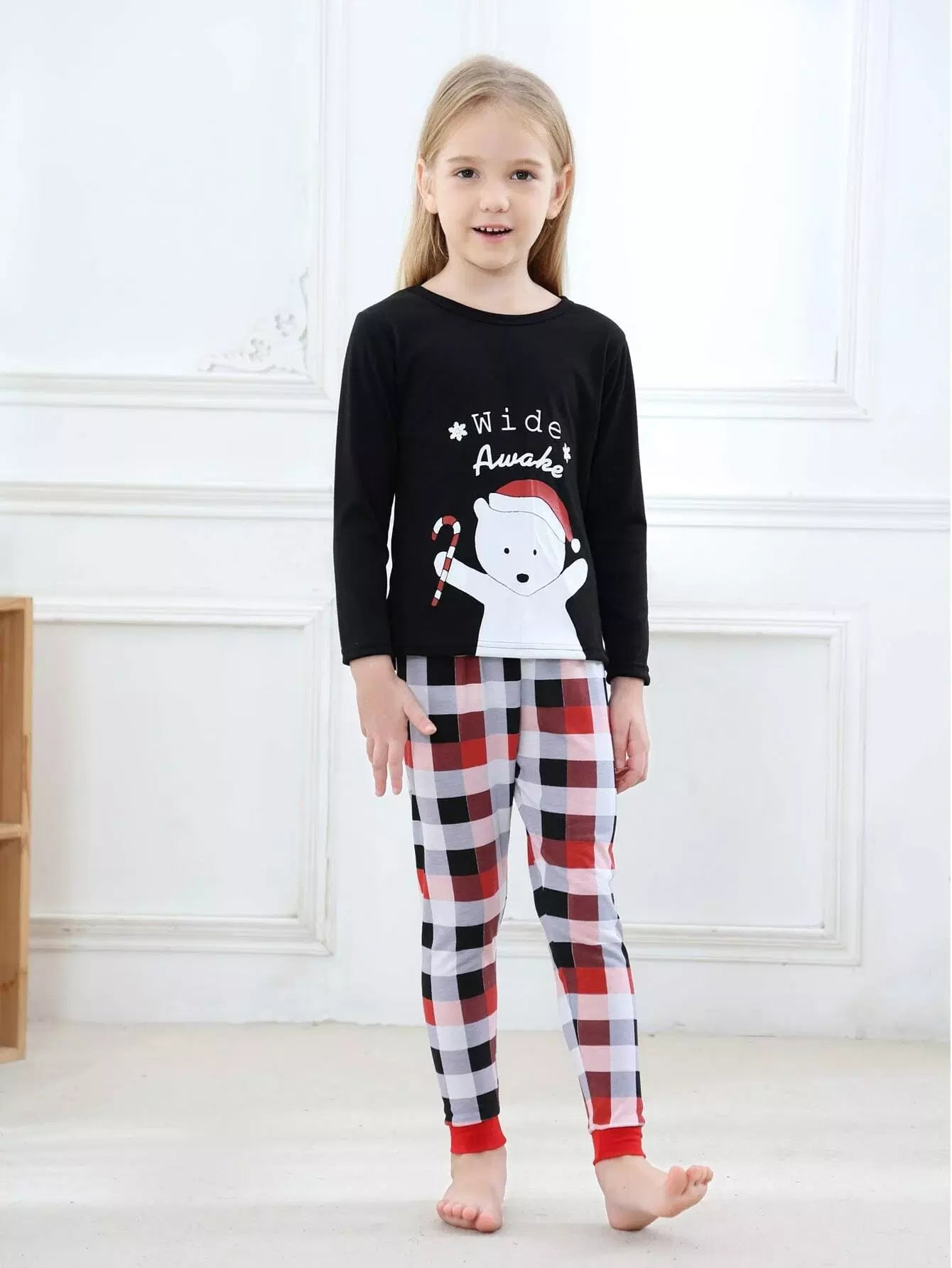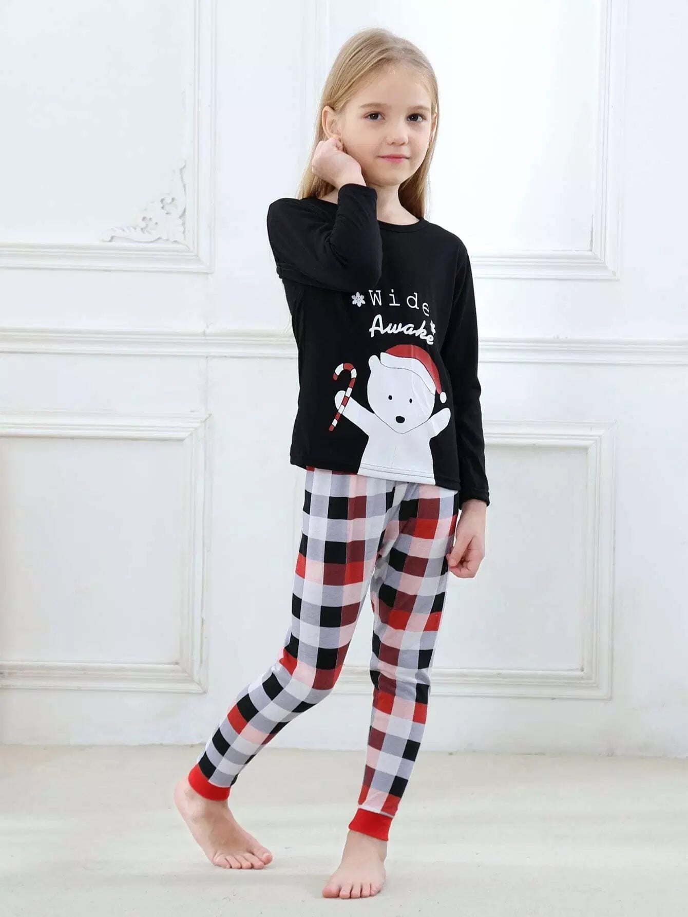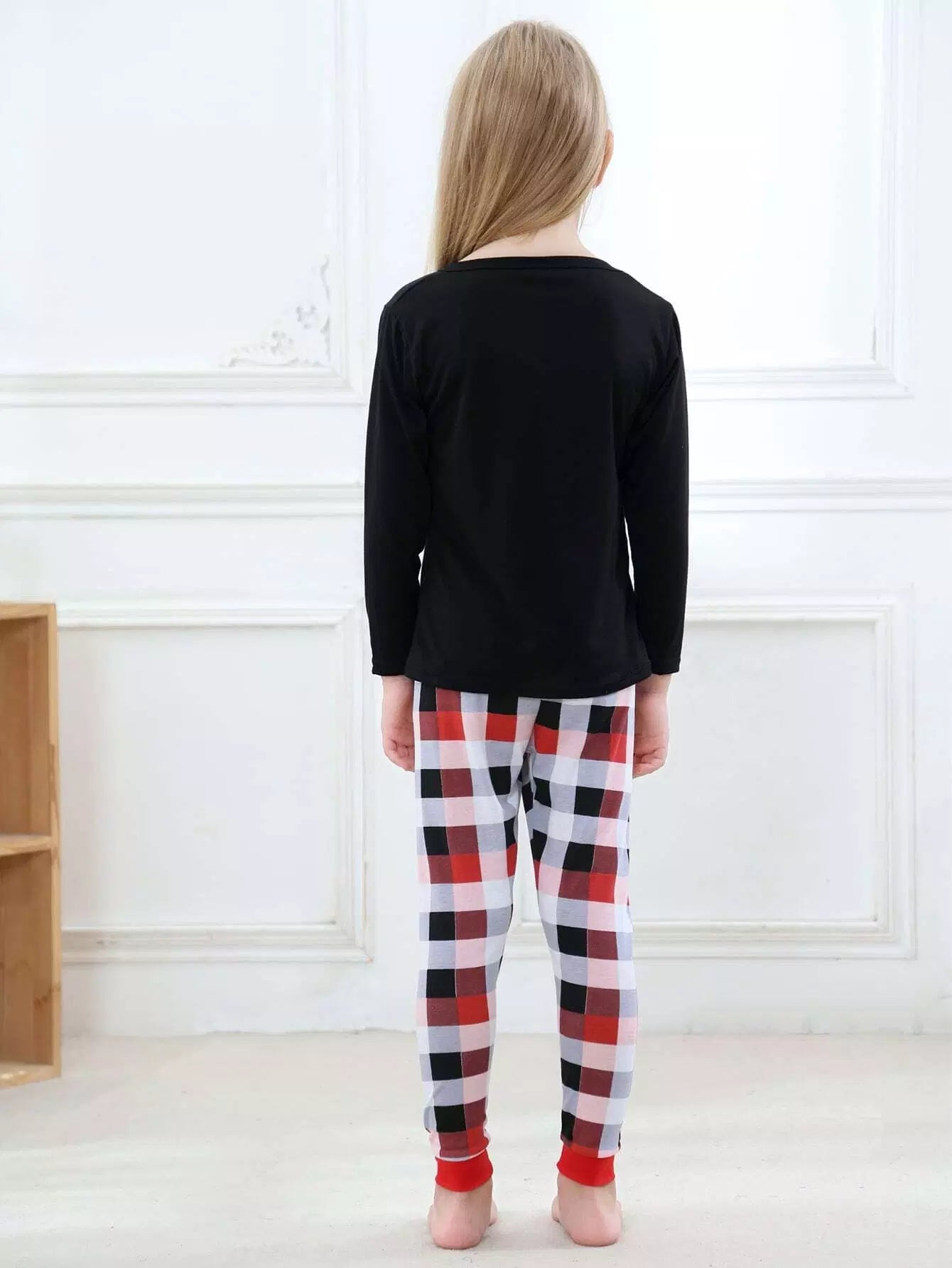 Girls Christmas Print 1 Top and Plaid 1 Pants Snug Fit PJ Set