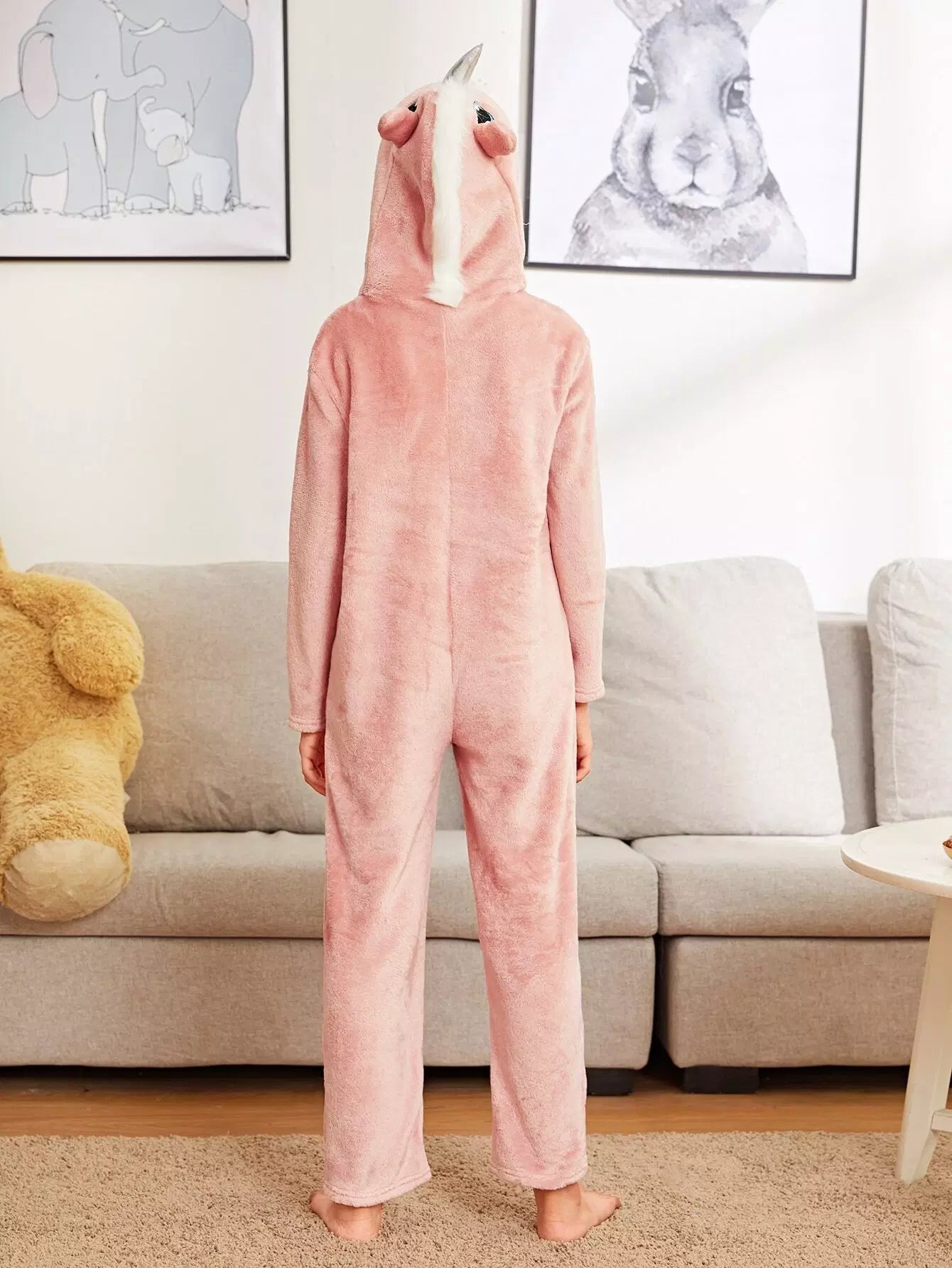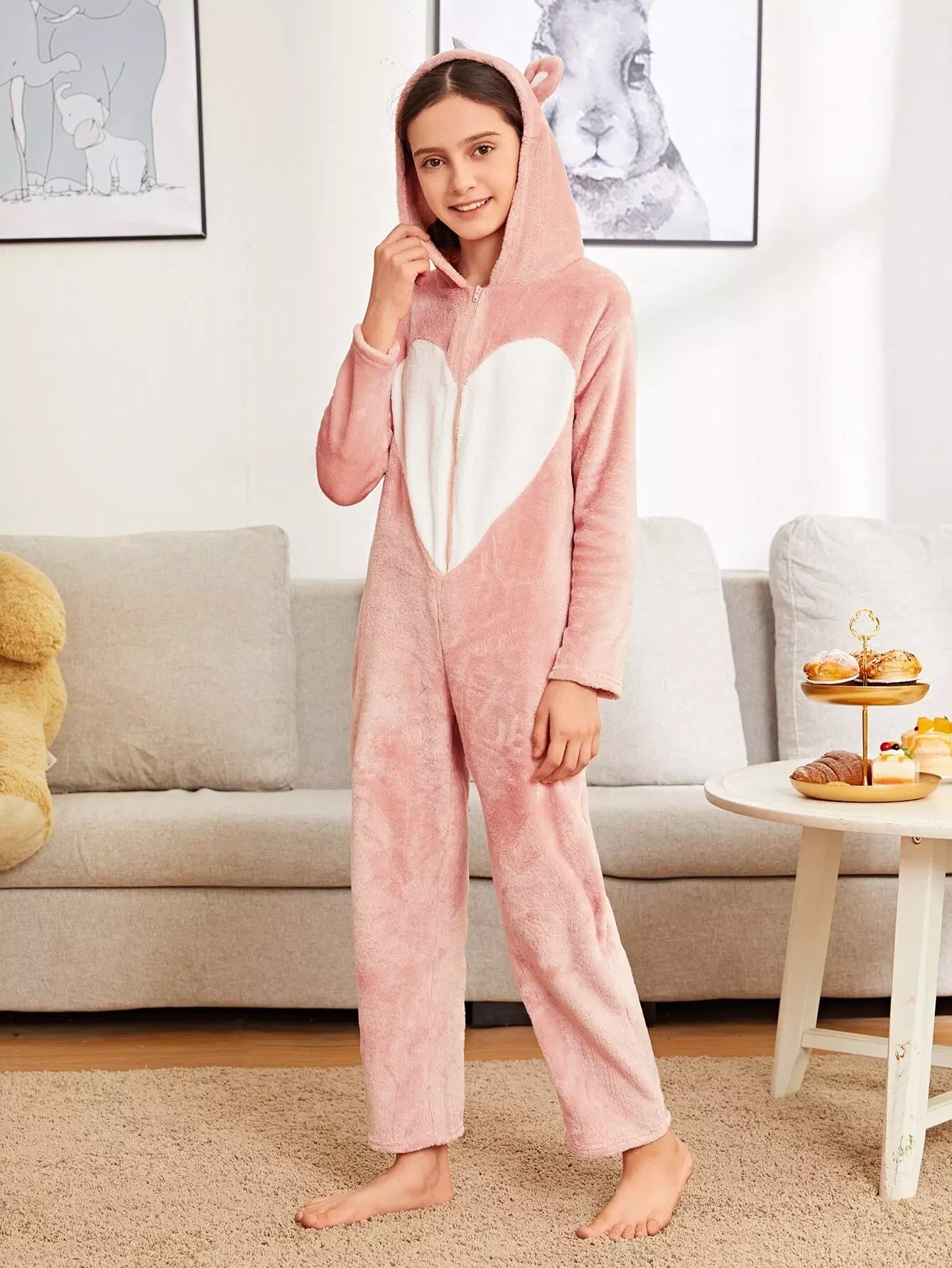 Girls Heart Pattern Zipper Placket Front Unicorn Onesie