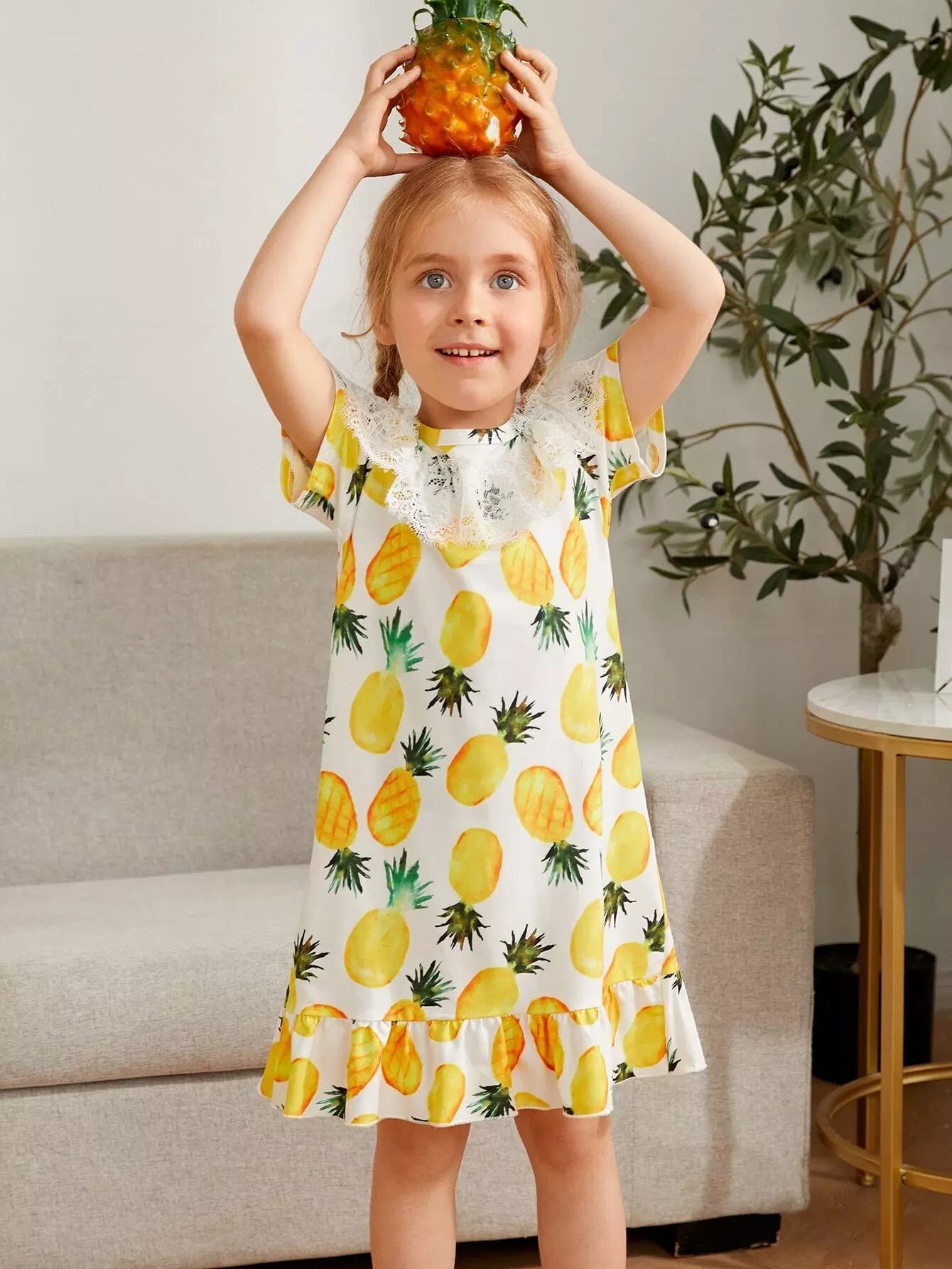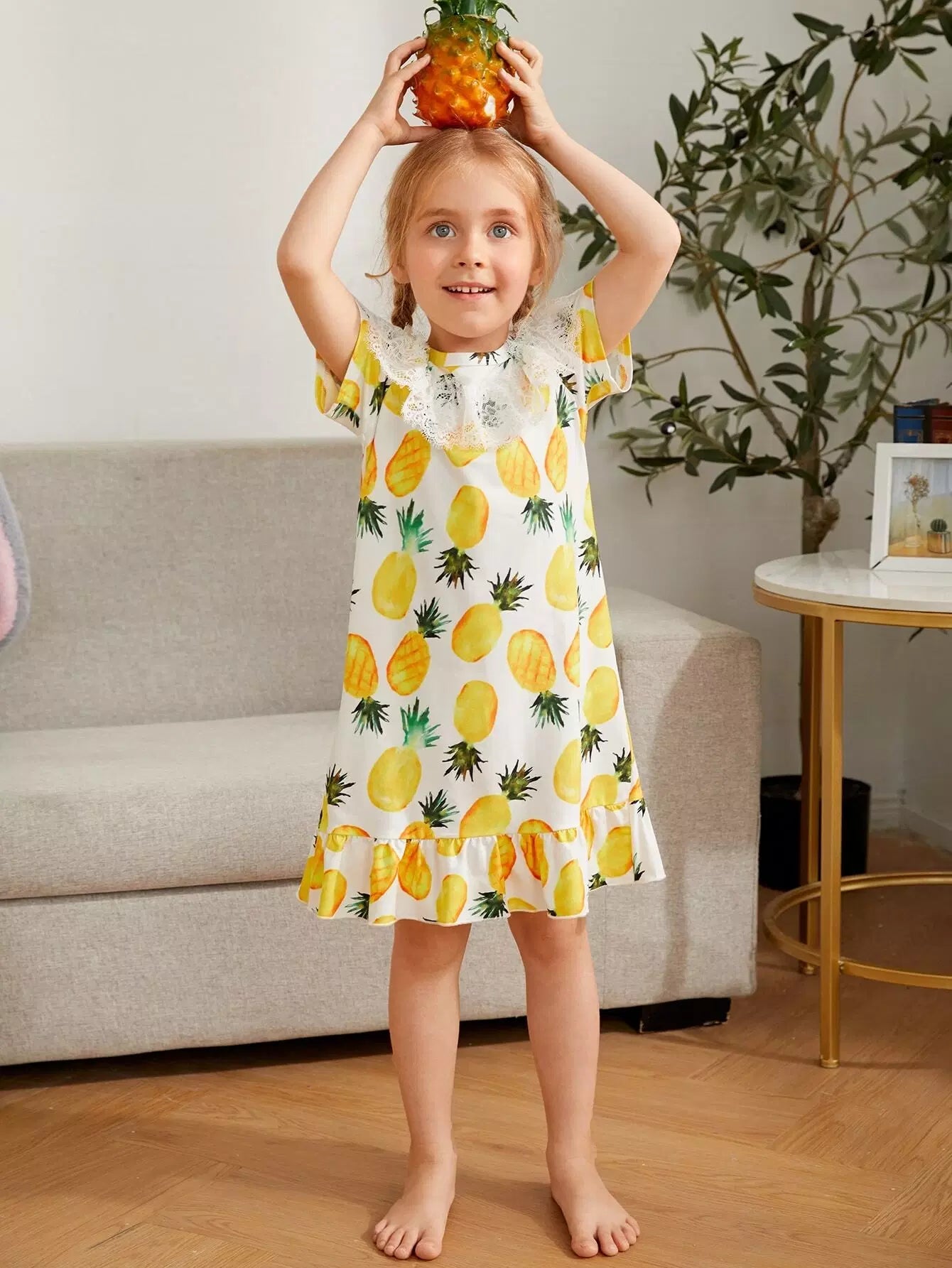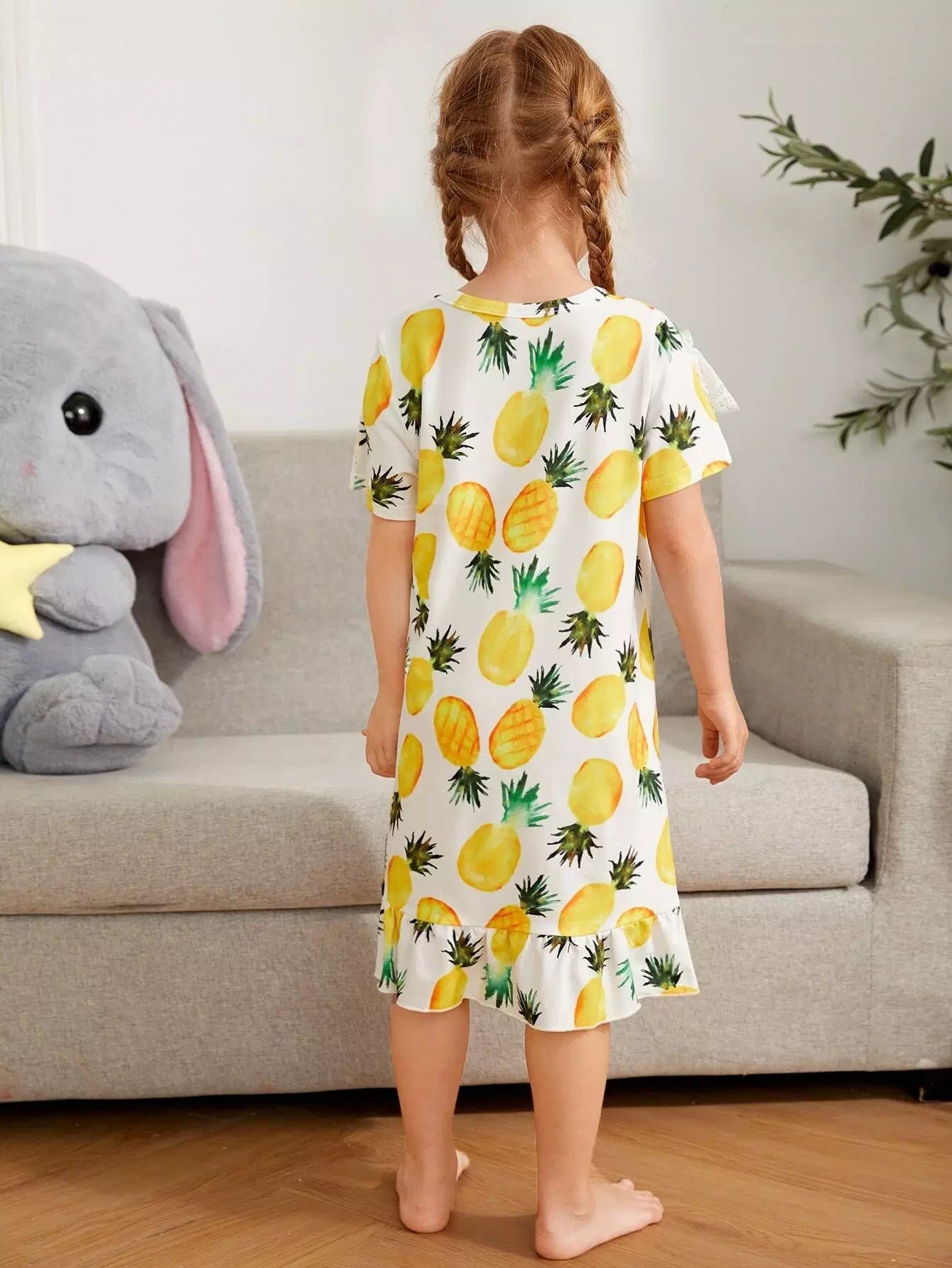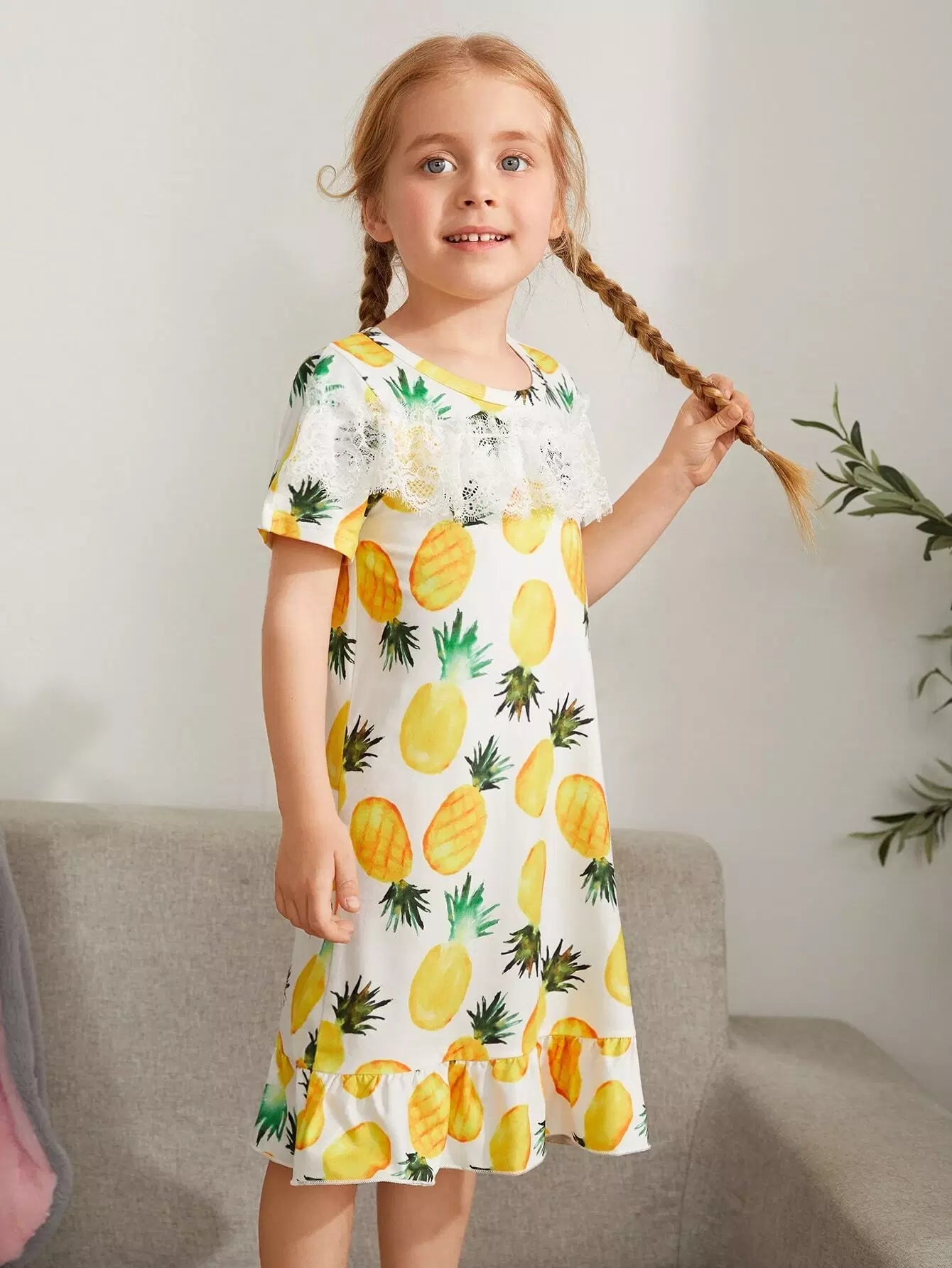 Toddler Girls Allover Pineapple Contrast Lace Night Dress