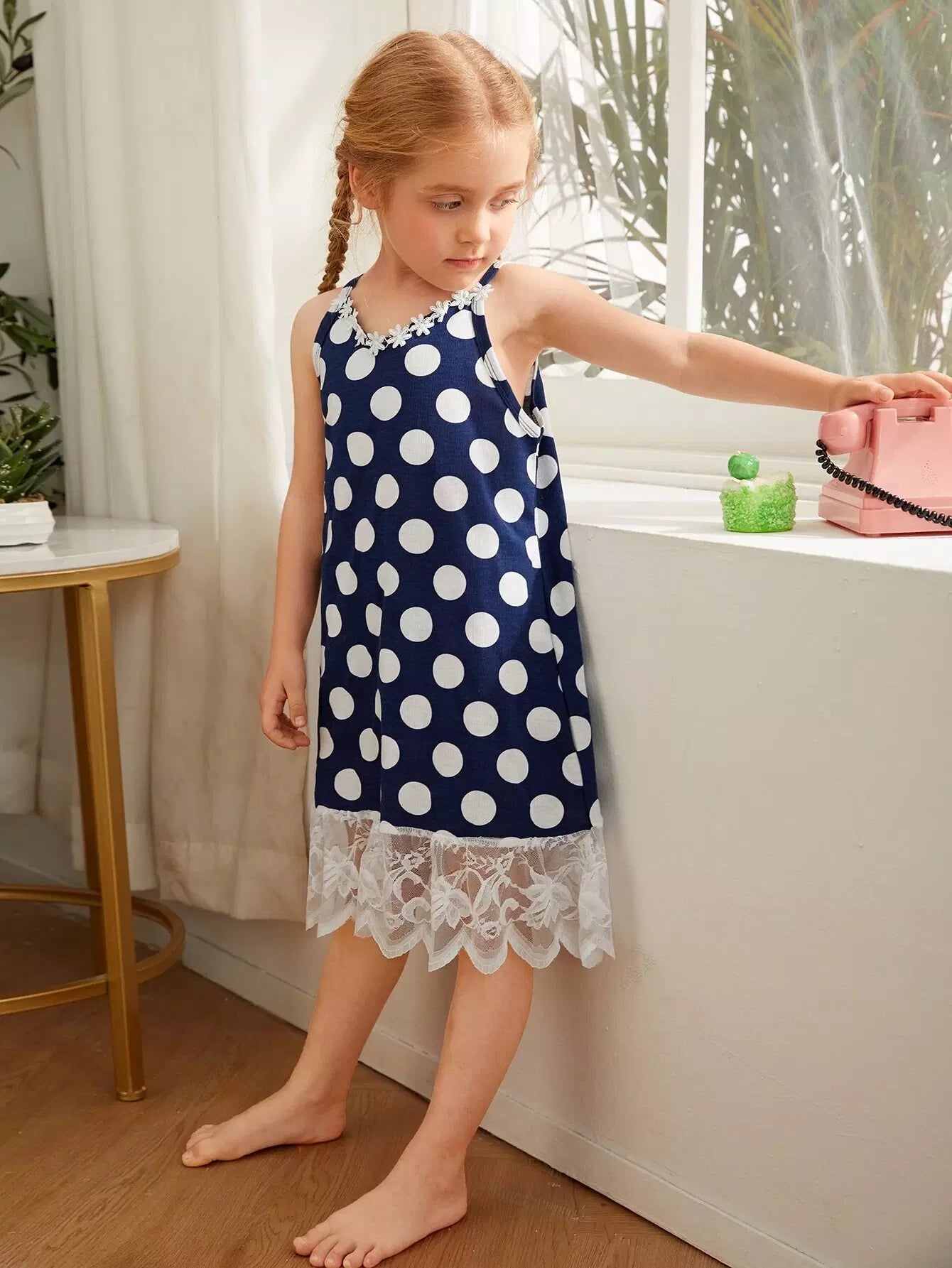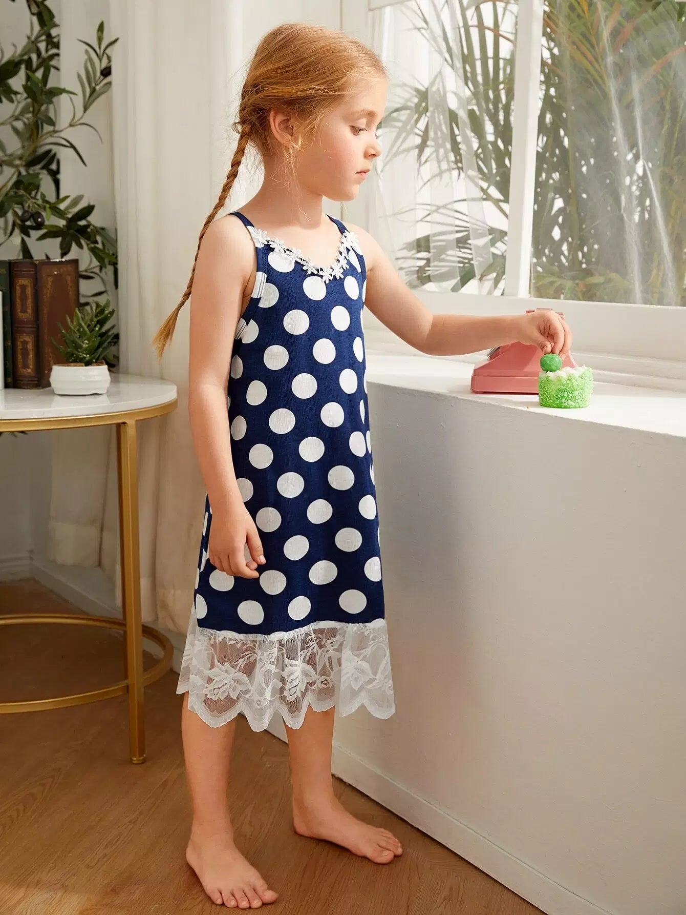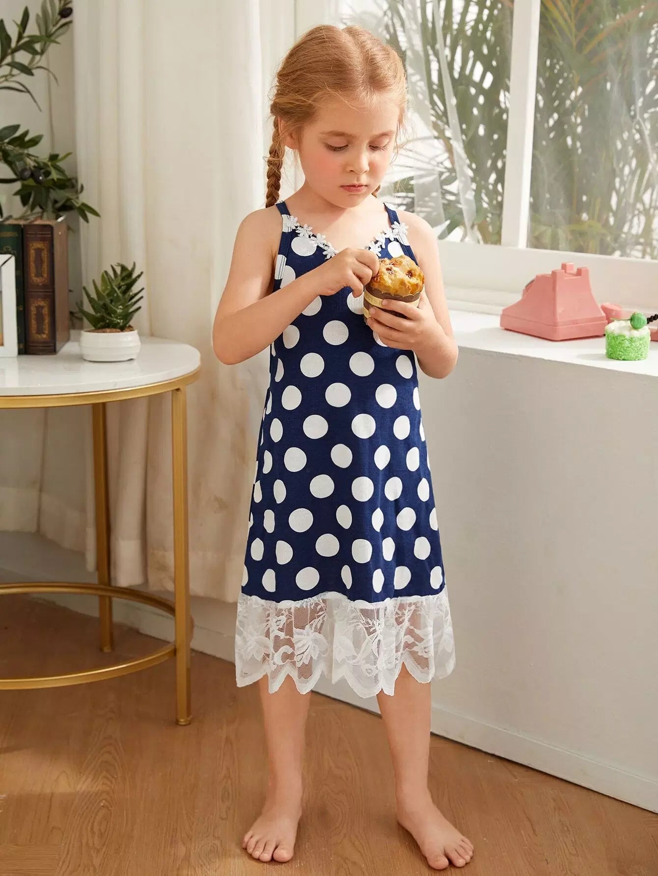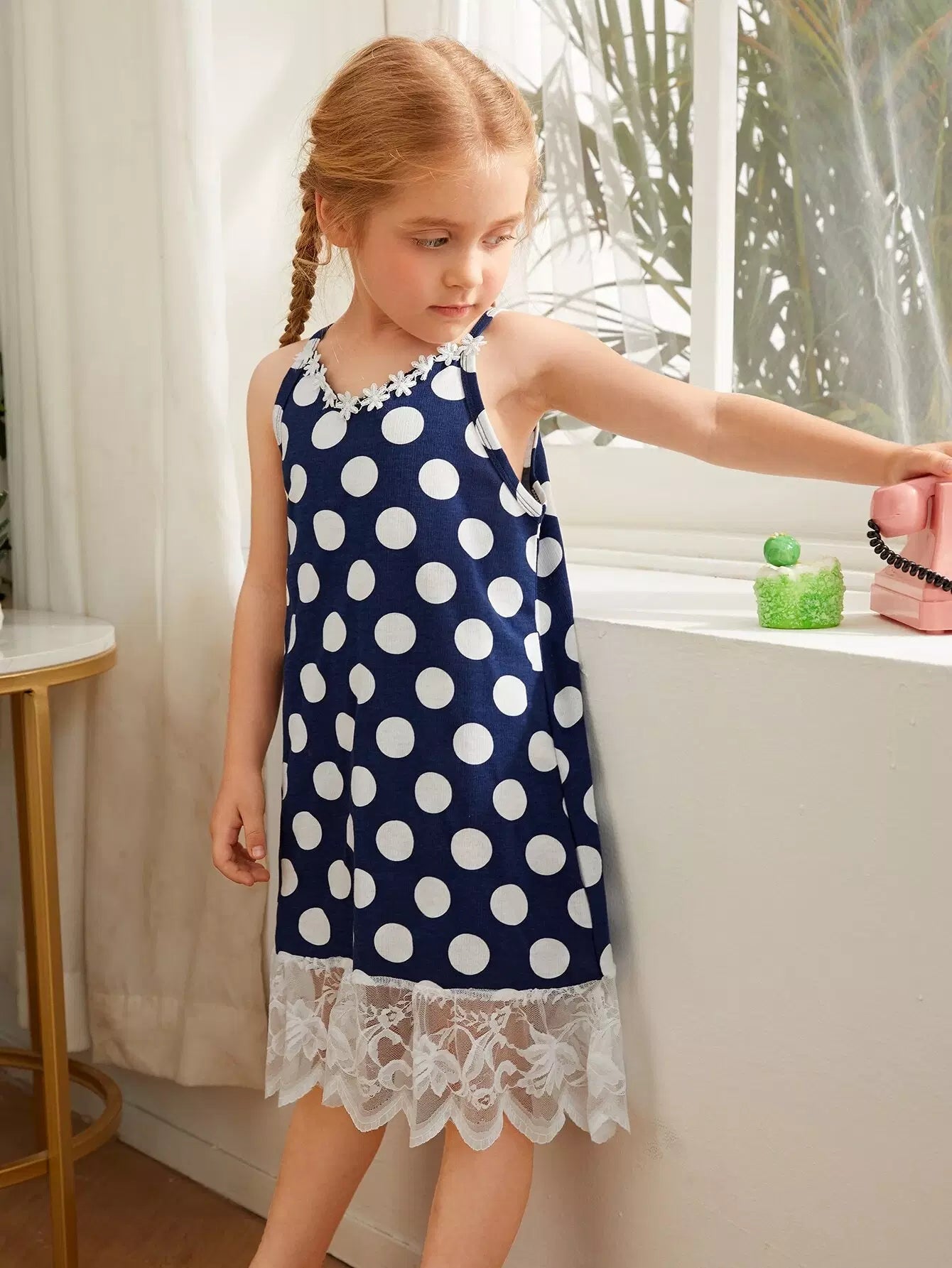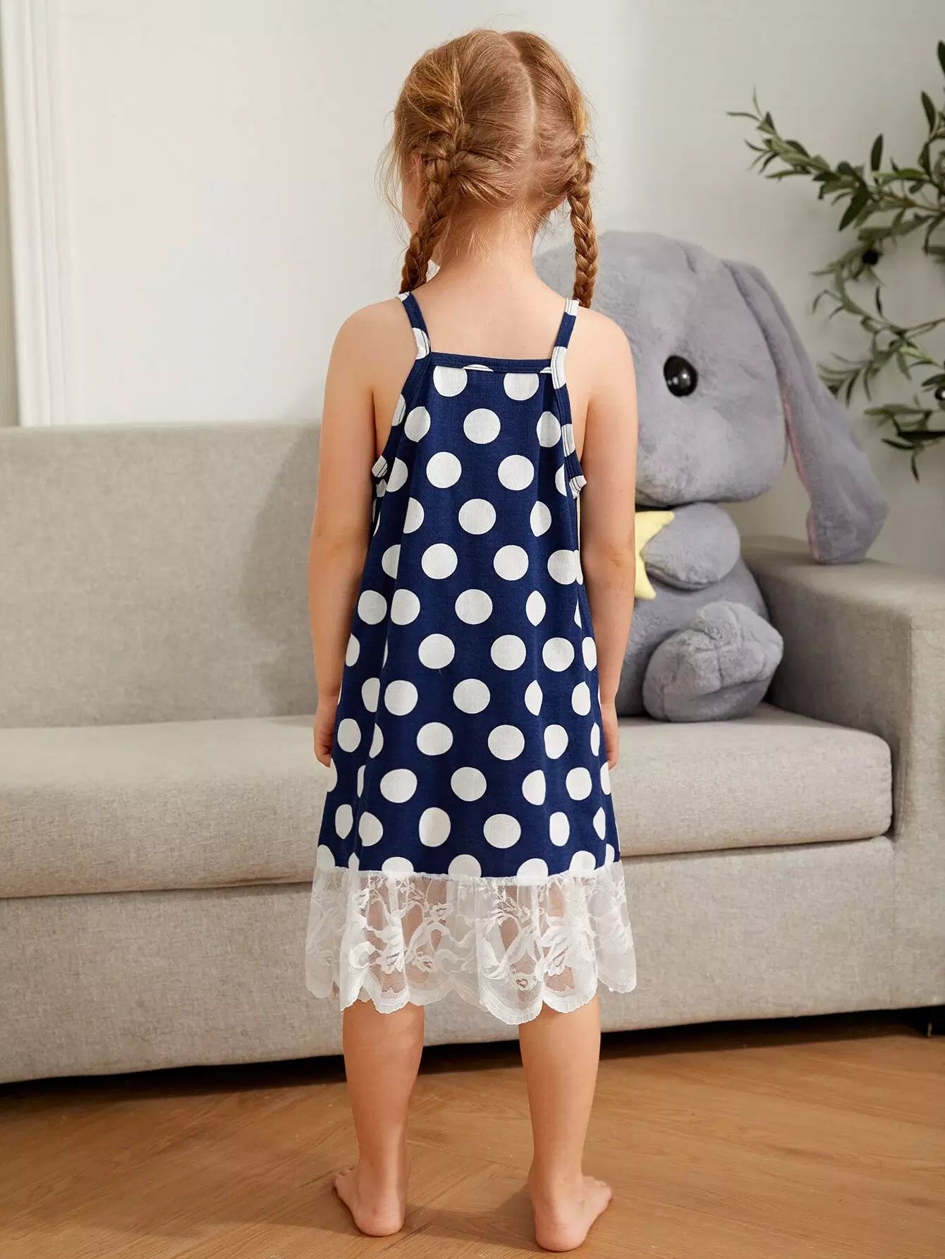 Toddler Girls Polka Dot Lace Hem Cami Dress