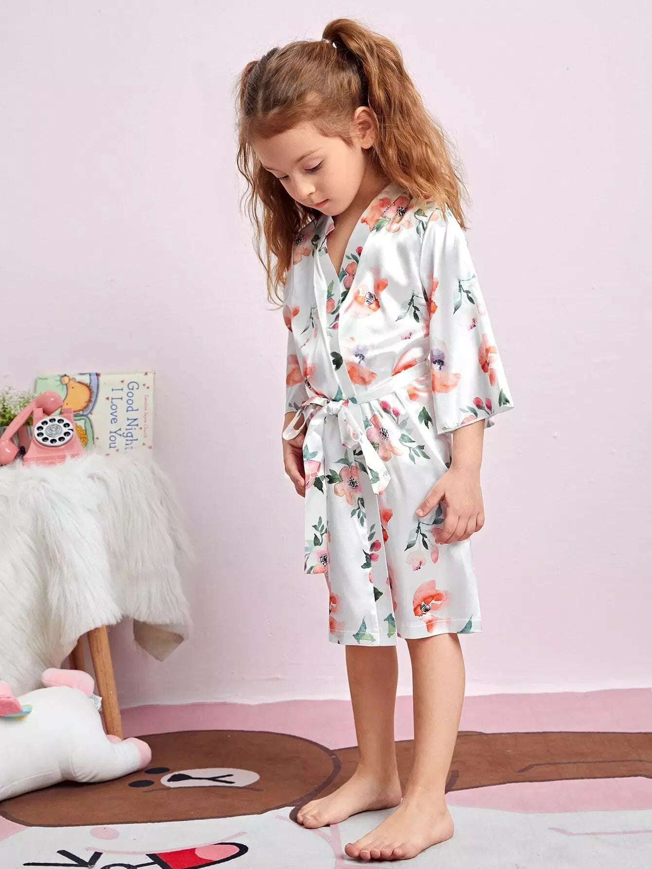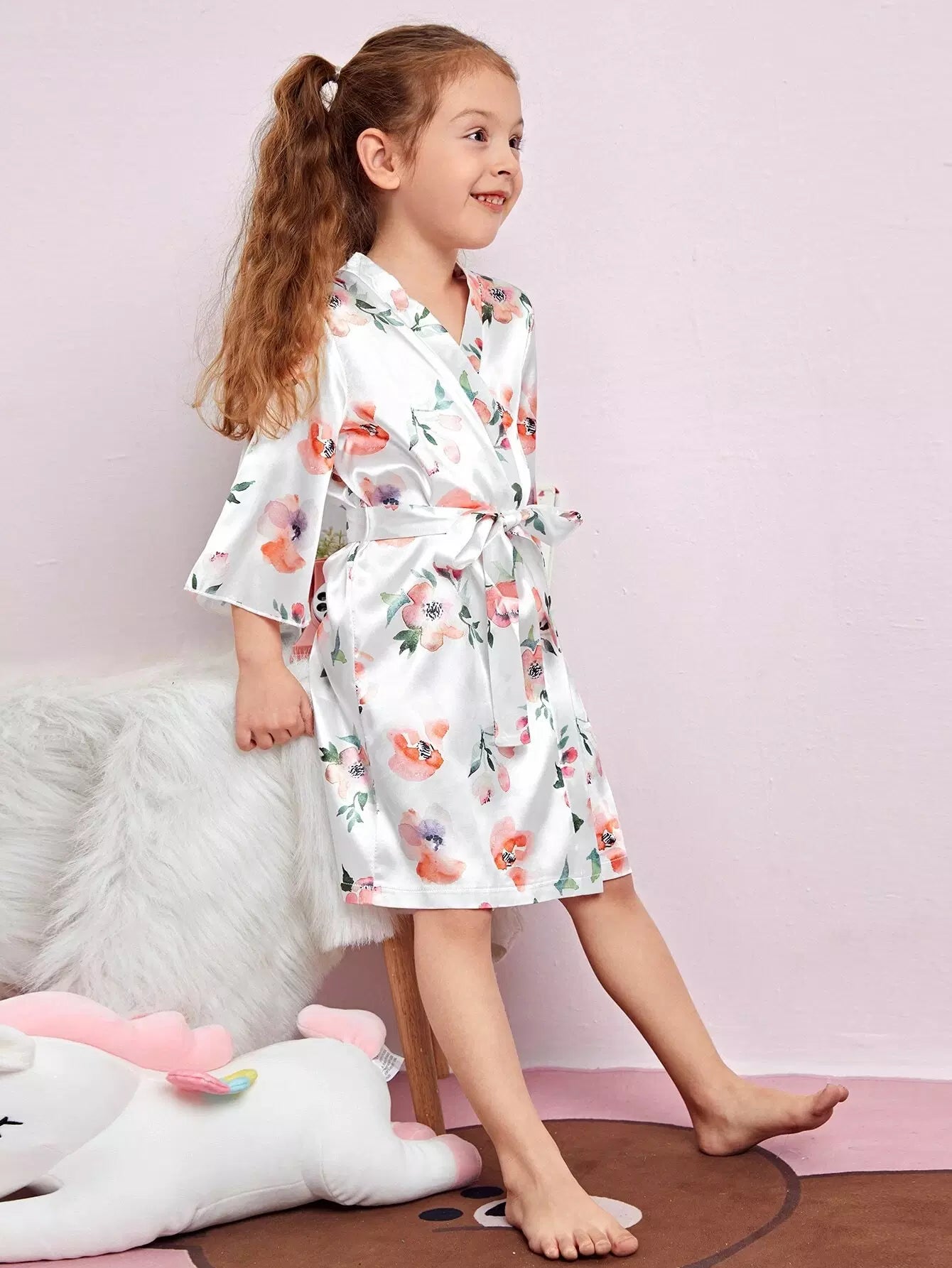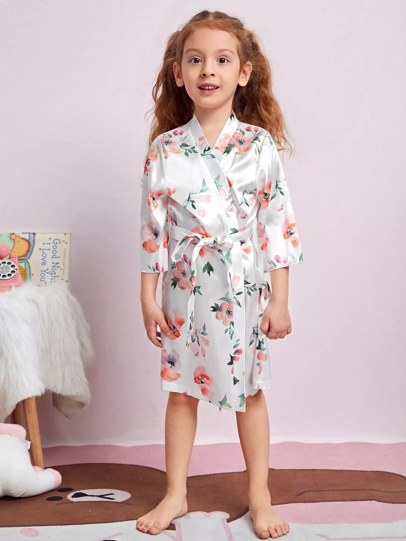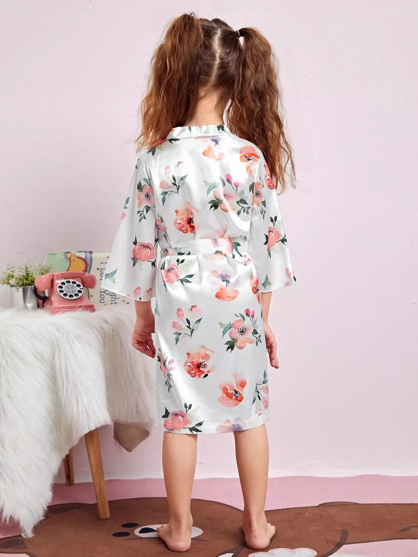 Toddler Girls Satin Floral Print Night Robe Without Belt