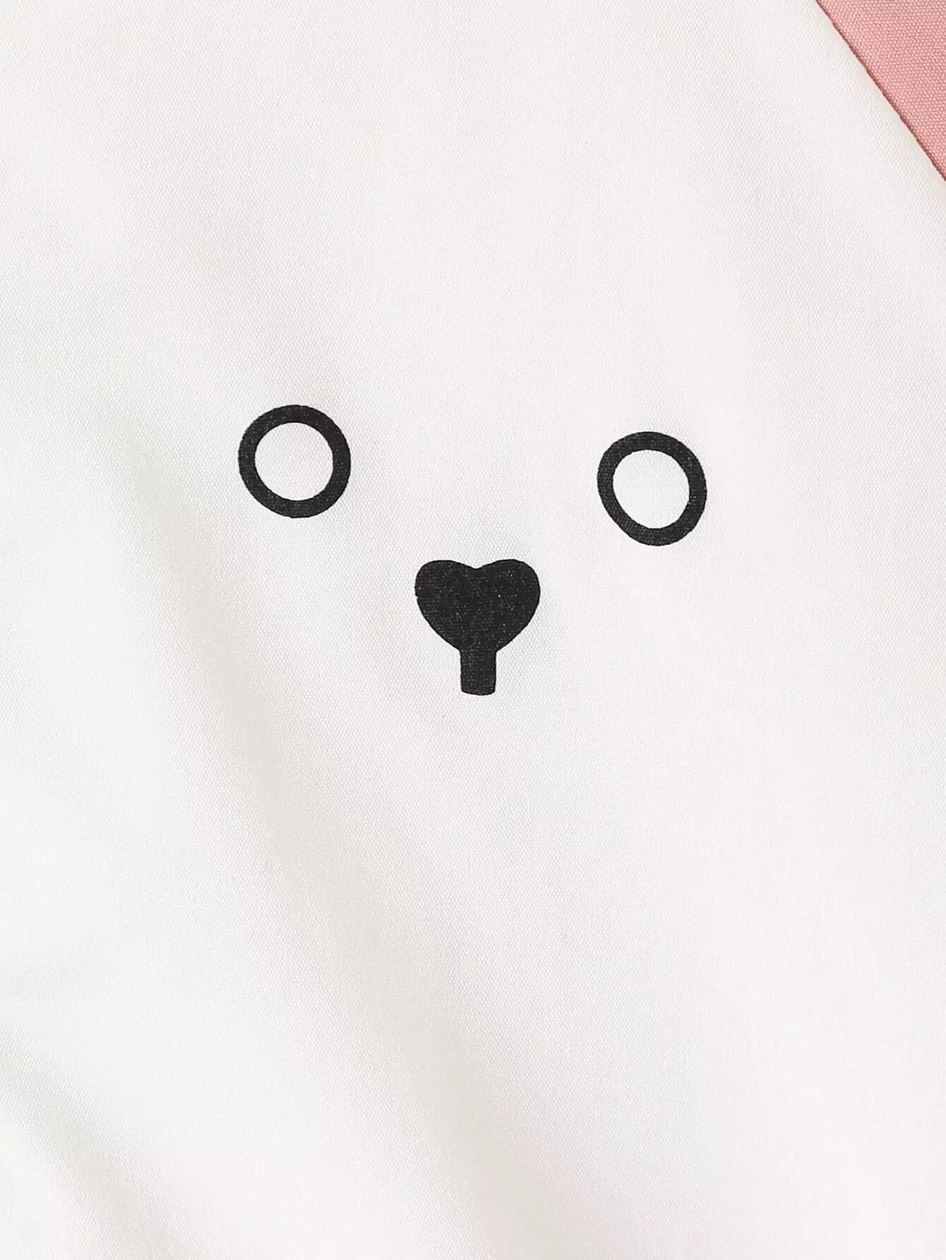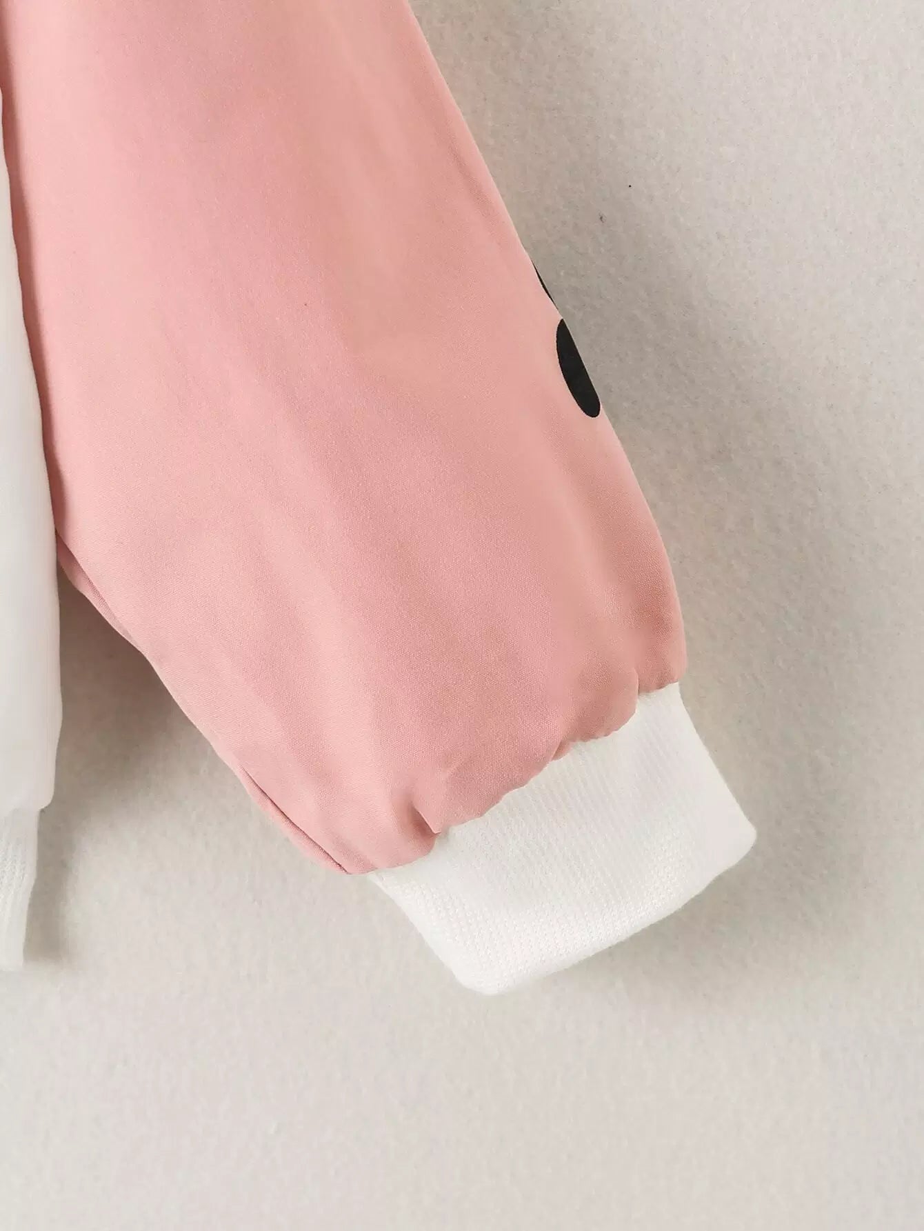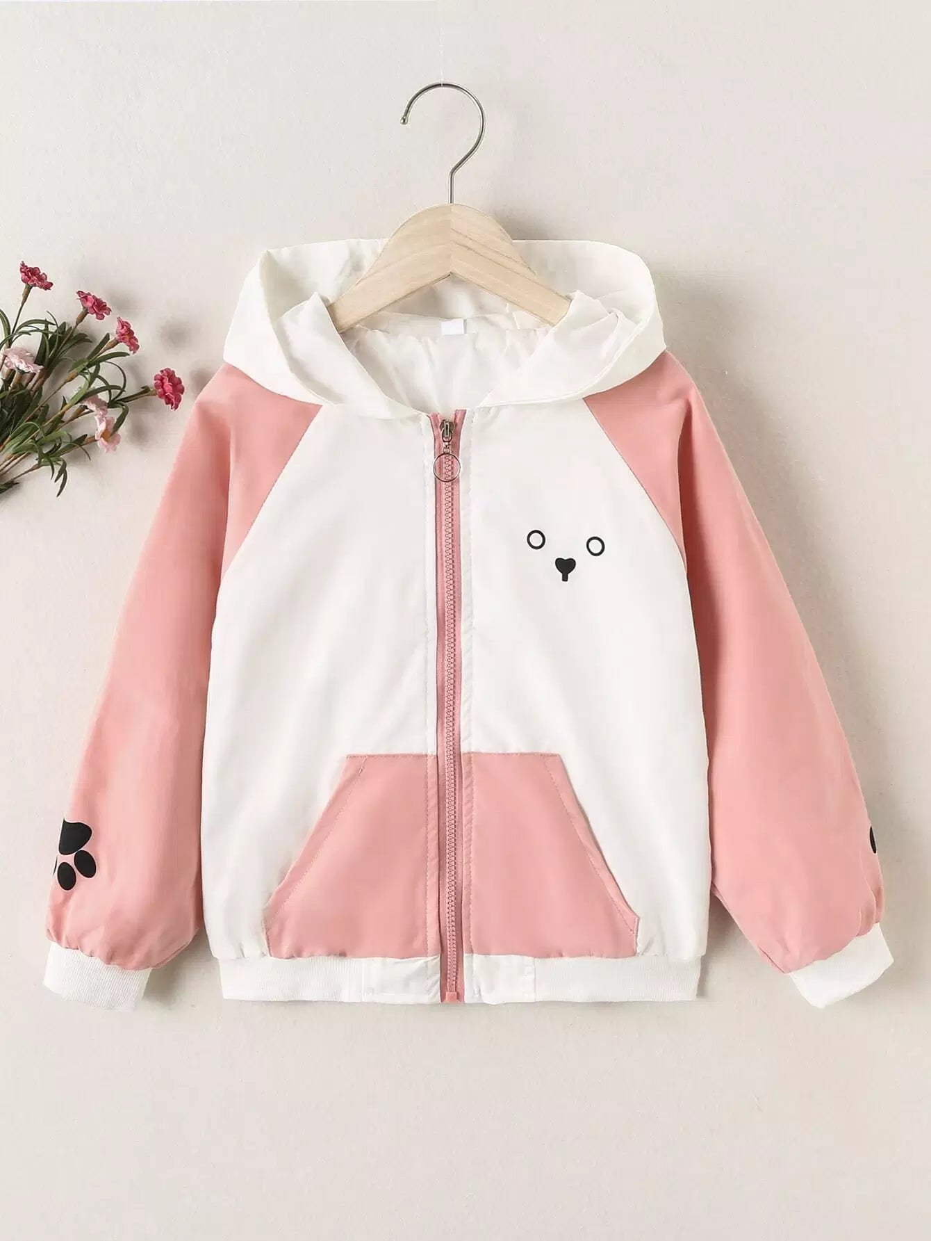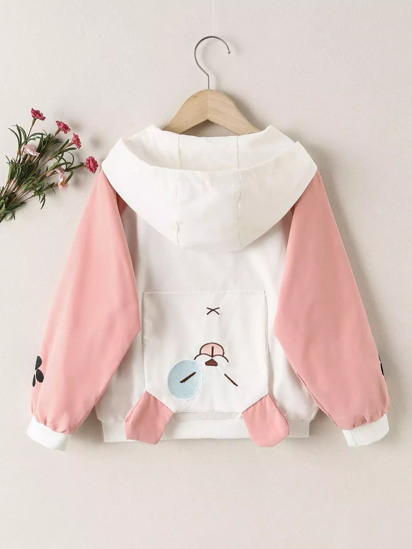 Girls Cartoon Embroidery Raglan Sleeve Two Tone 3D Ears Design Hooded Jacket