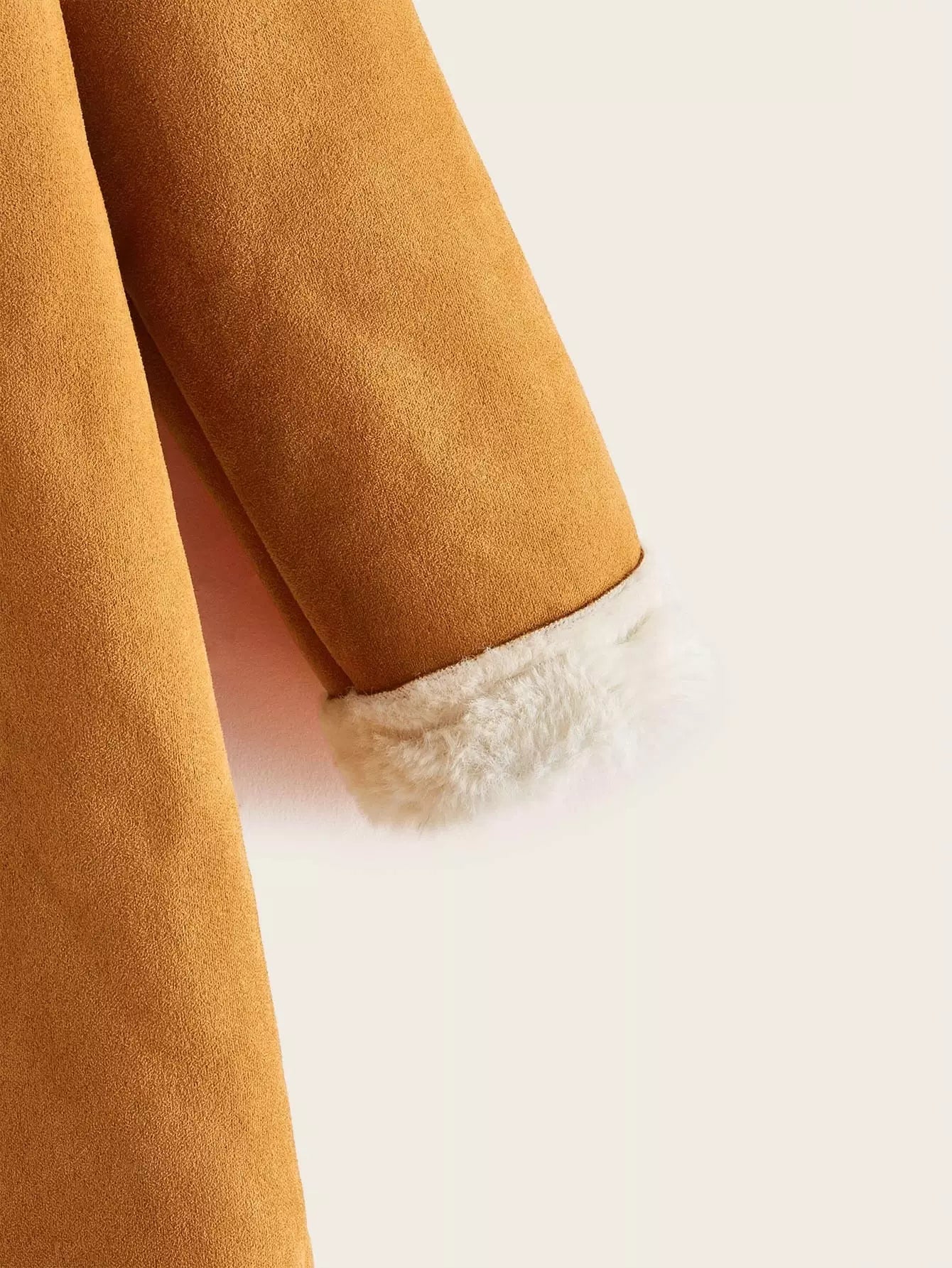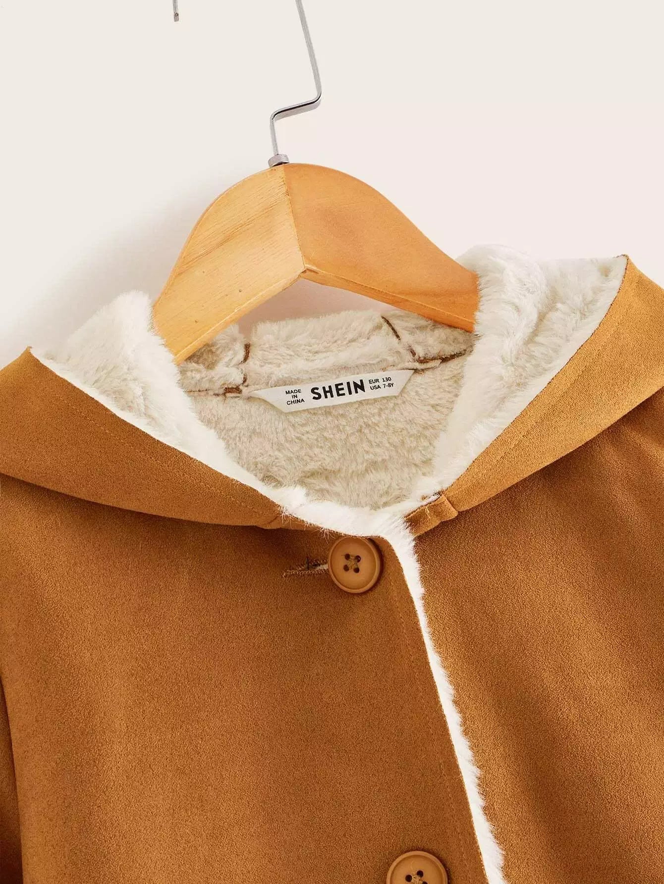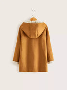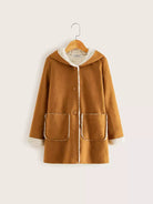 Girls Dual Pockets Teddy Lined Hooded Coat