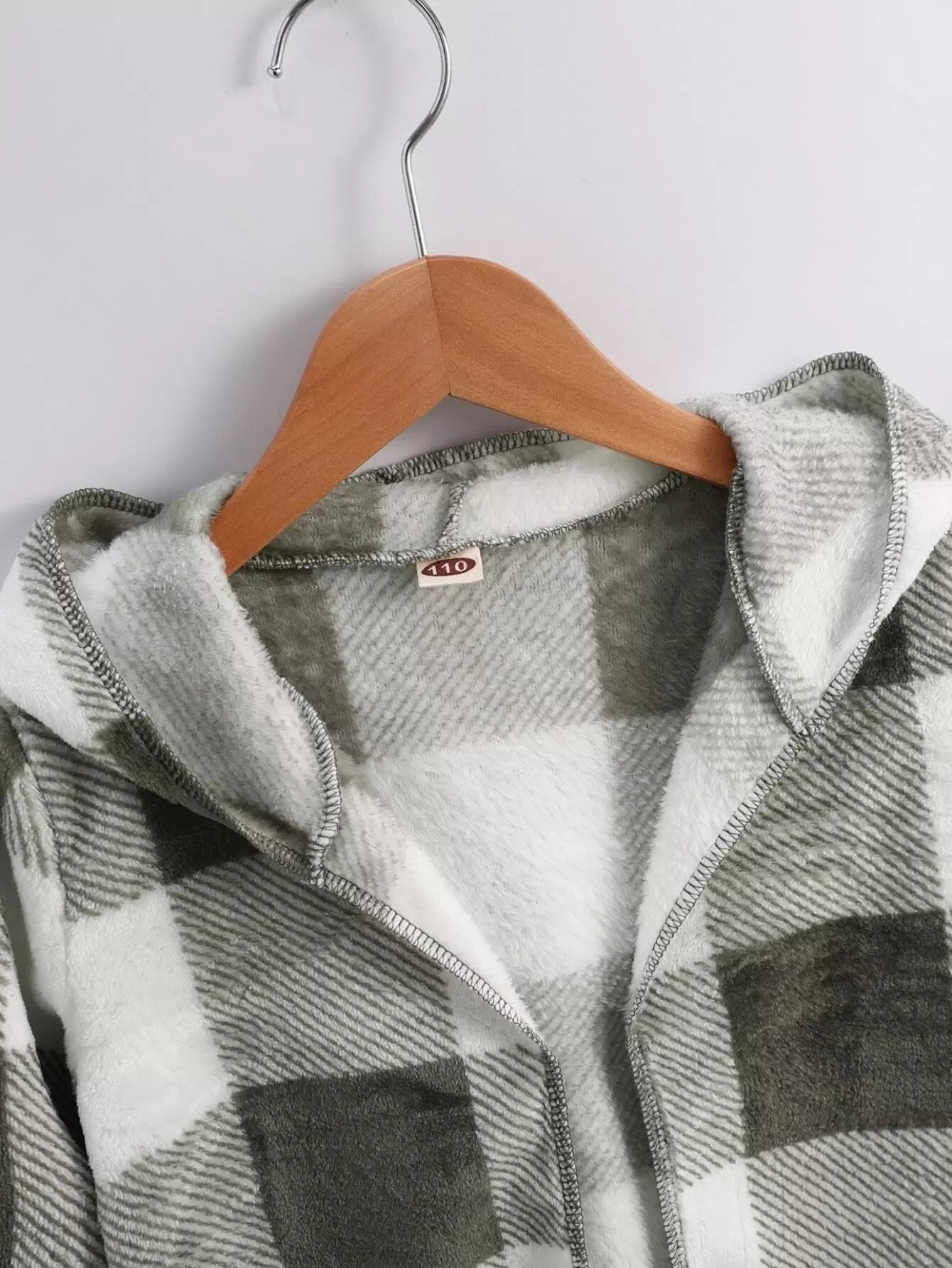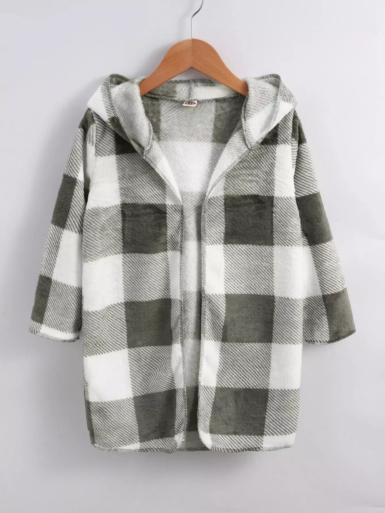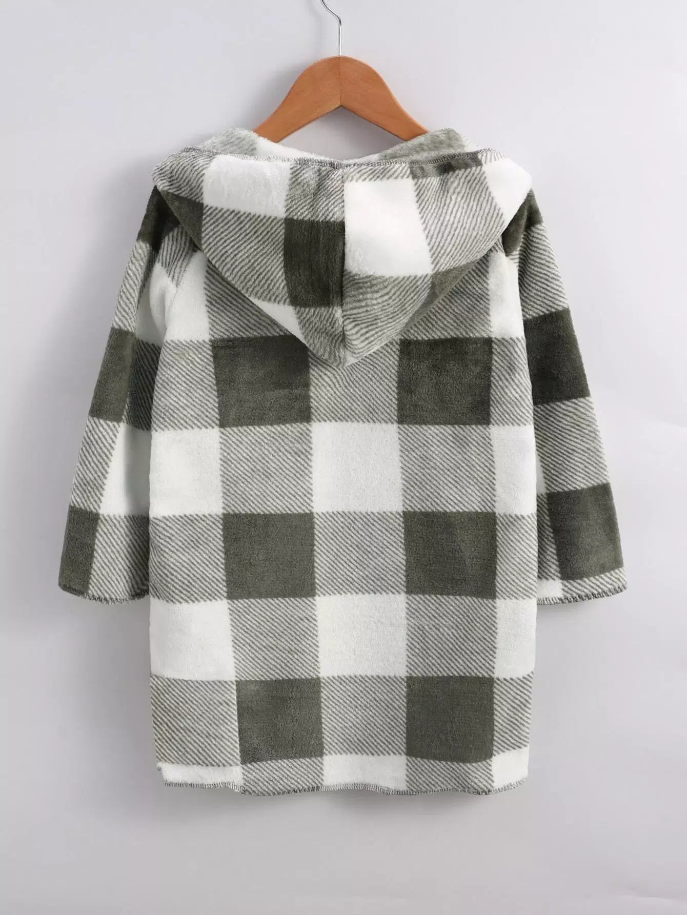 Girls Buffalo Plaid Pattern Hooded Flannel Coat