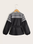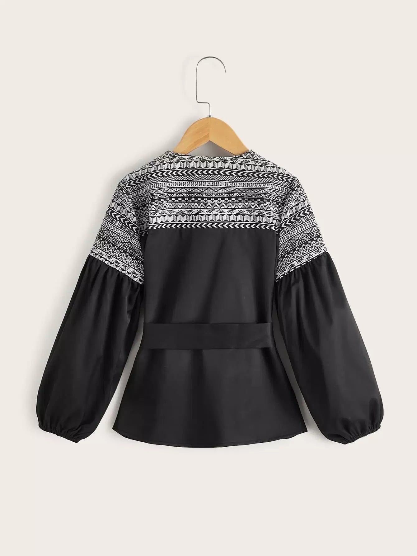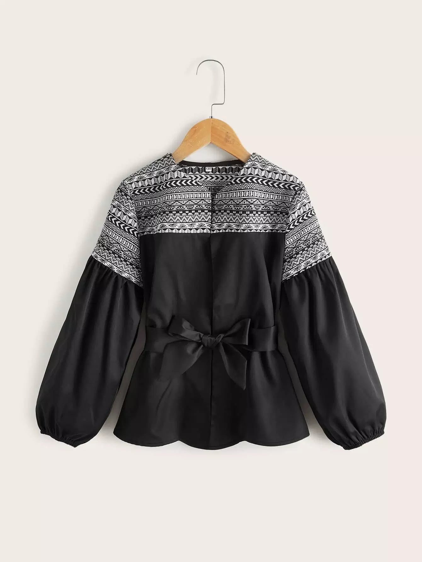 Girls Geo Panel Lantern Sleeve Coat Without Belt