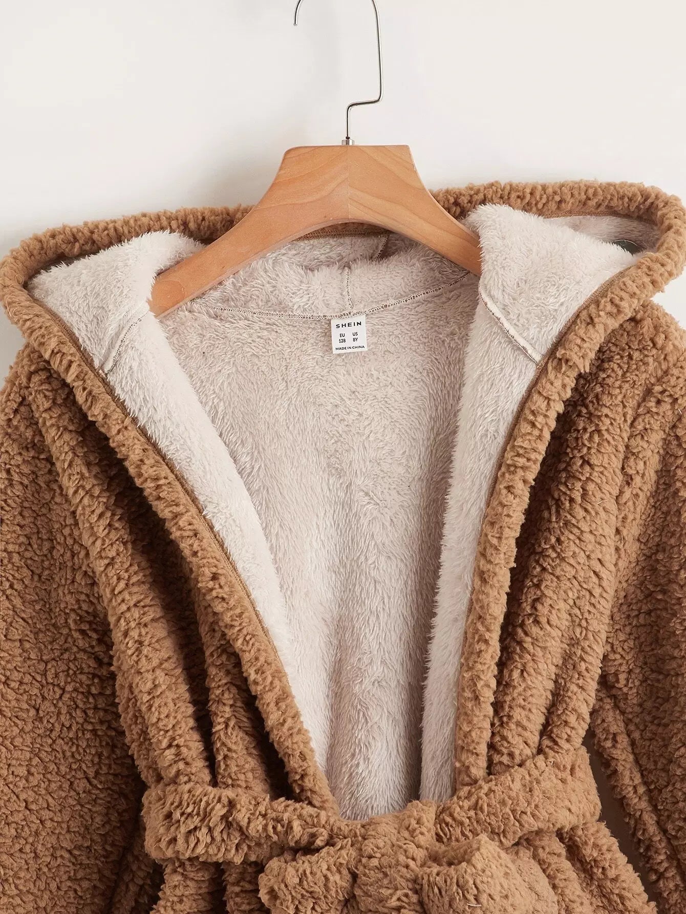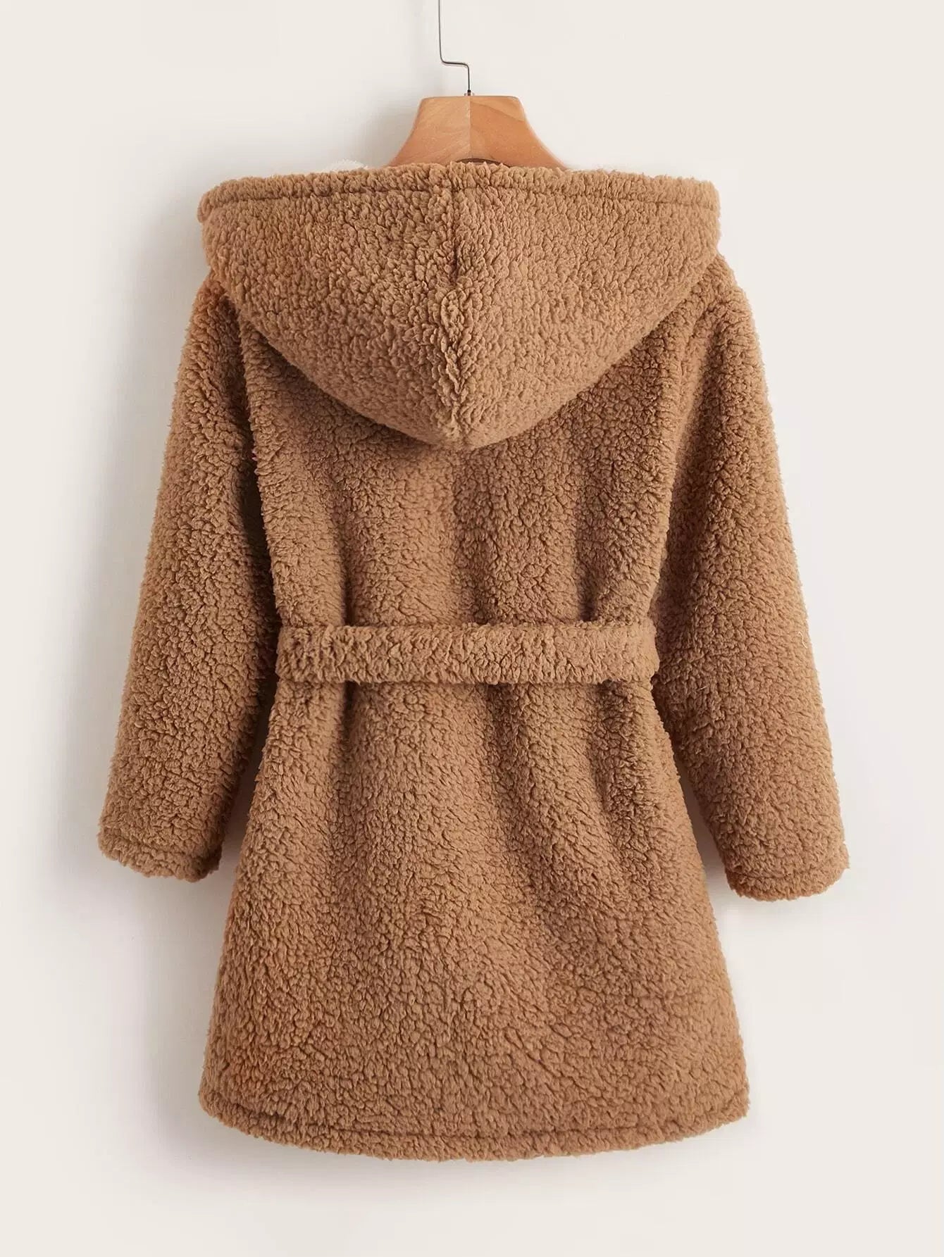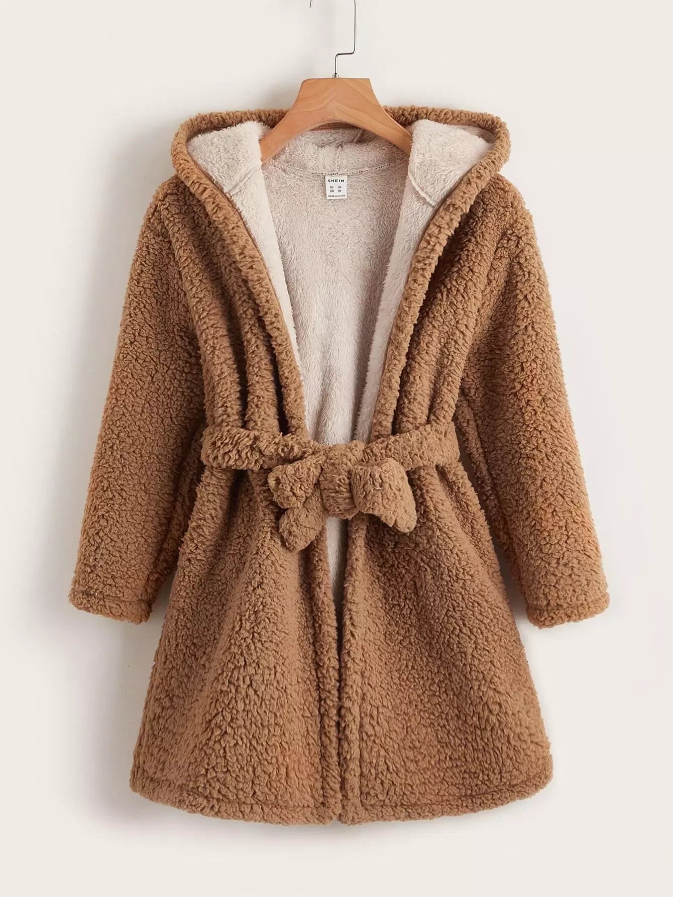 Girls Solid Hooded Teddy Coat Without Belt