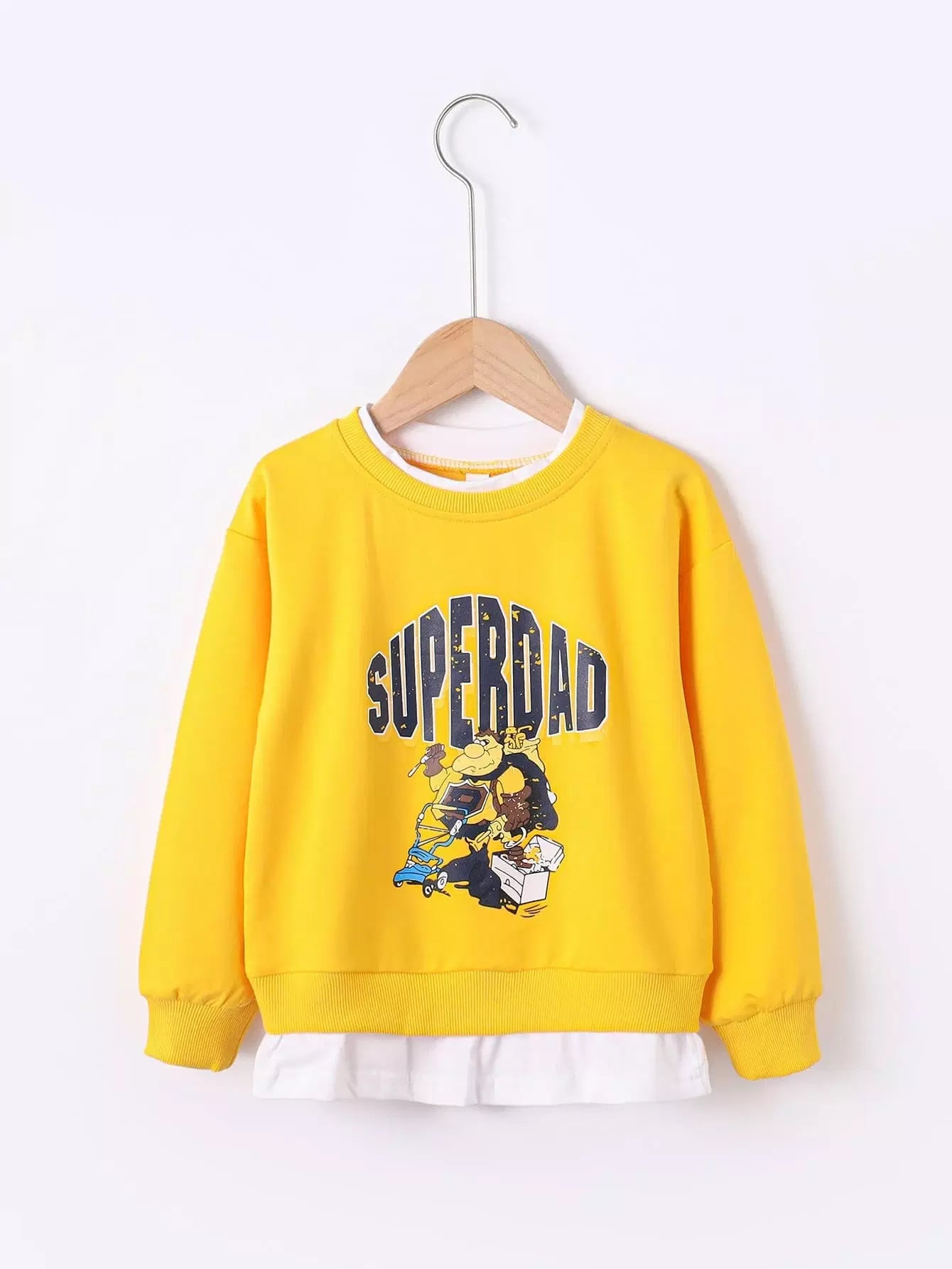 Girls 2 In 1 Cartoon And Letter Graphic Sweatshirt