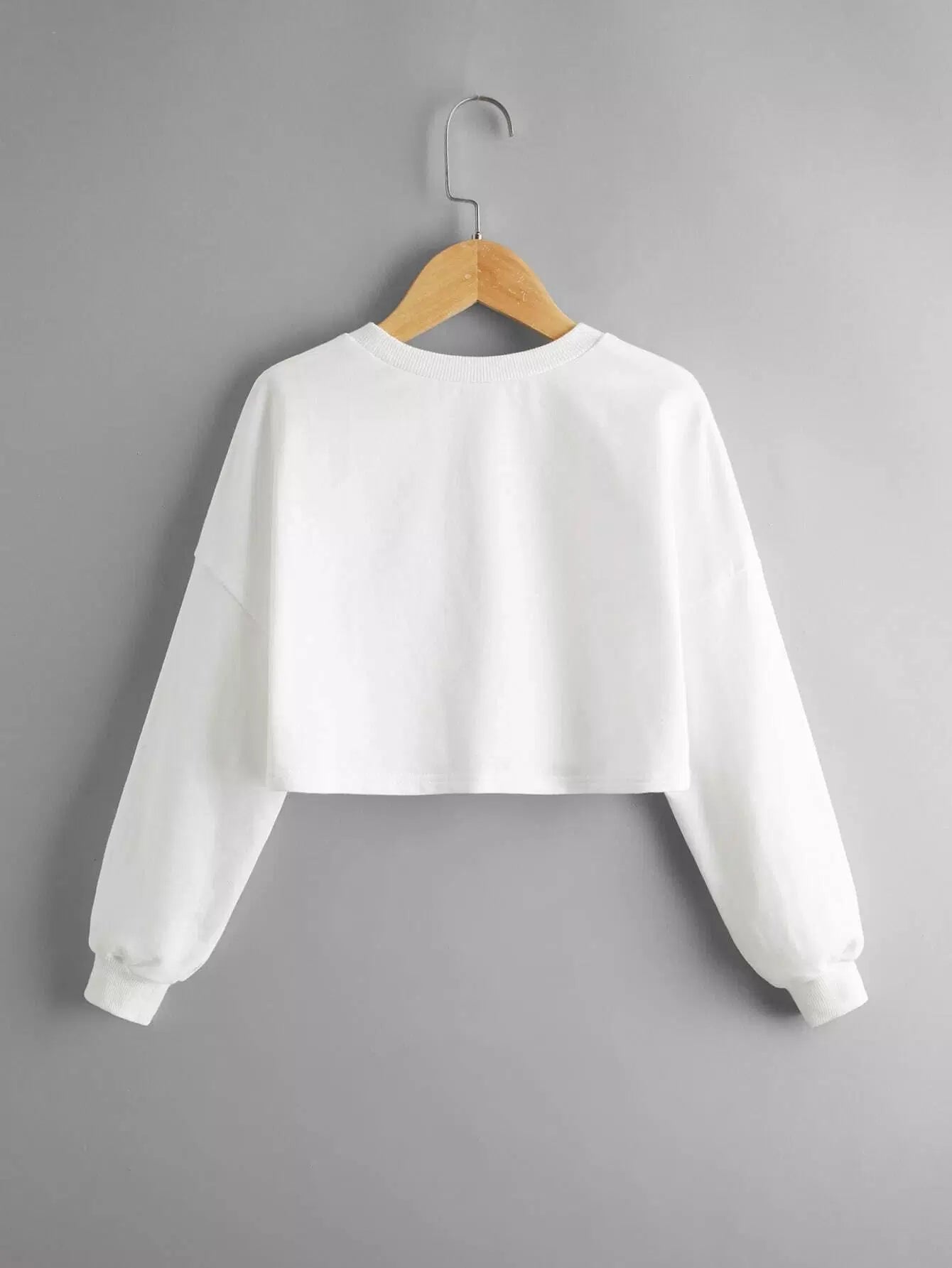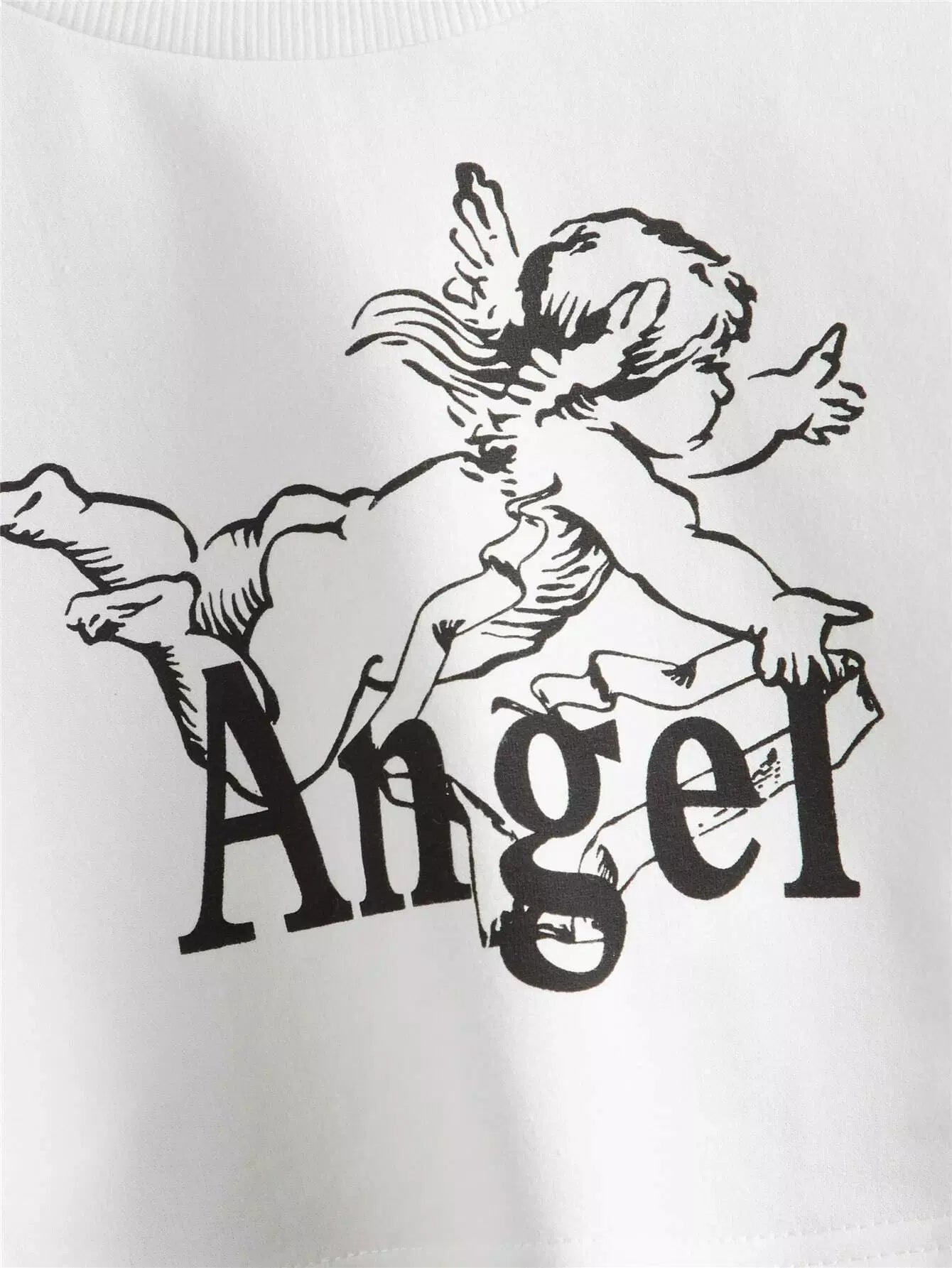 Kids - Girls Letter & Angel Print Crop Sweatshirt