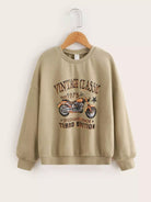 Girls Letter & Motorcycle Print Drop Shoulder Pullover