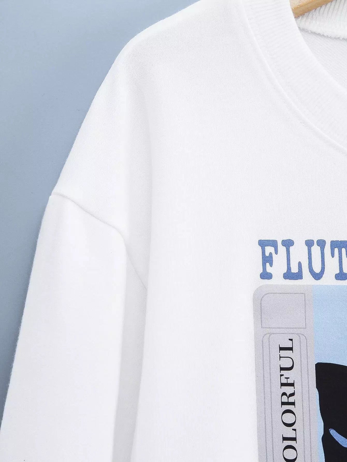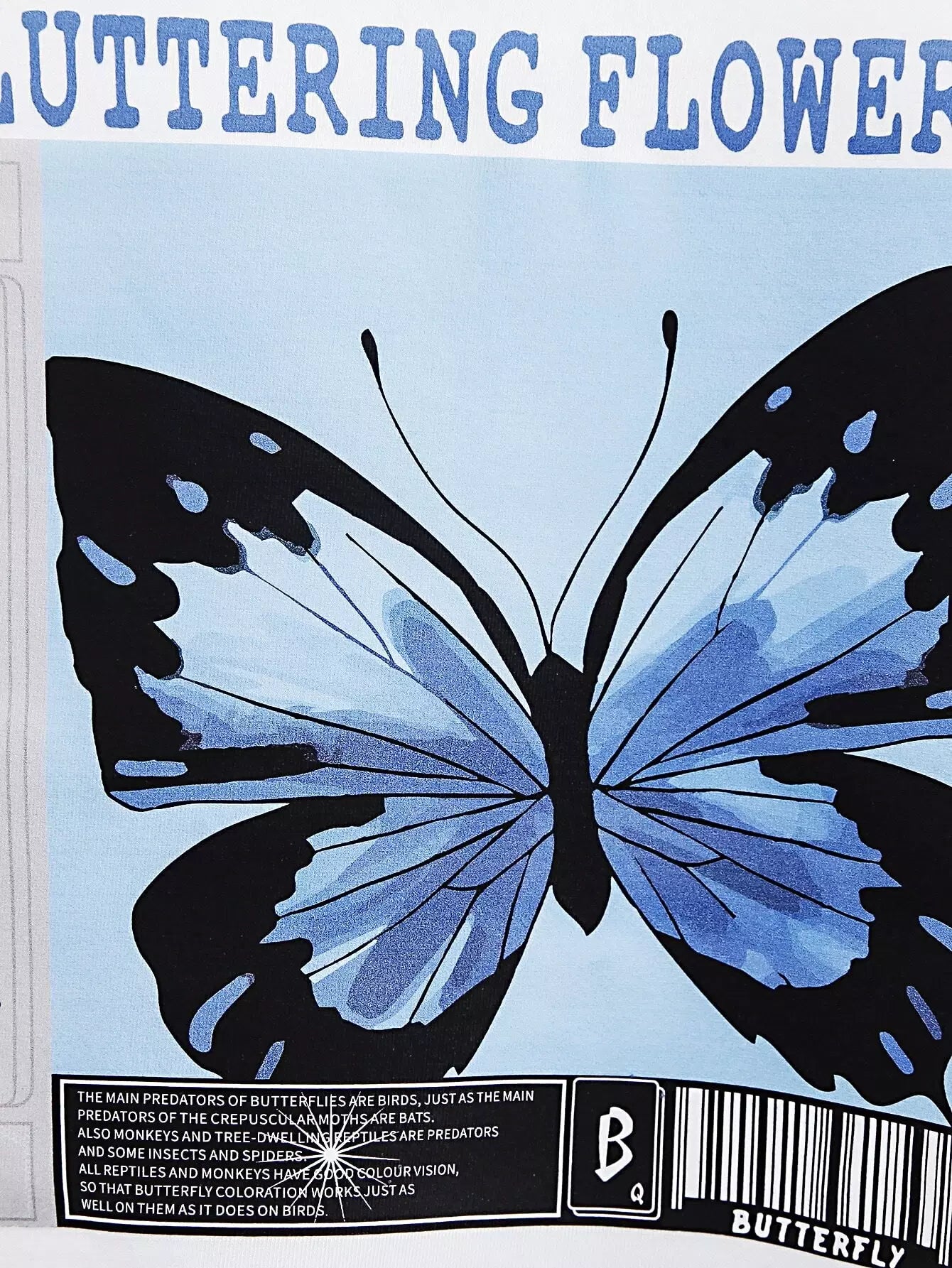 Girls Slogan & Butterfly Print Drop Shoulder Sweatshirt