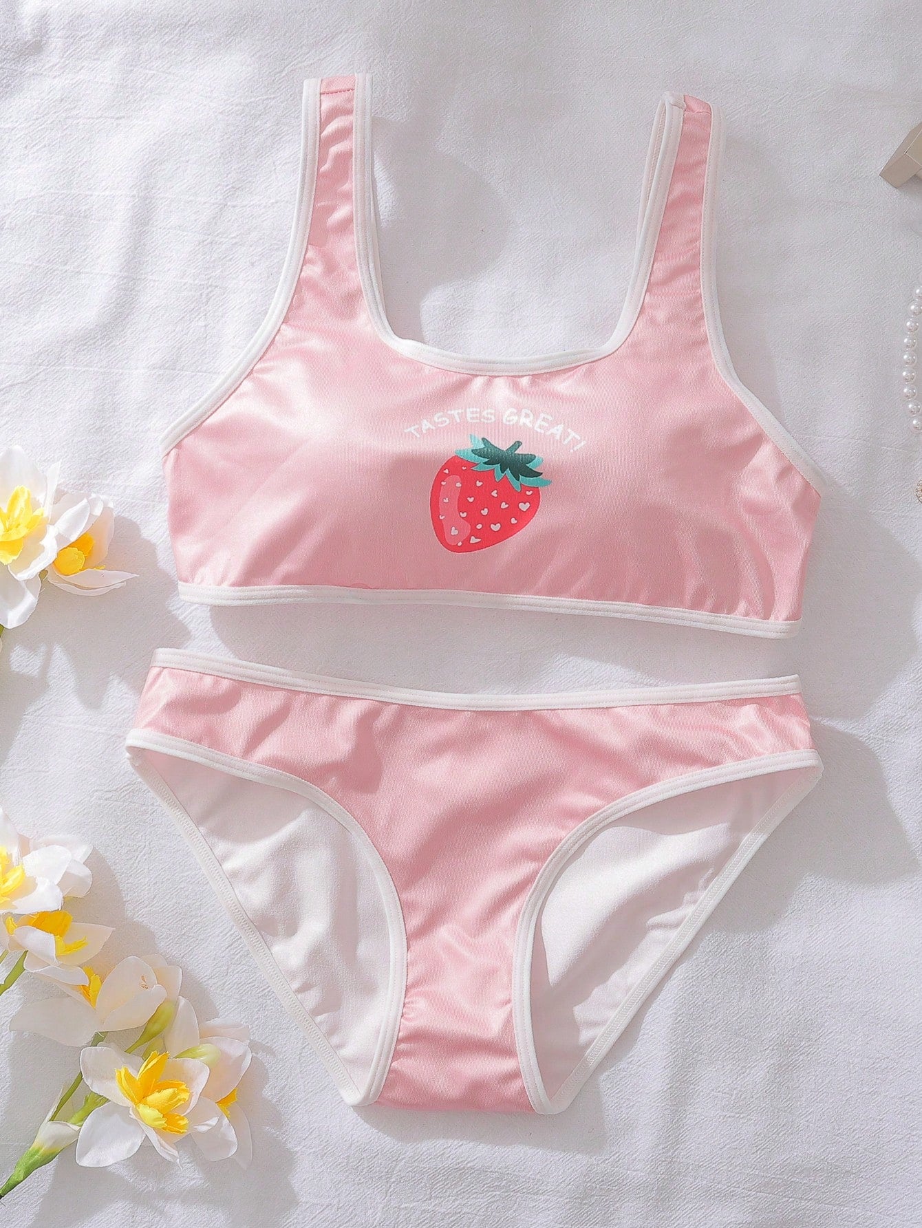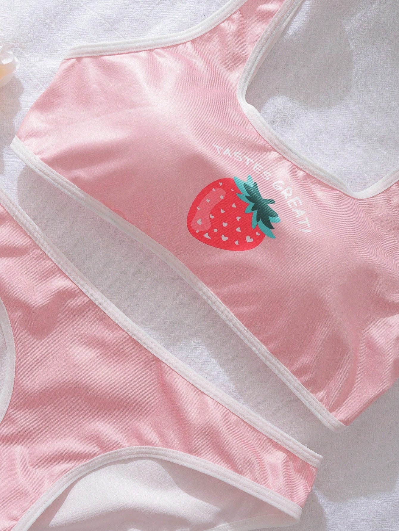 Tween Girl Contrast Trim Strawberry Print Lingerie