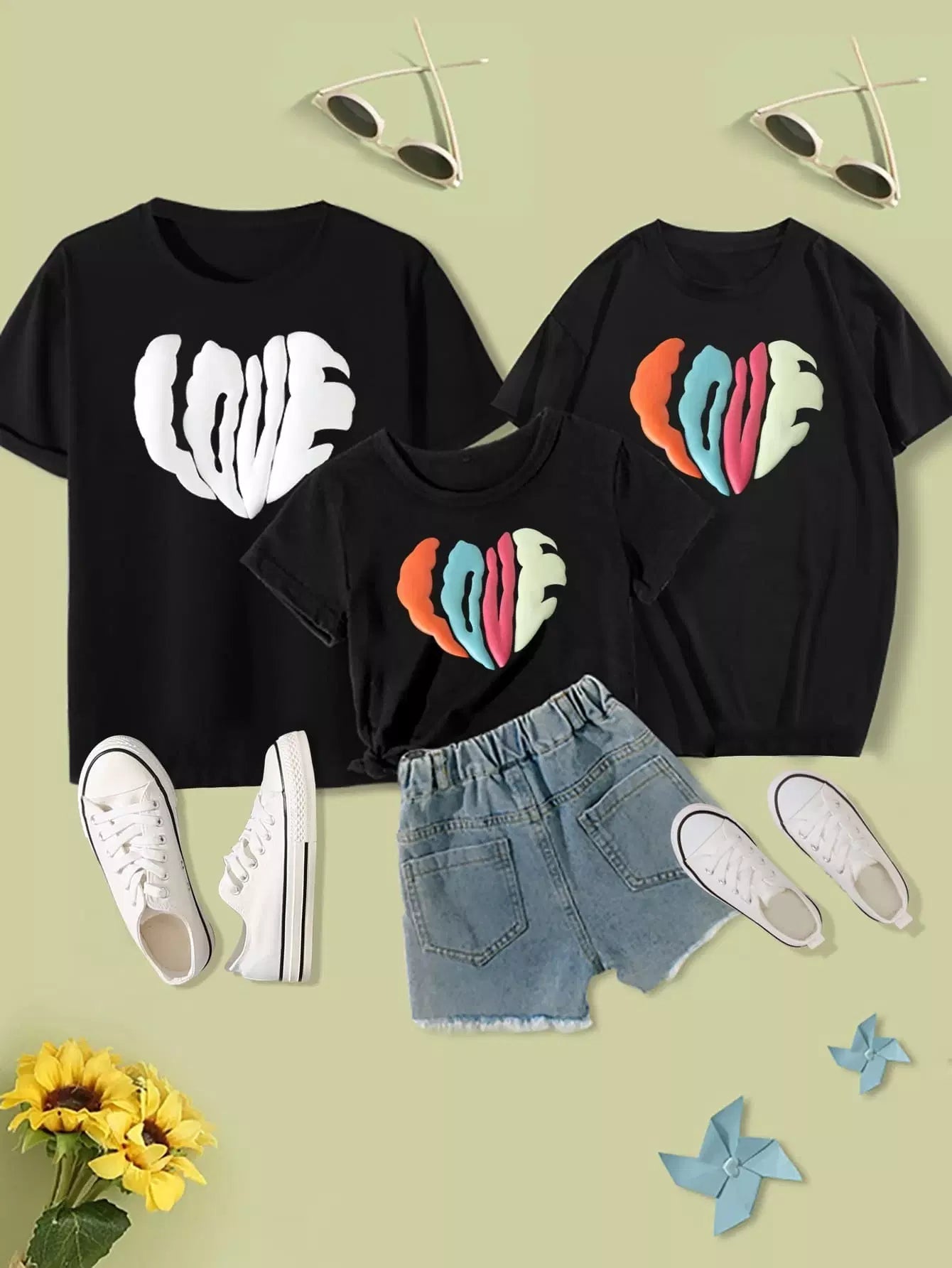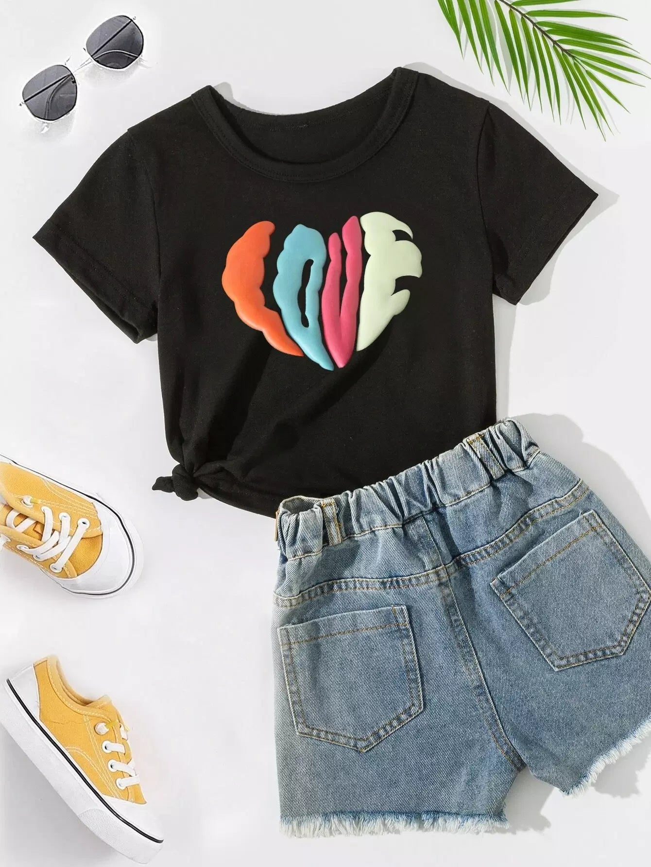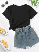 Girls 1pc 3D Letter Graphic Tee Without Denim Shorts