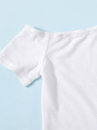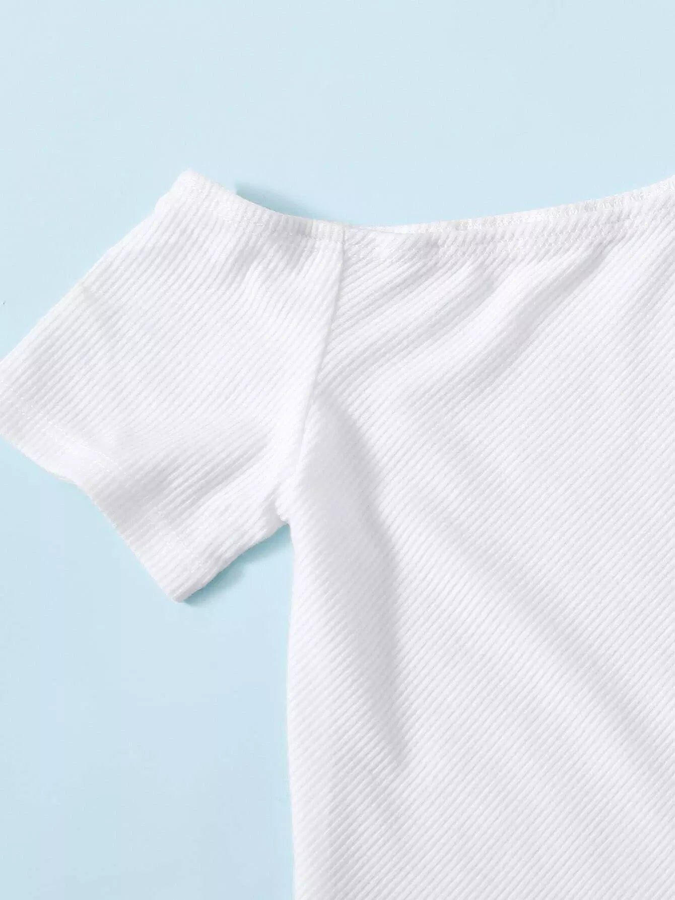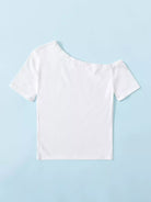 Girls Asymmetrical Neck Solid Rib-knit Tee