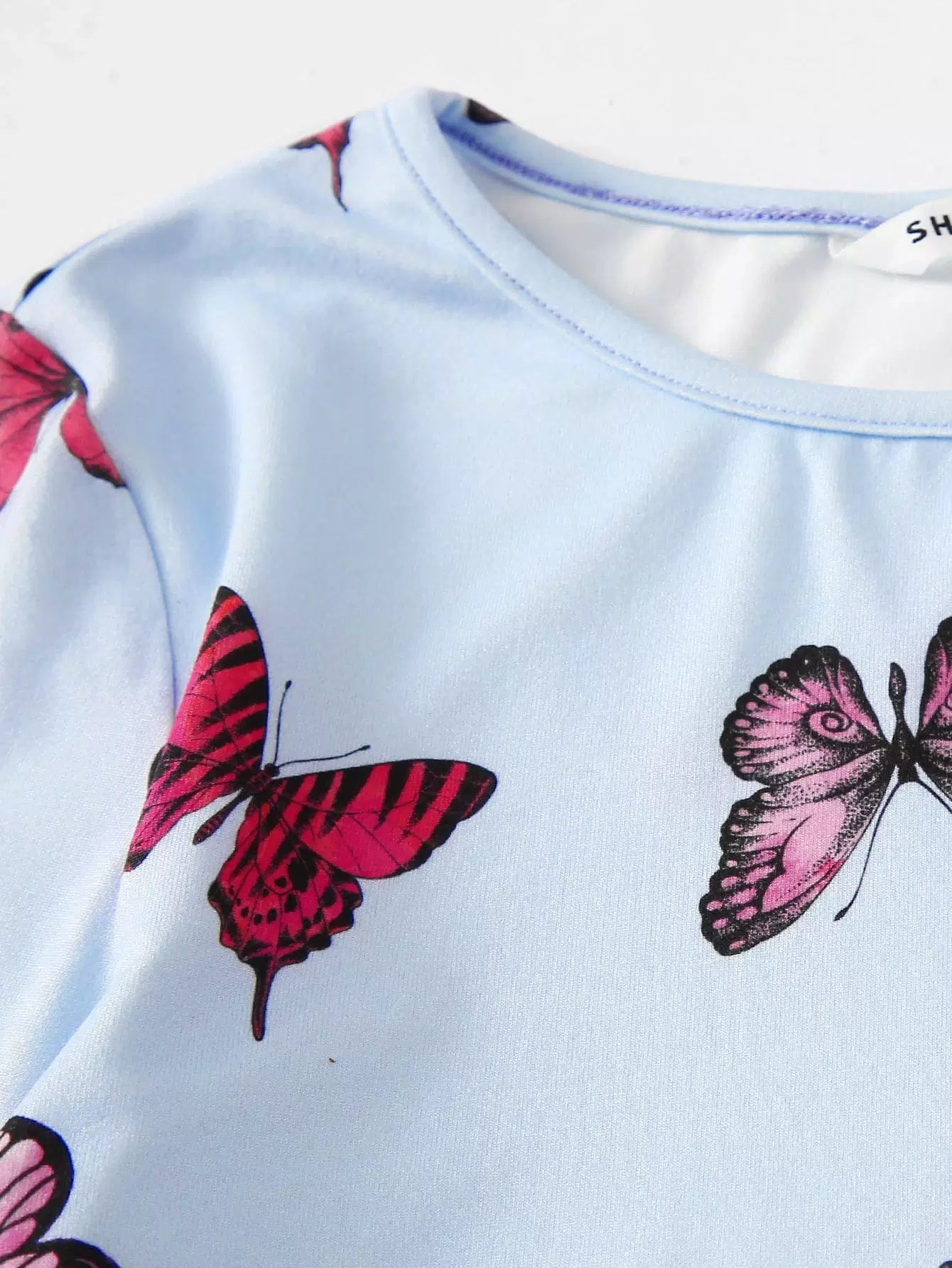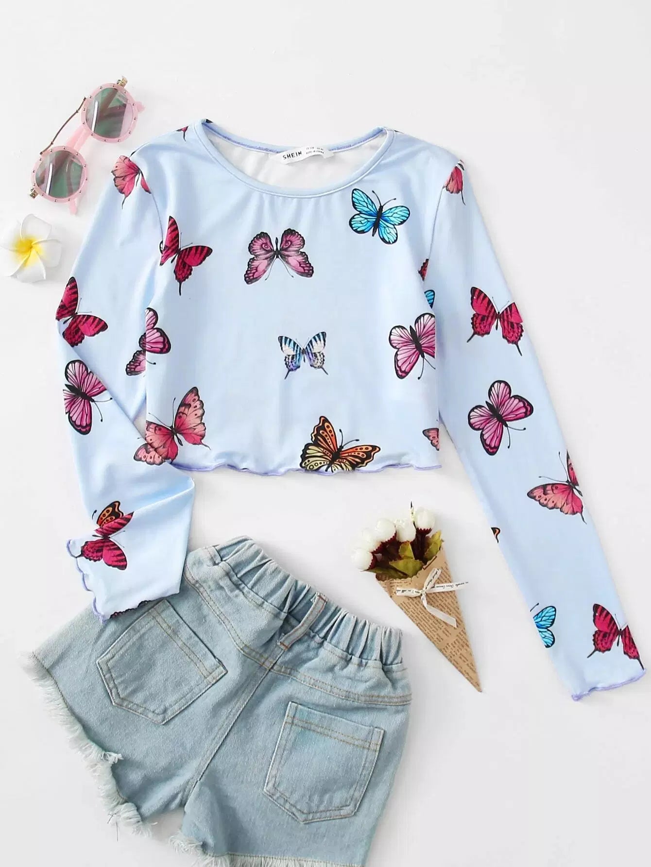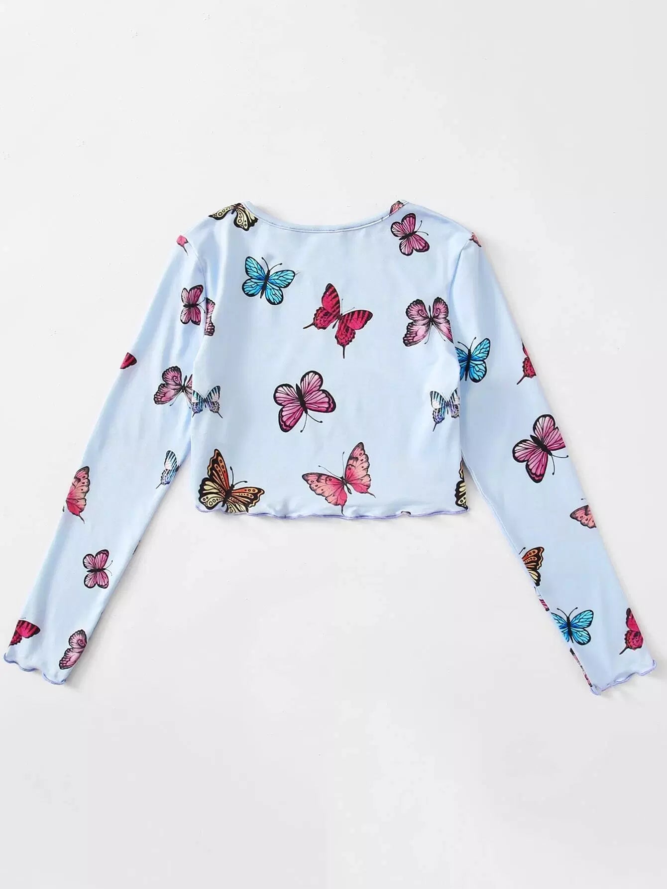 Girls Butterfly Print Lettuce Edge Crop Top