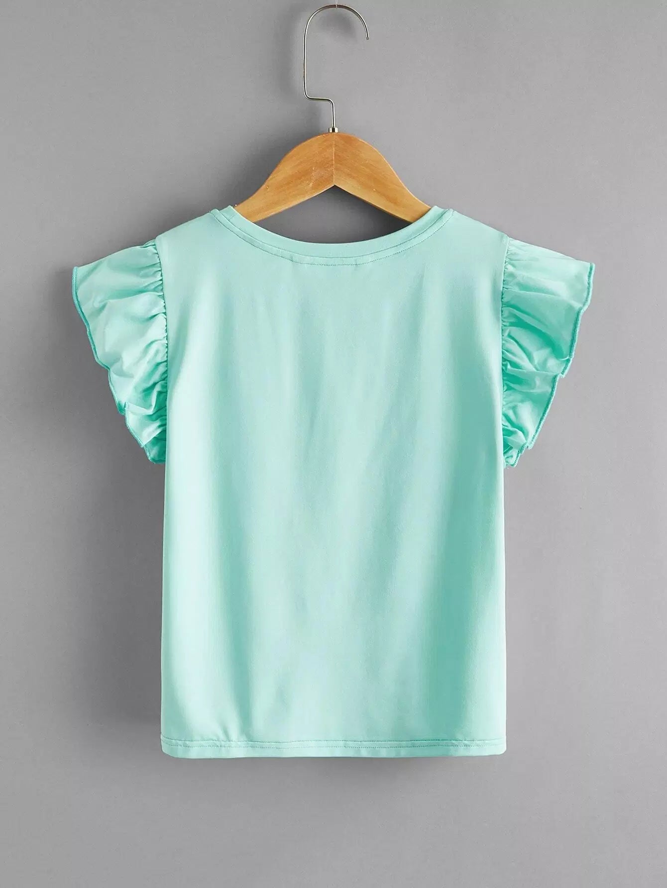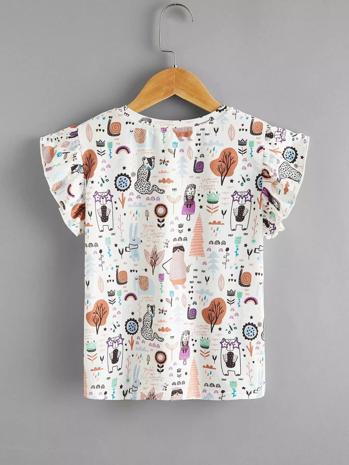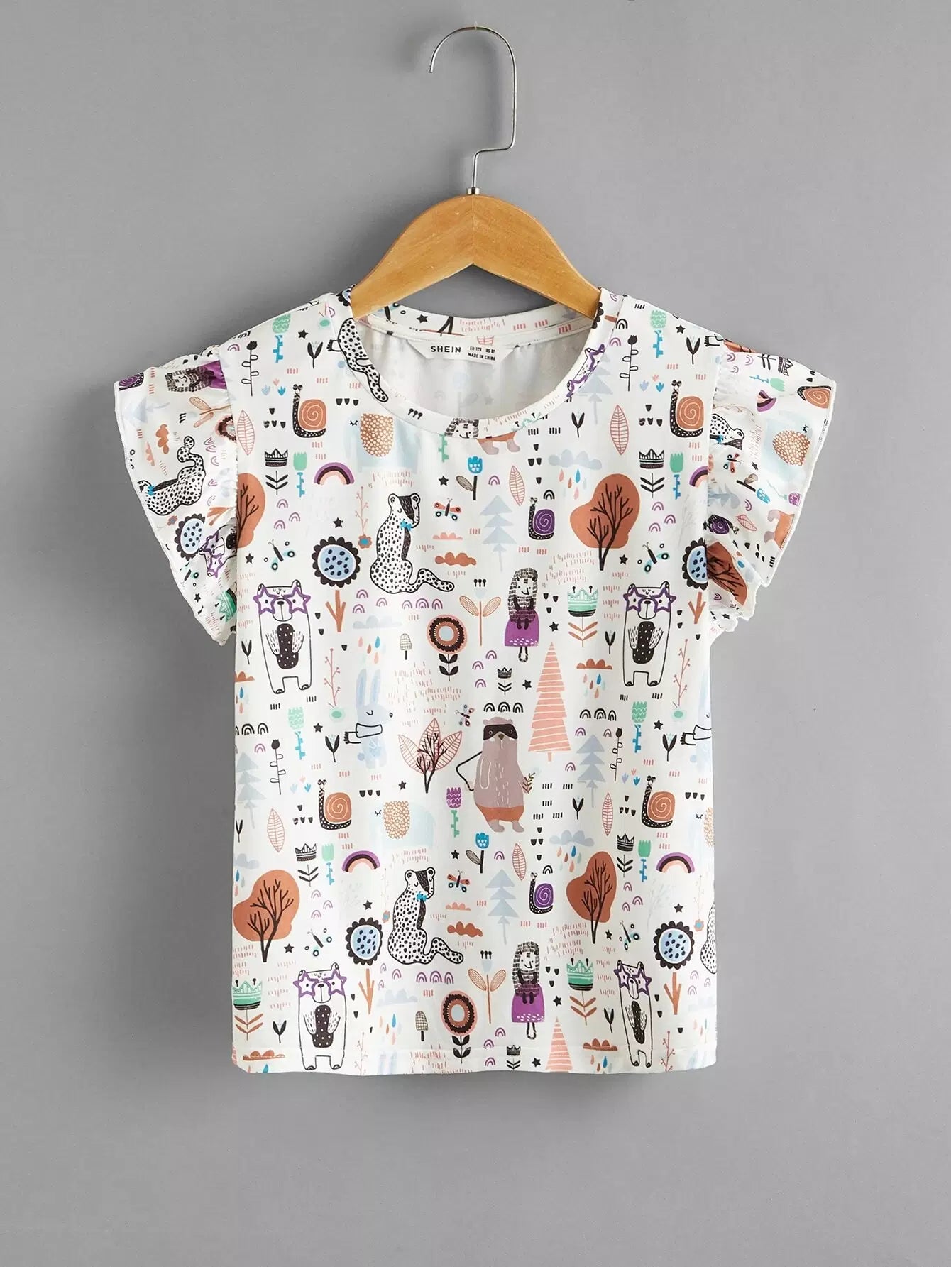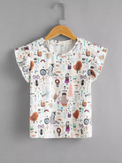 Girls Cartoon Graphic Butterfly Sleeve Tee