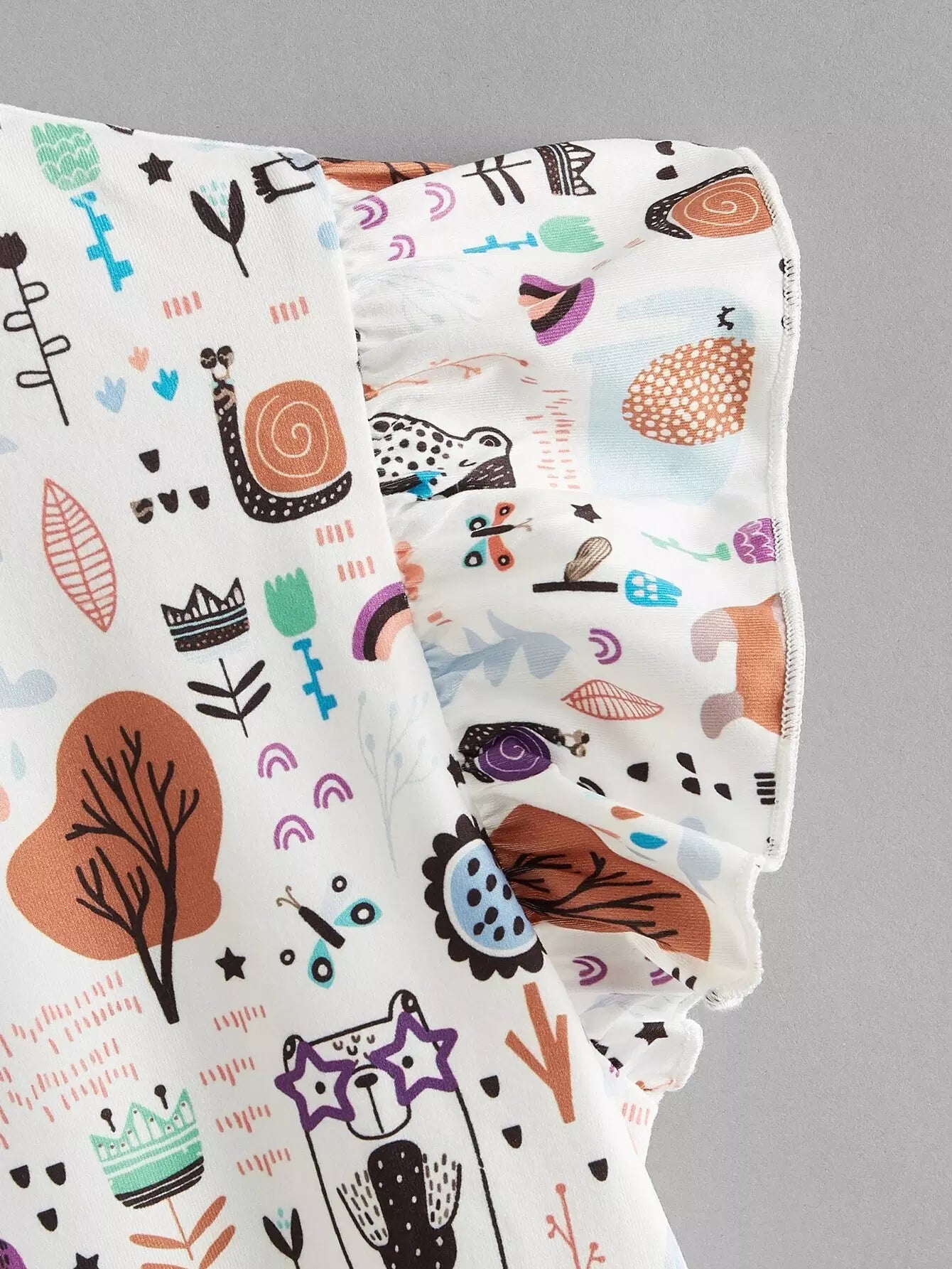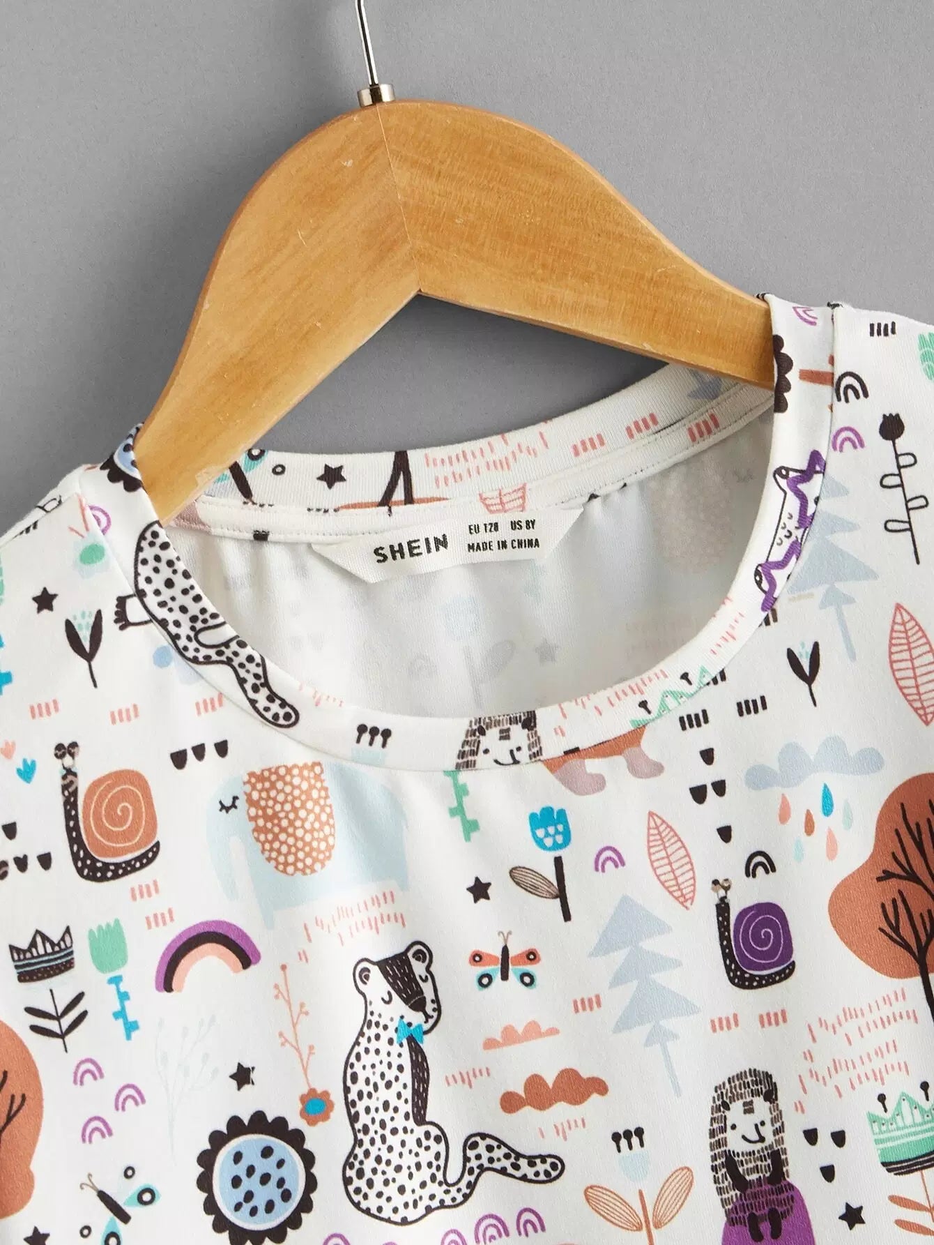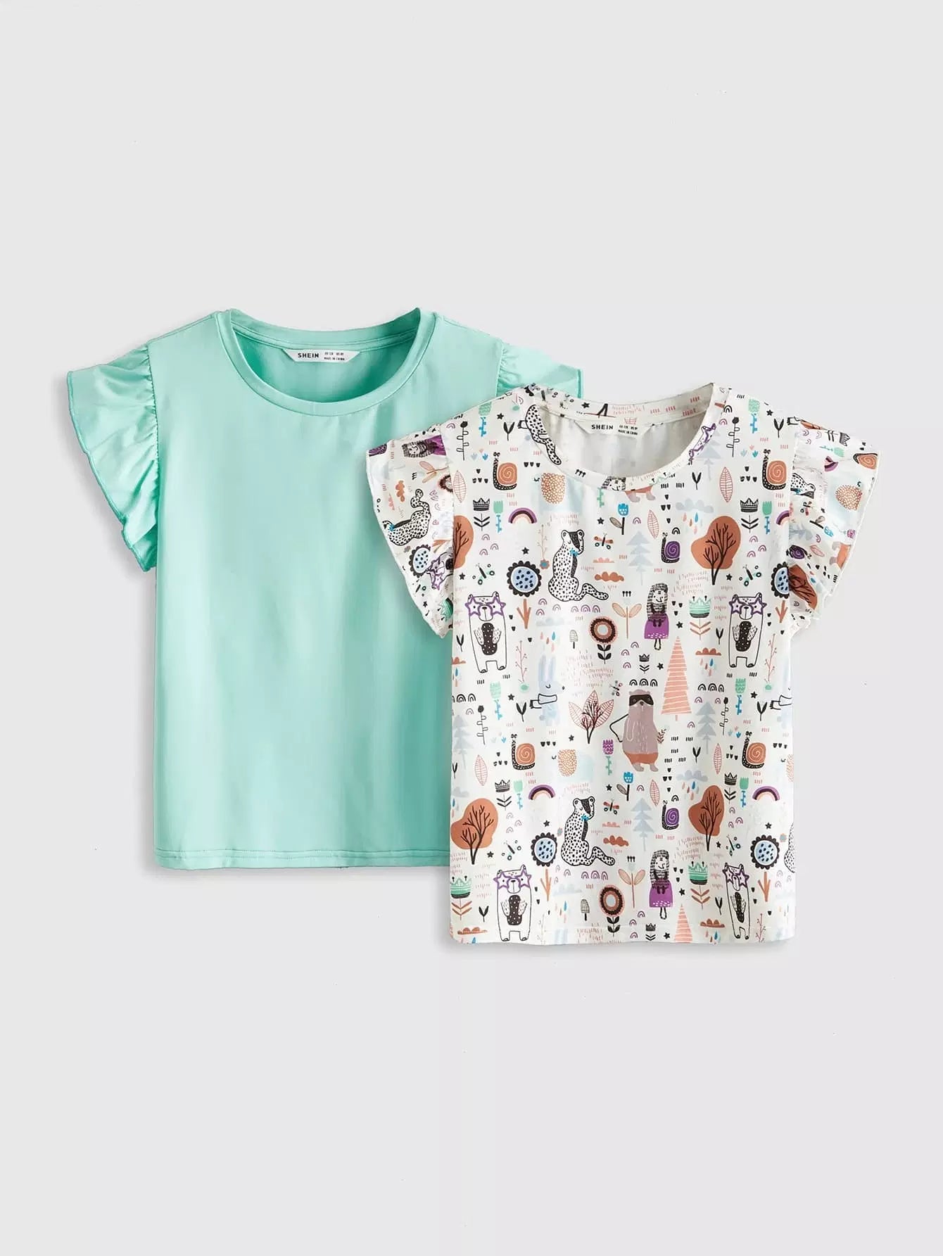 Girls Cartoon Graphic Butterfly Sleeve Tee