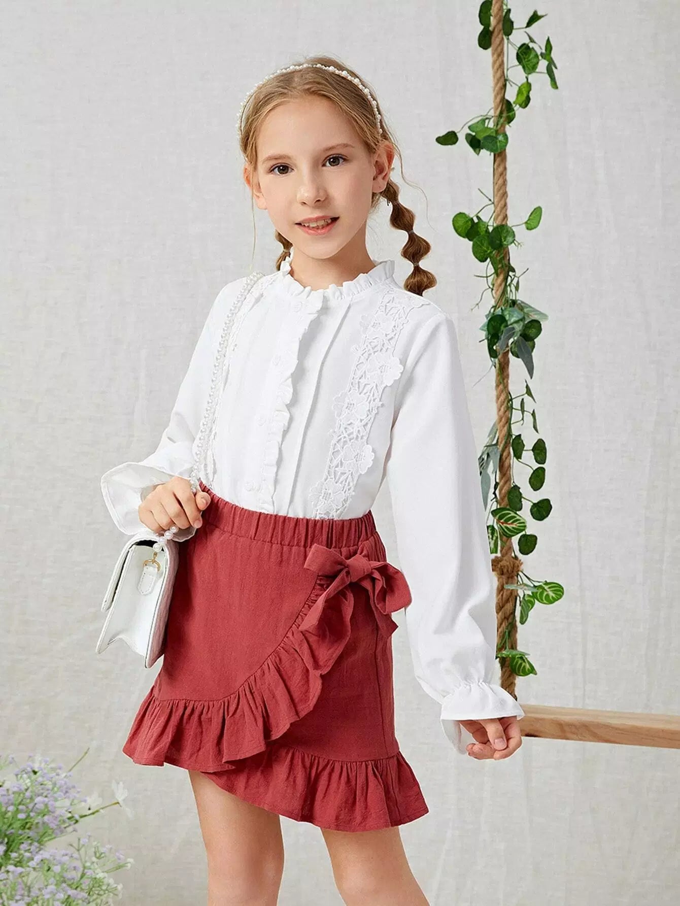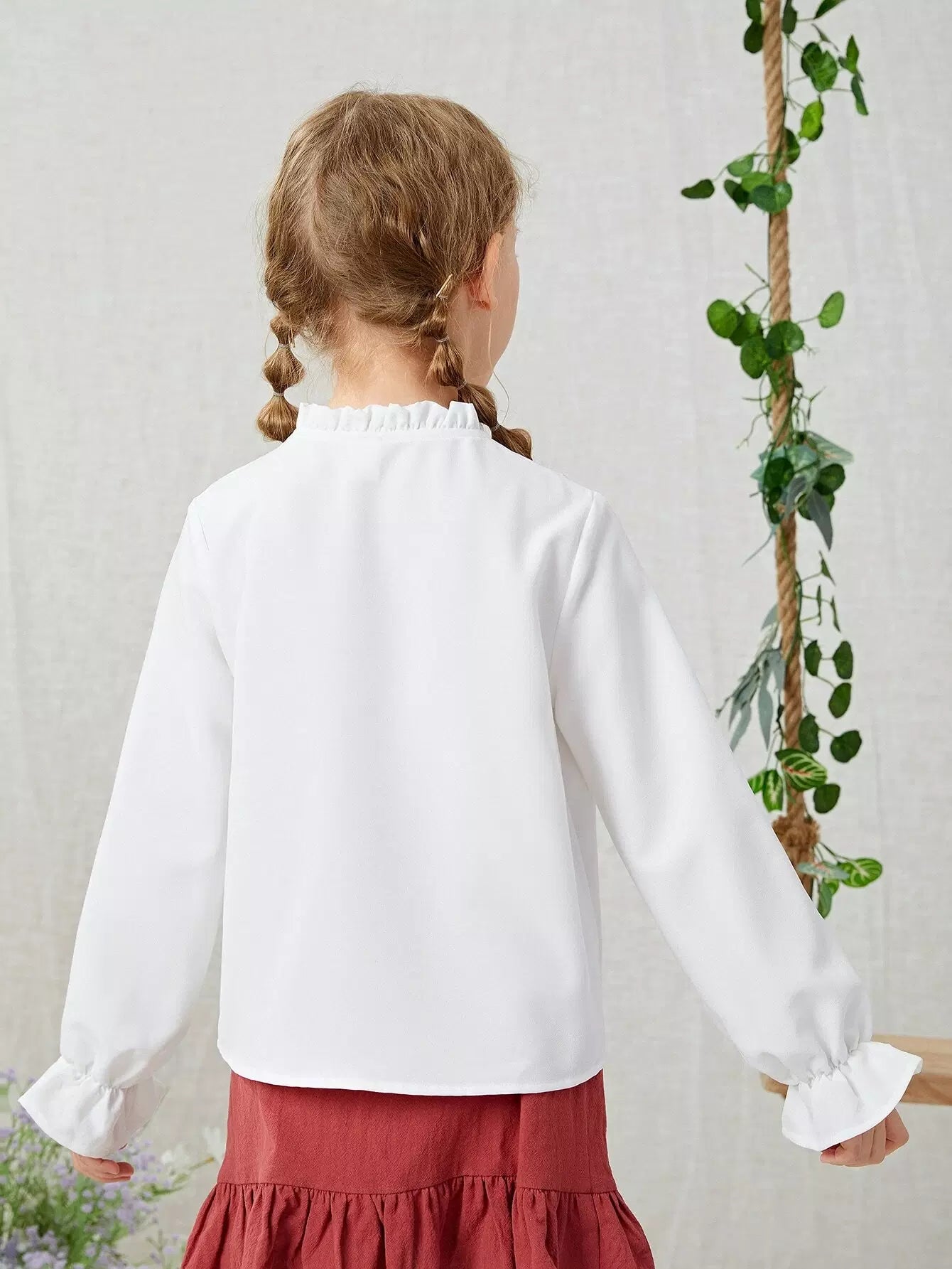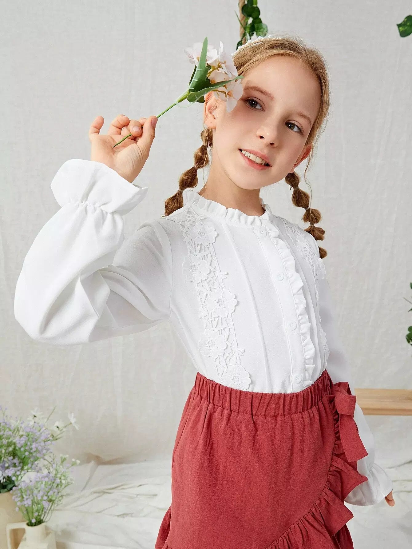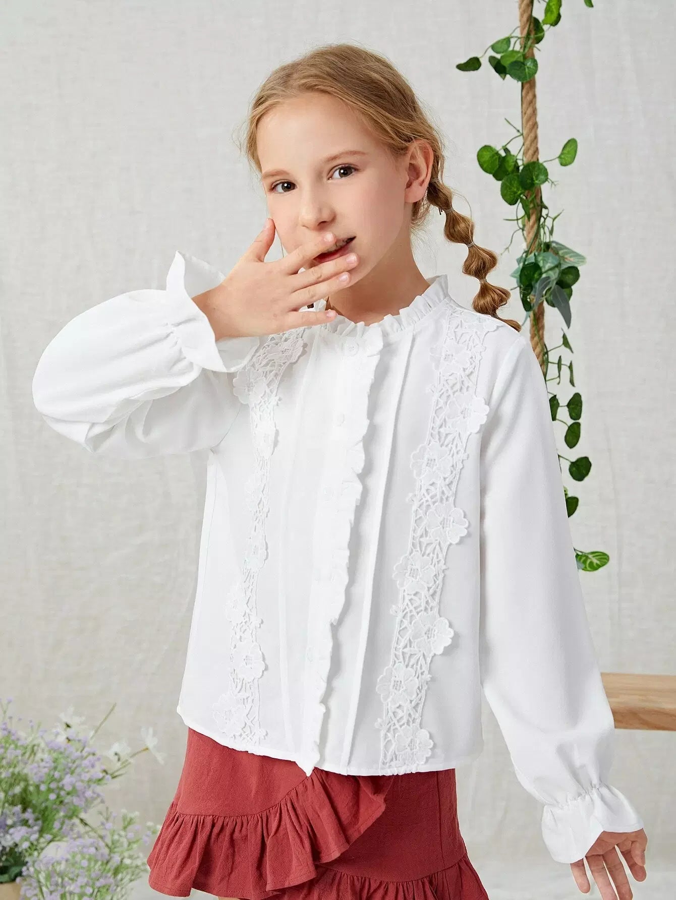 Girls Lace Detail Flounce Sleeve Blouse
