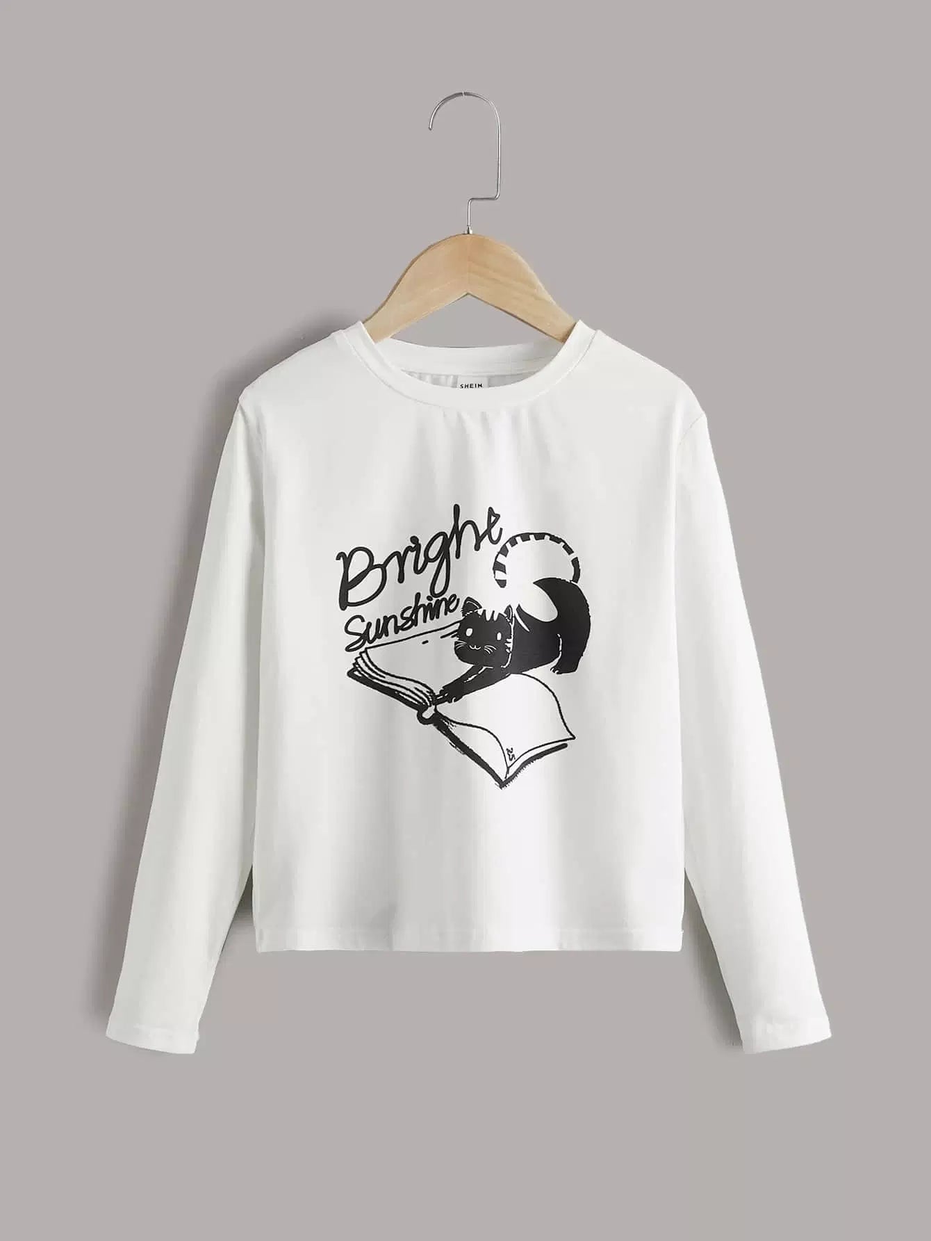 Girls Letter & Cat Print Tee