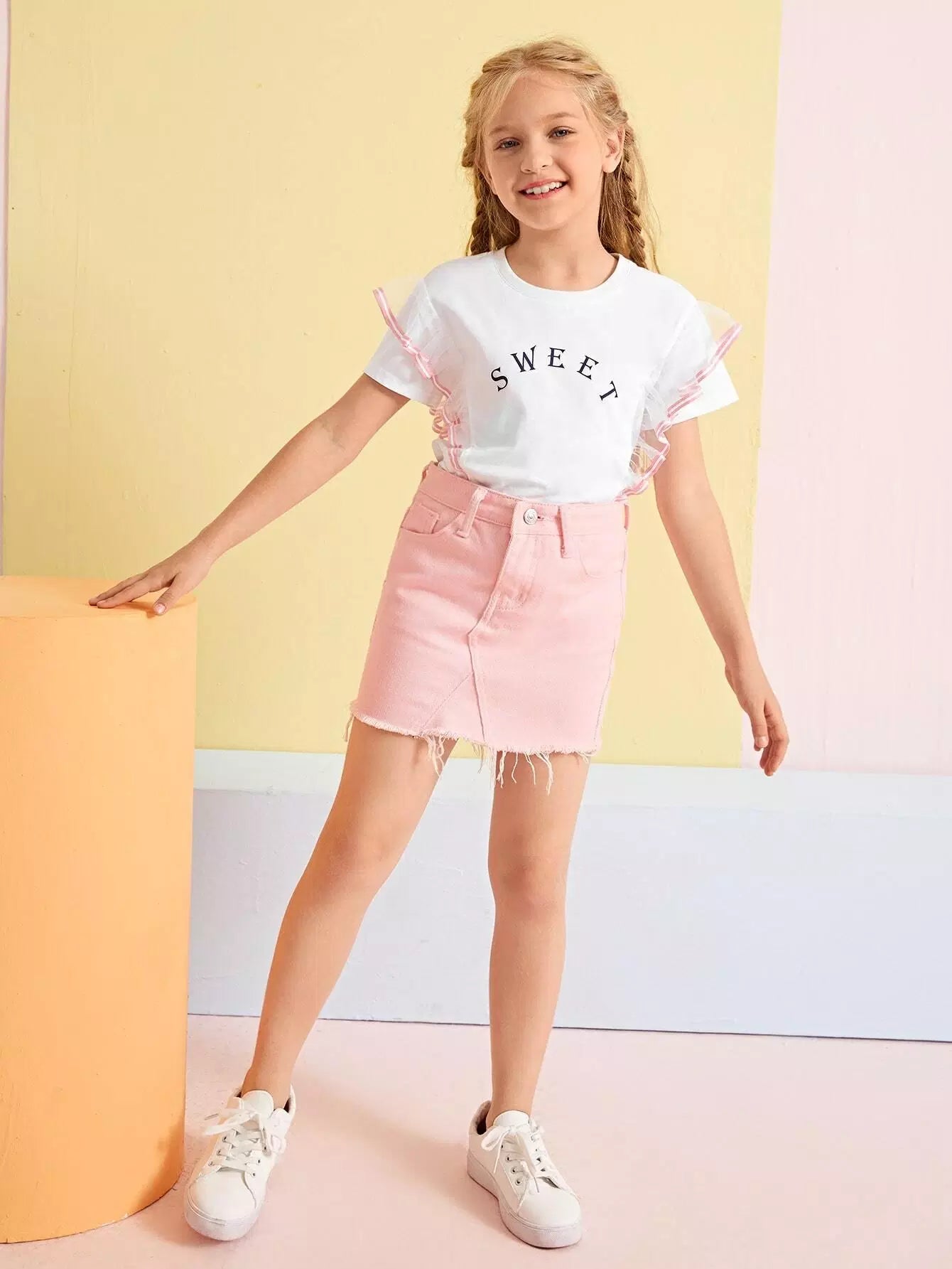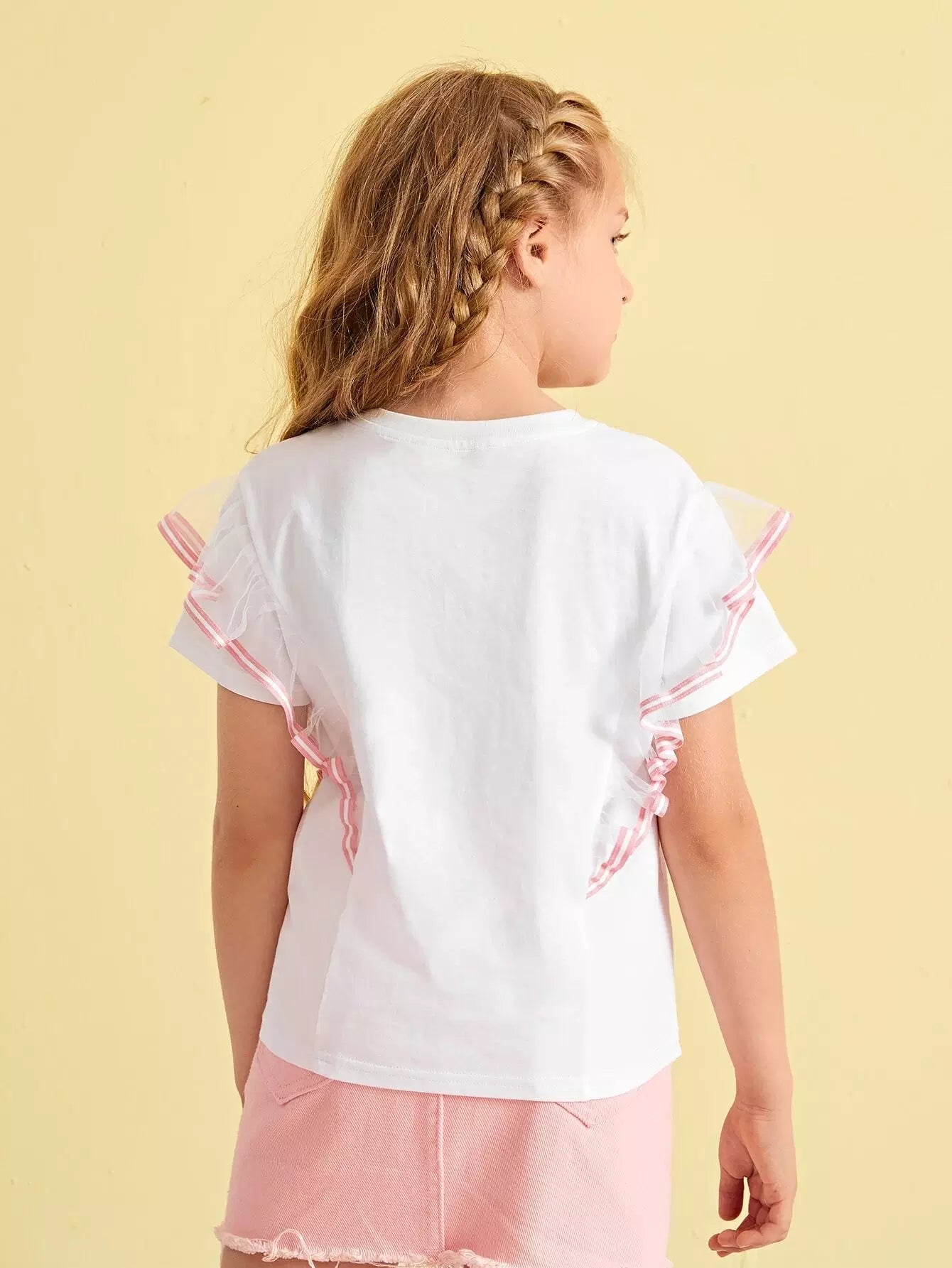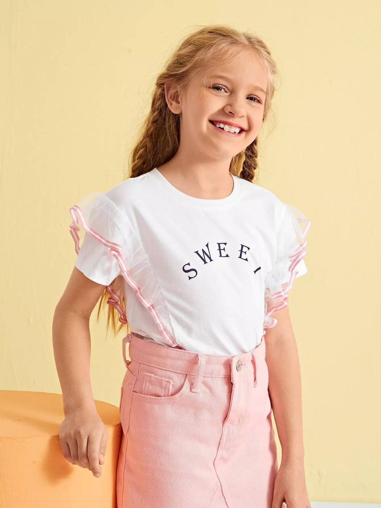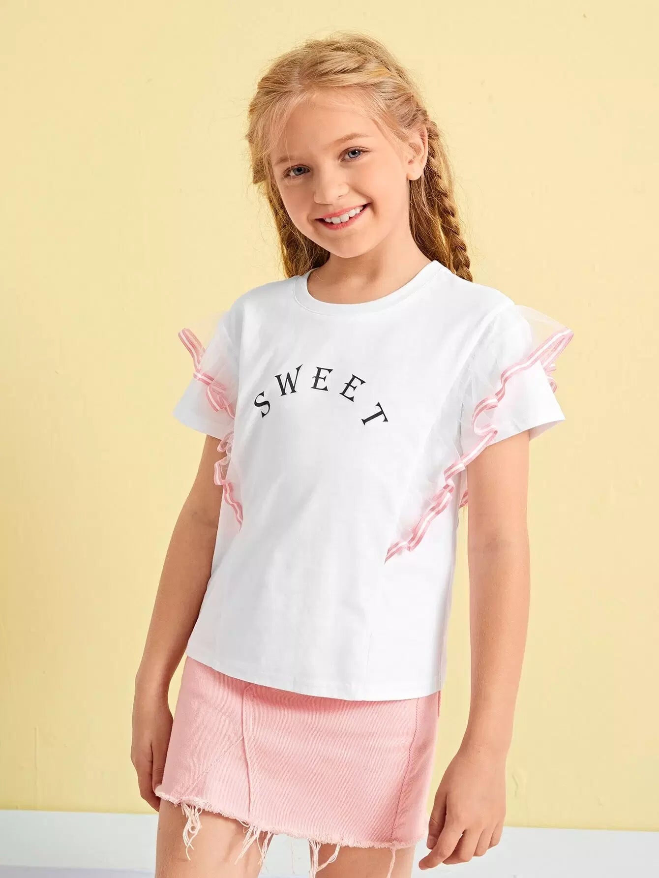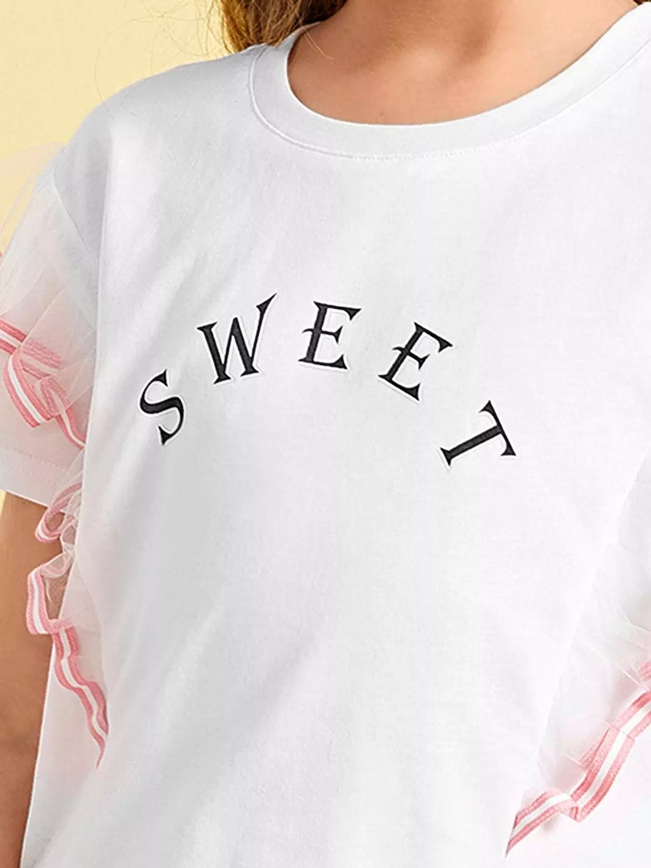 Girls Letter Graphic Contrast Mesh Tee