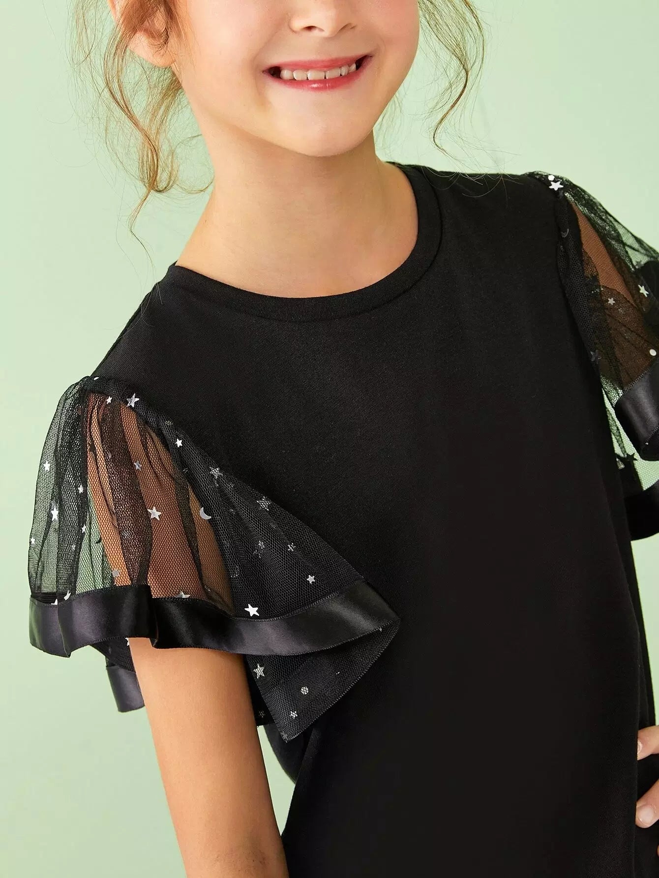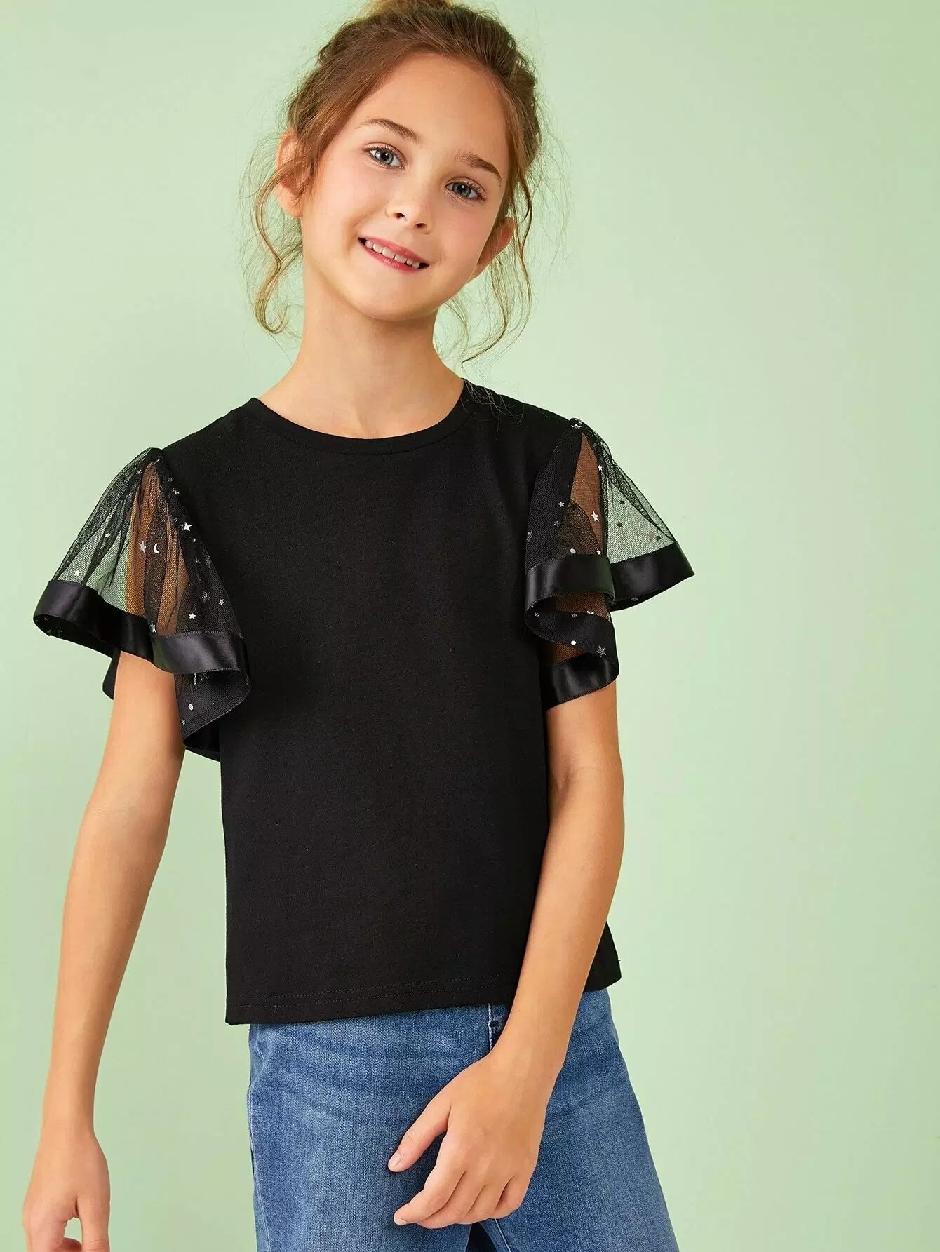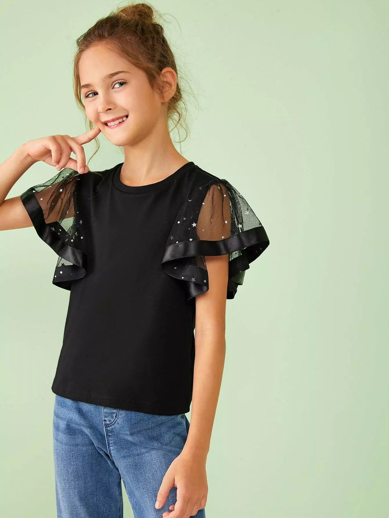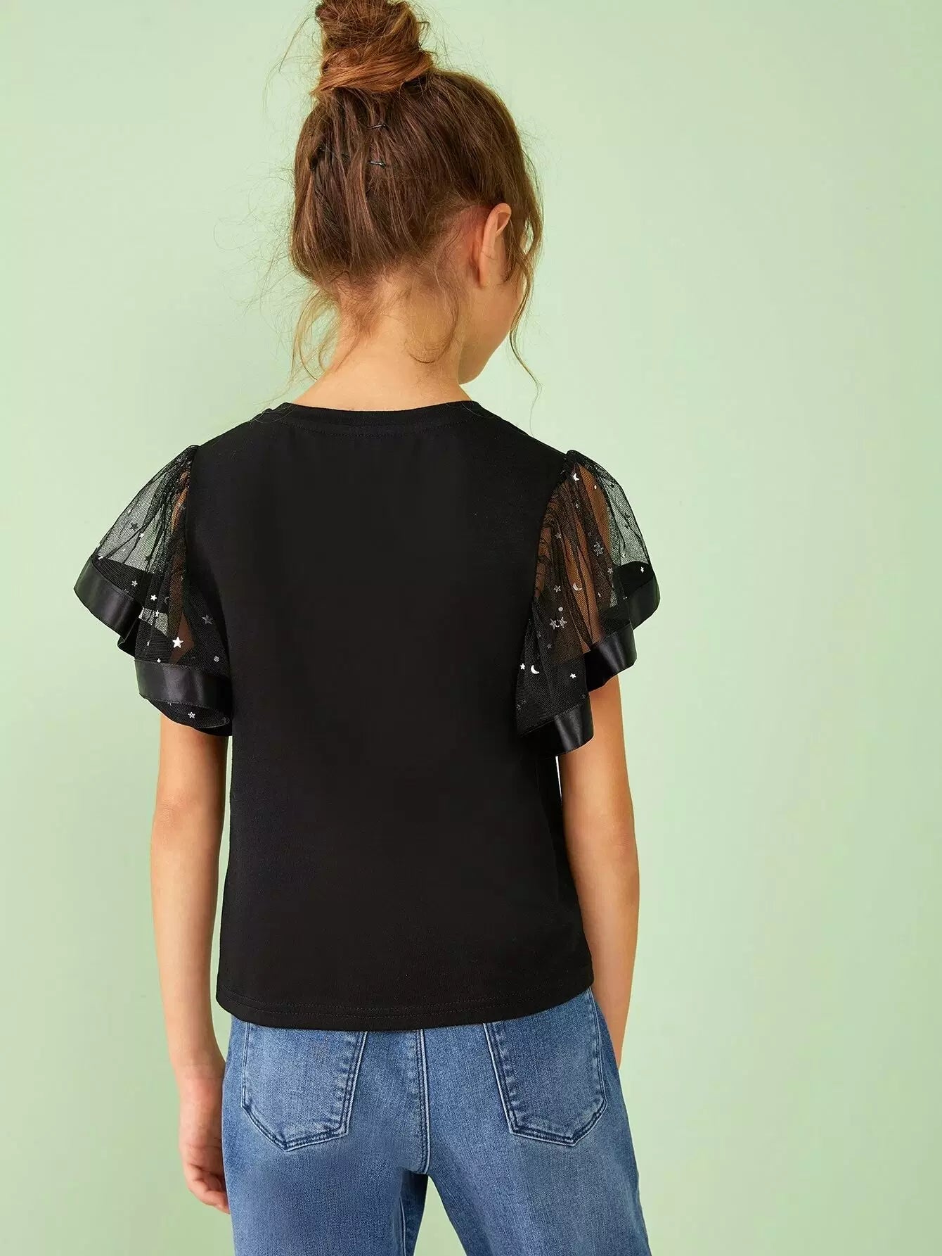 Kids - Girls Star Mesh Butterfly Sleeve Top