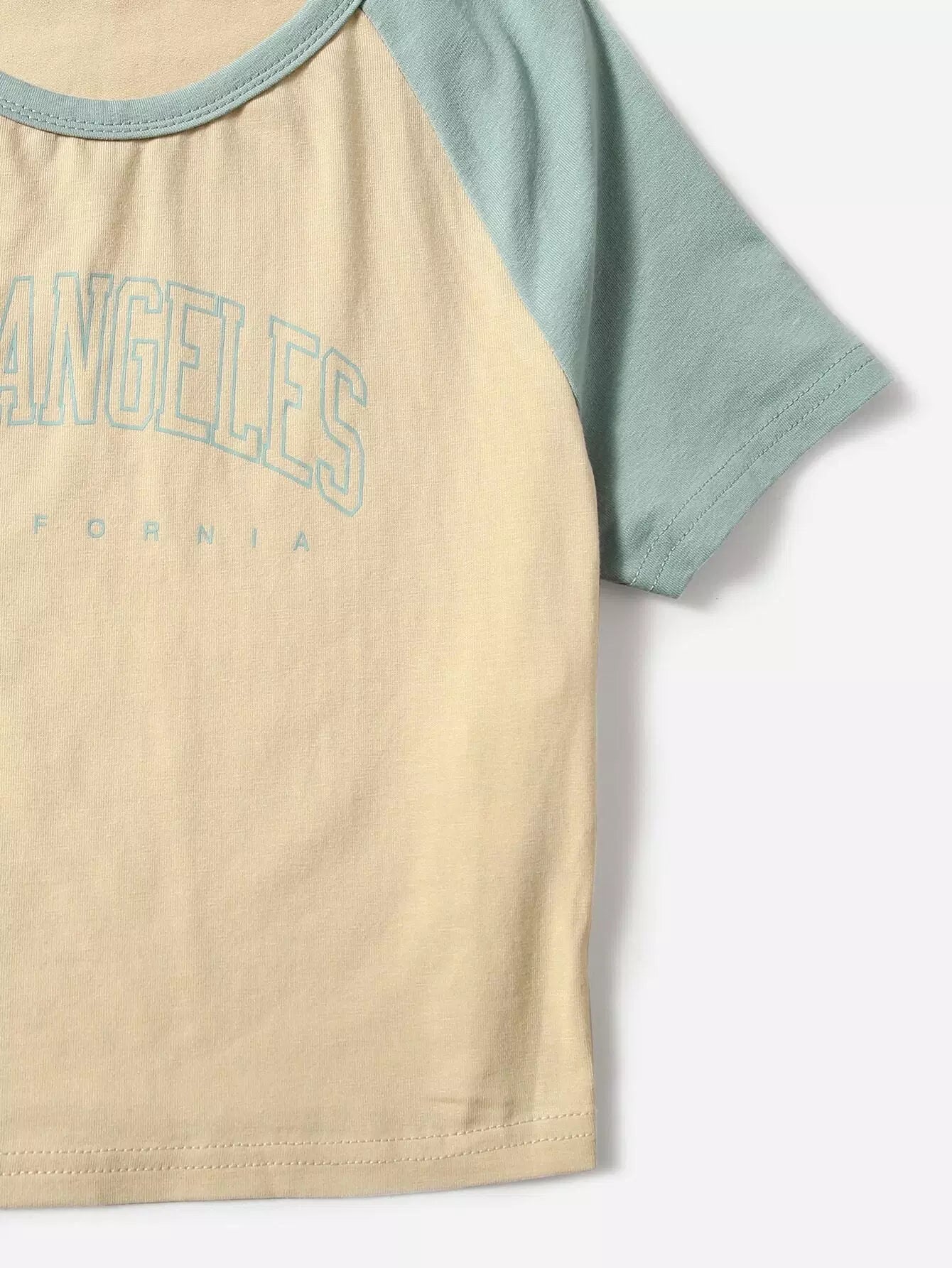 Teen Girls Letter Graphic Raglan Sleeve Tee