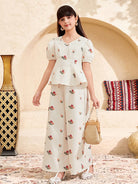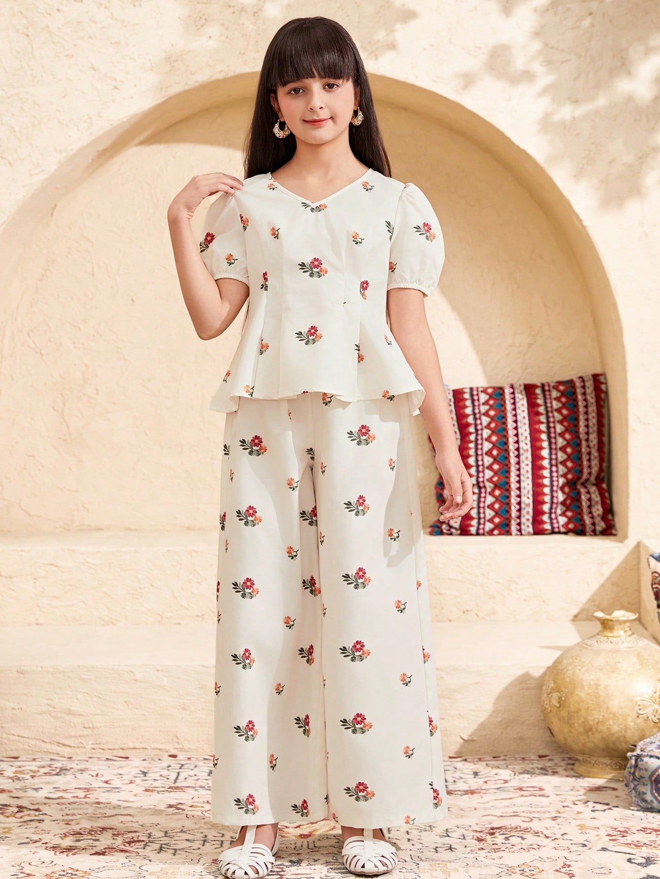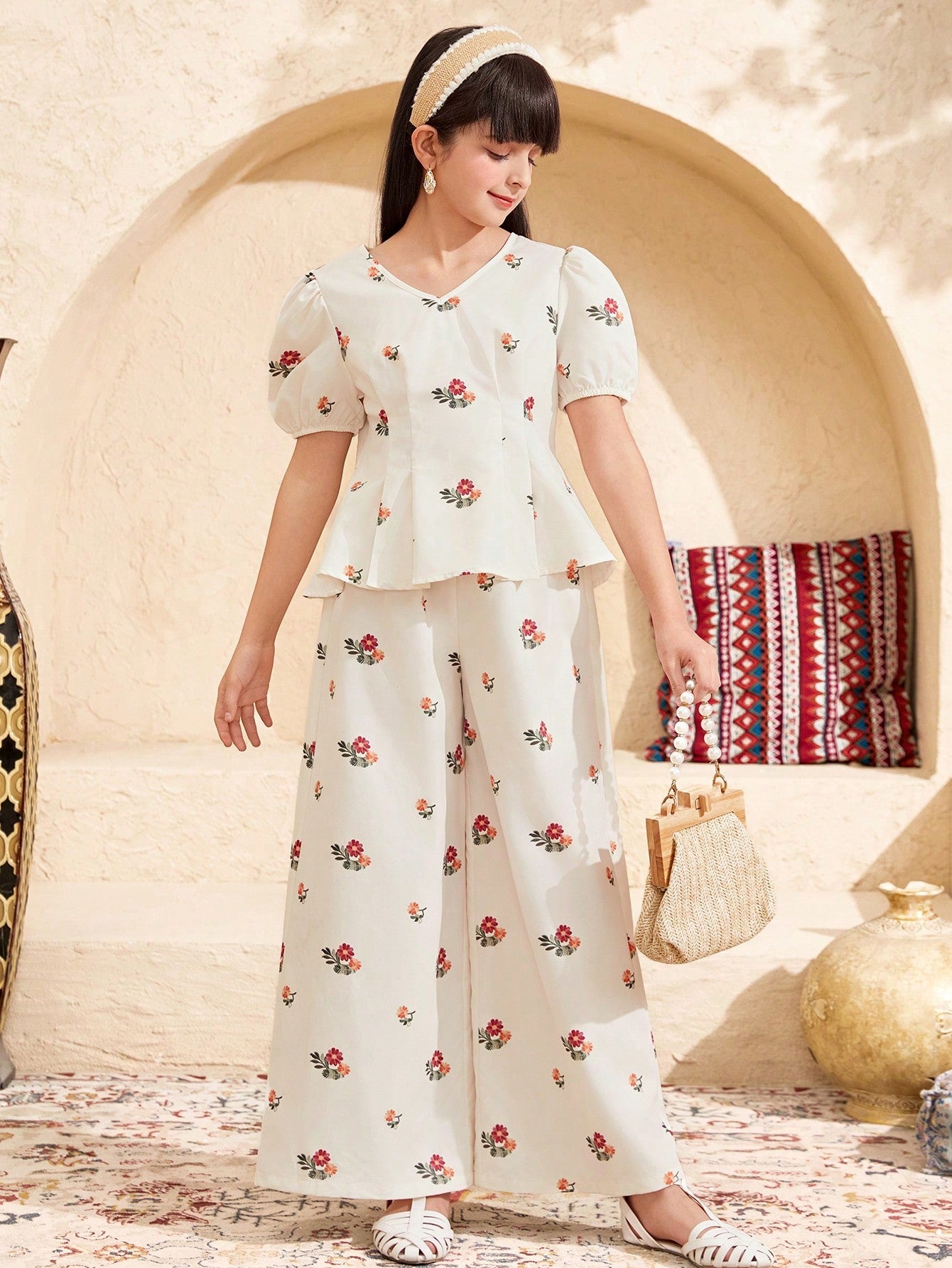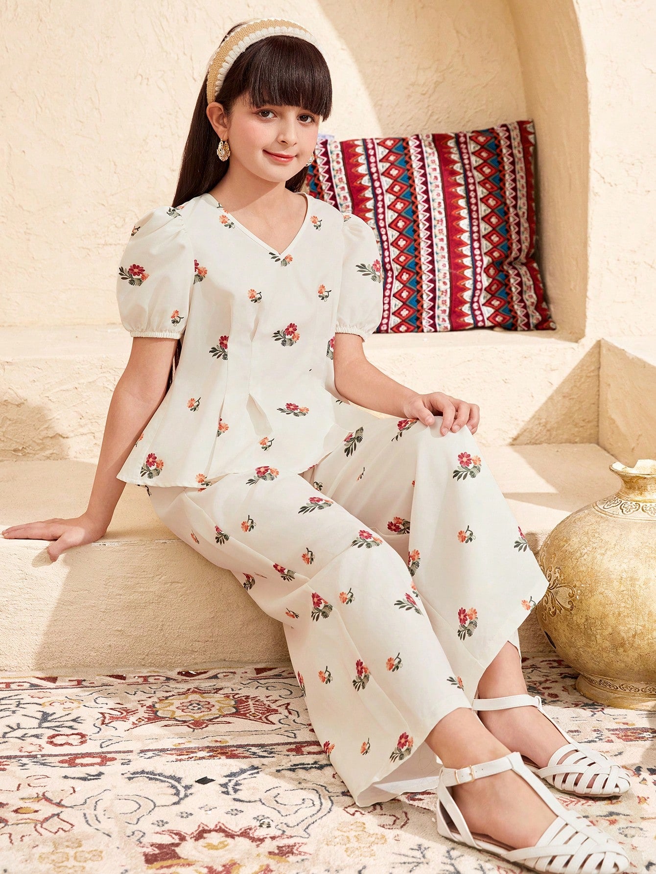 Tween Girl Floral Printed Elegant Tank Top & Straight Leg Pants Set