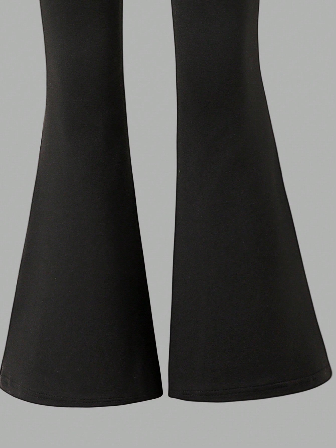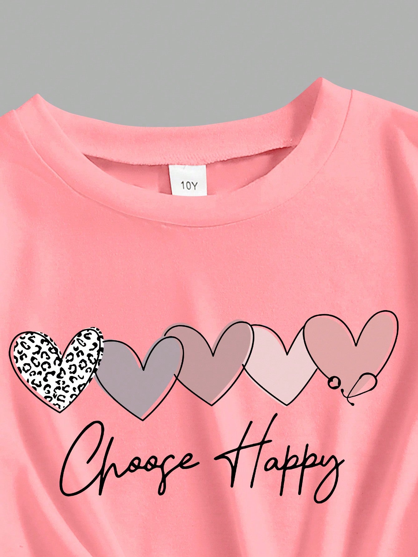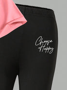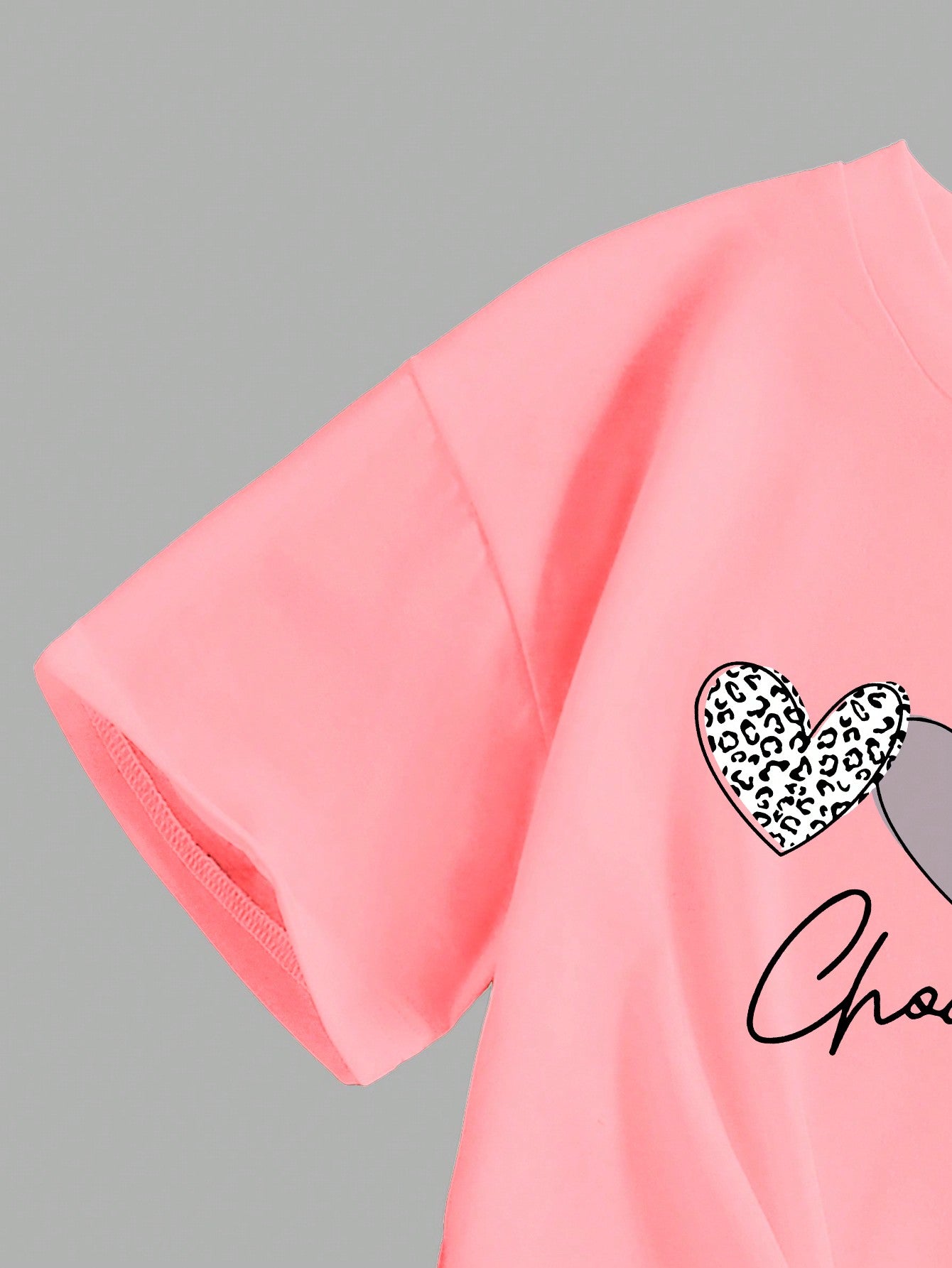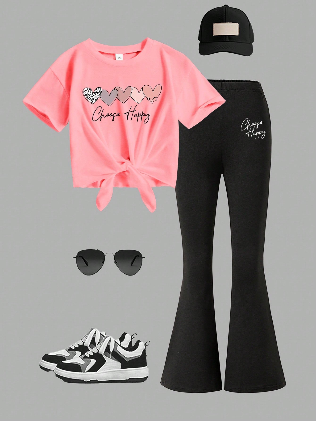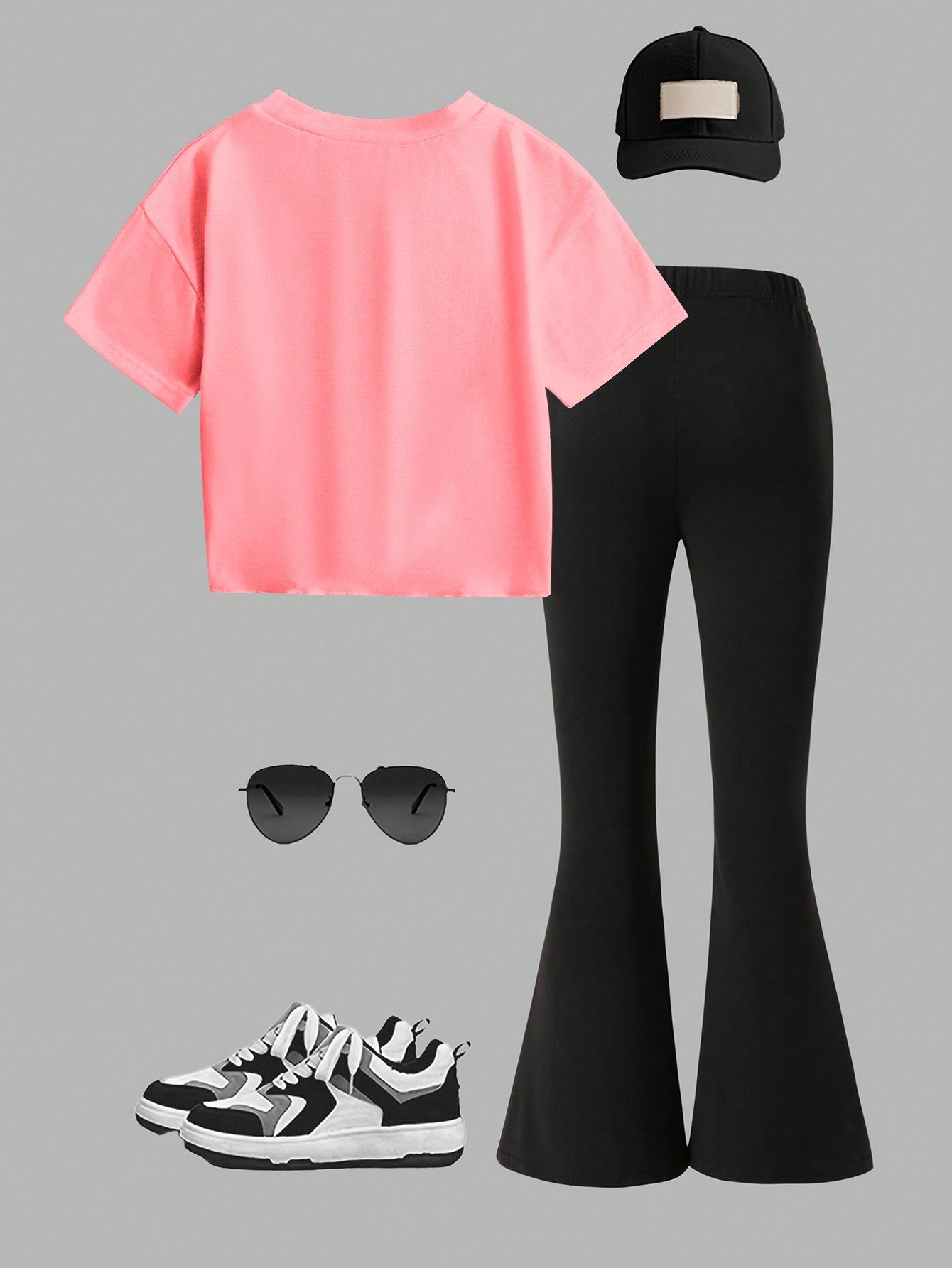 Tween Girls Cartoon Print Short Sleeve Top And Skinny Flared Pants Set