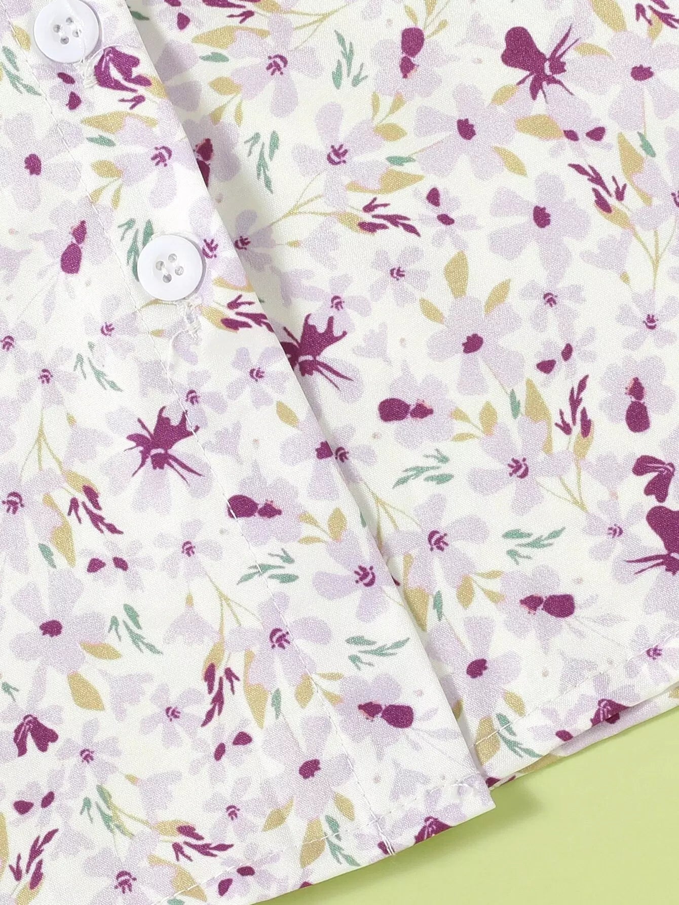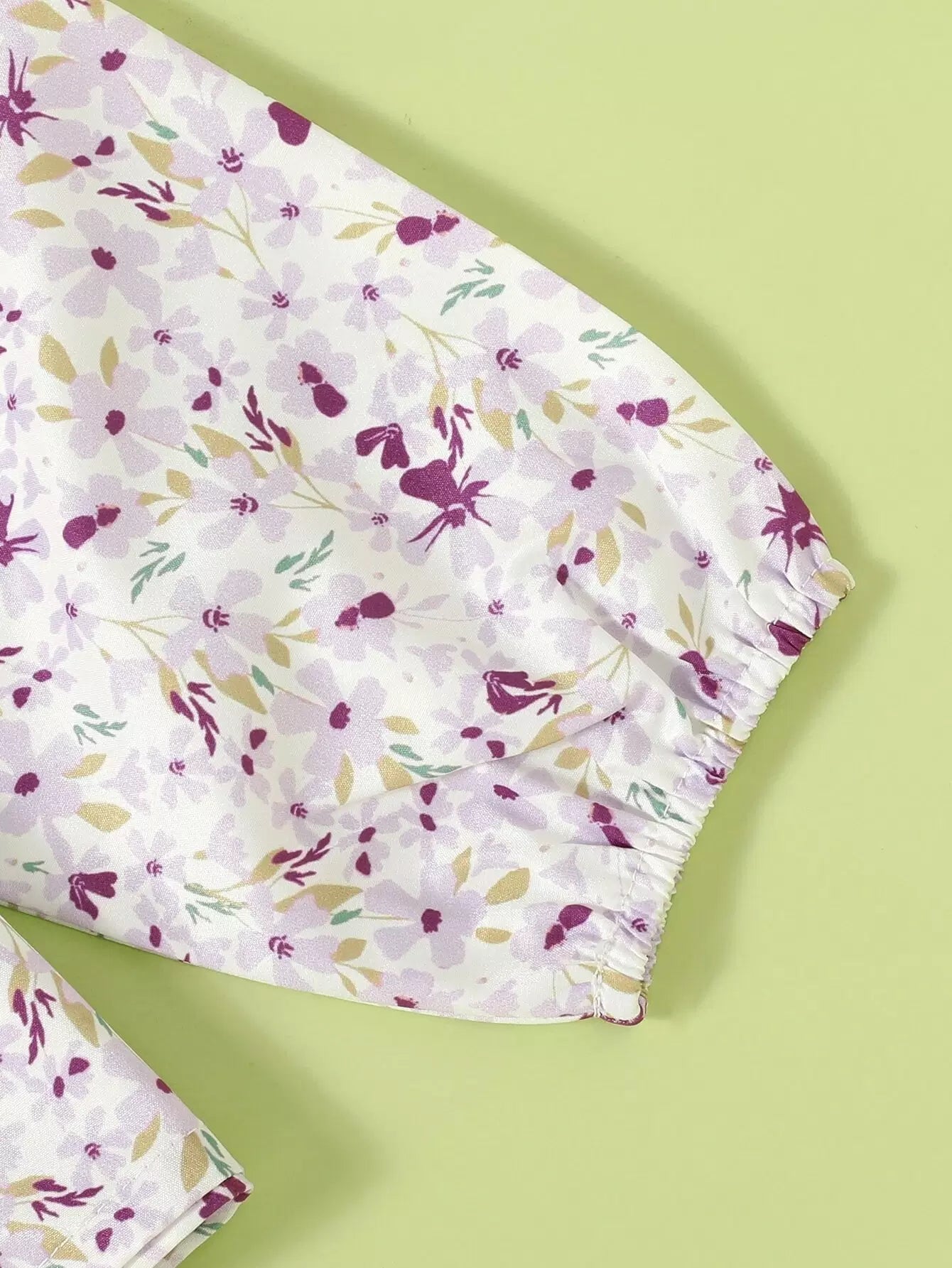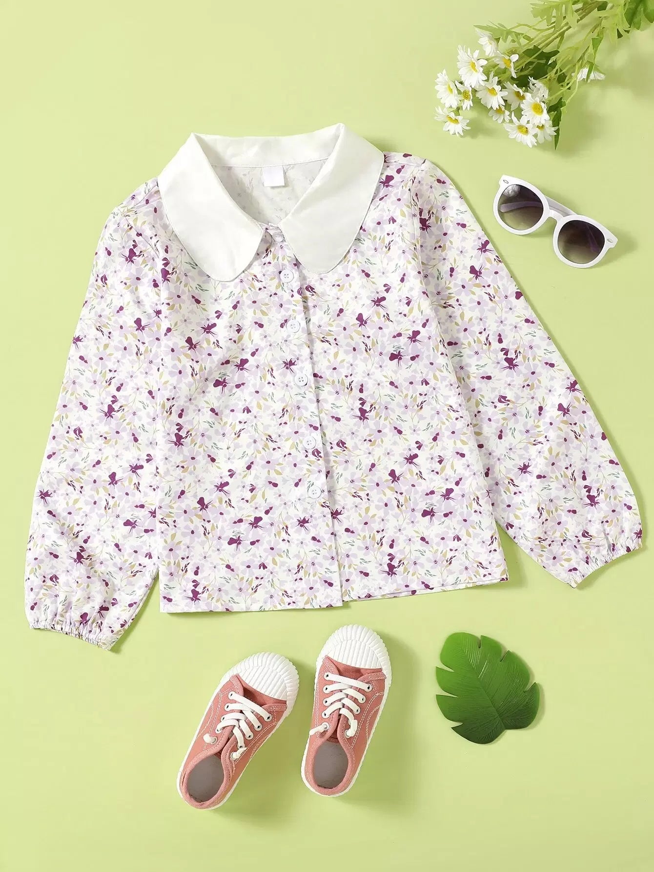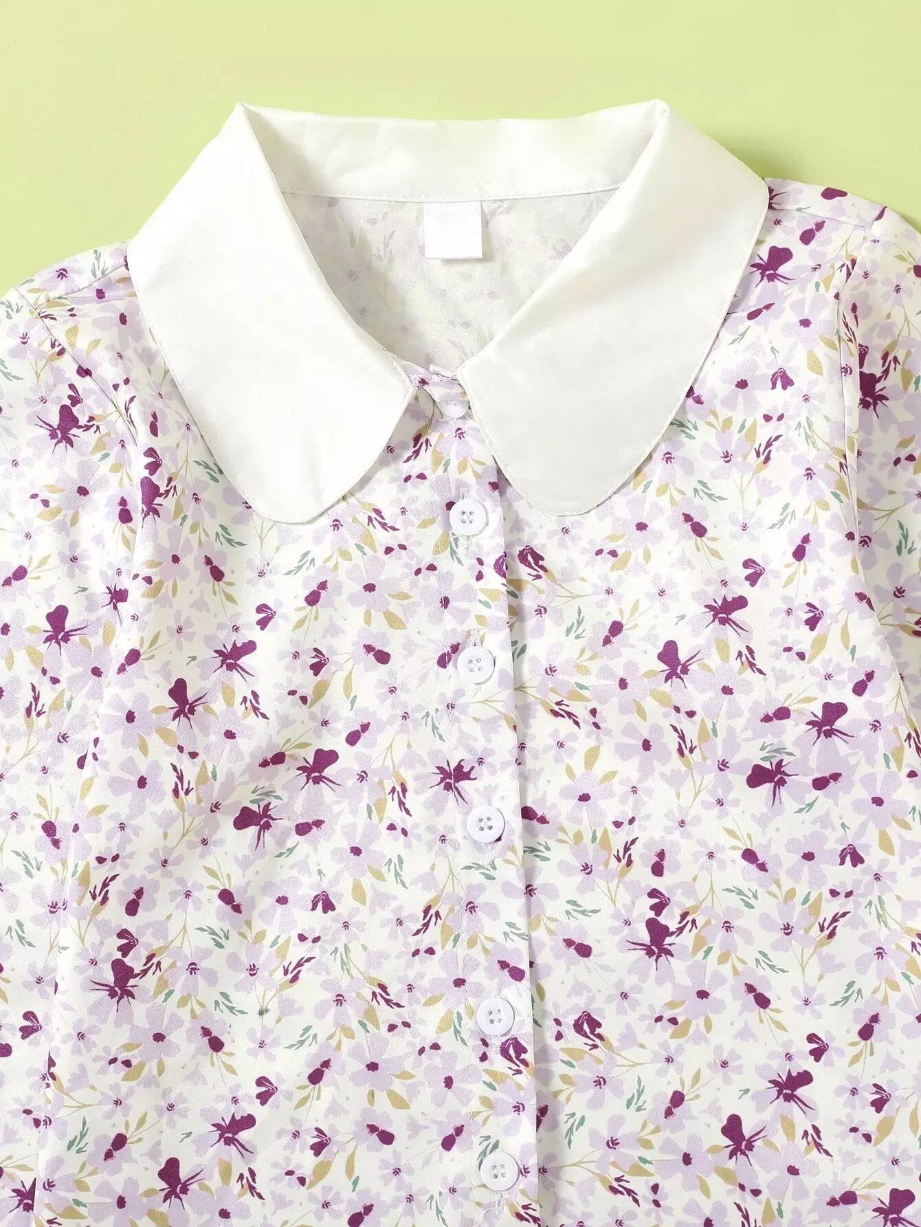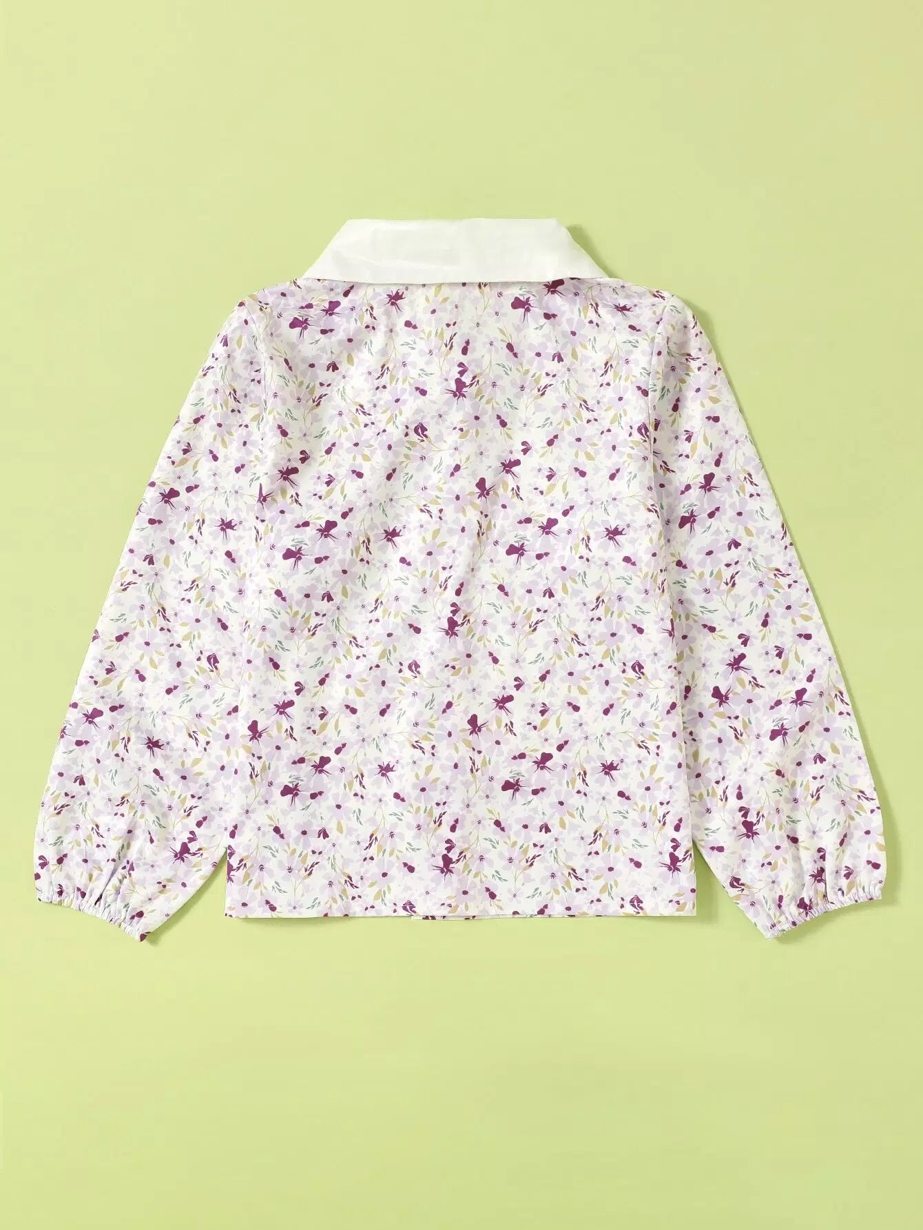 Kids - Girls Allover Floral Contrast Collar Blouse