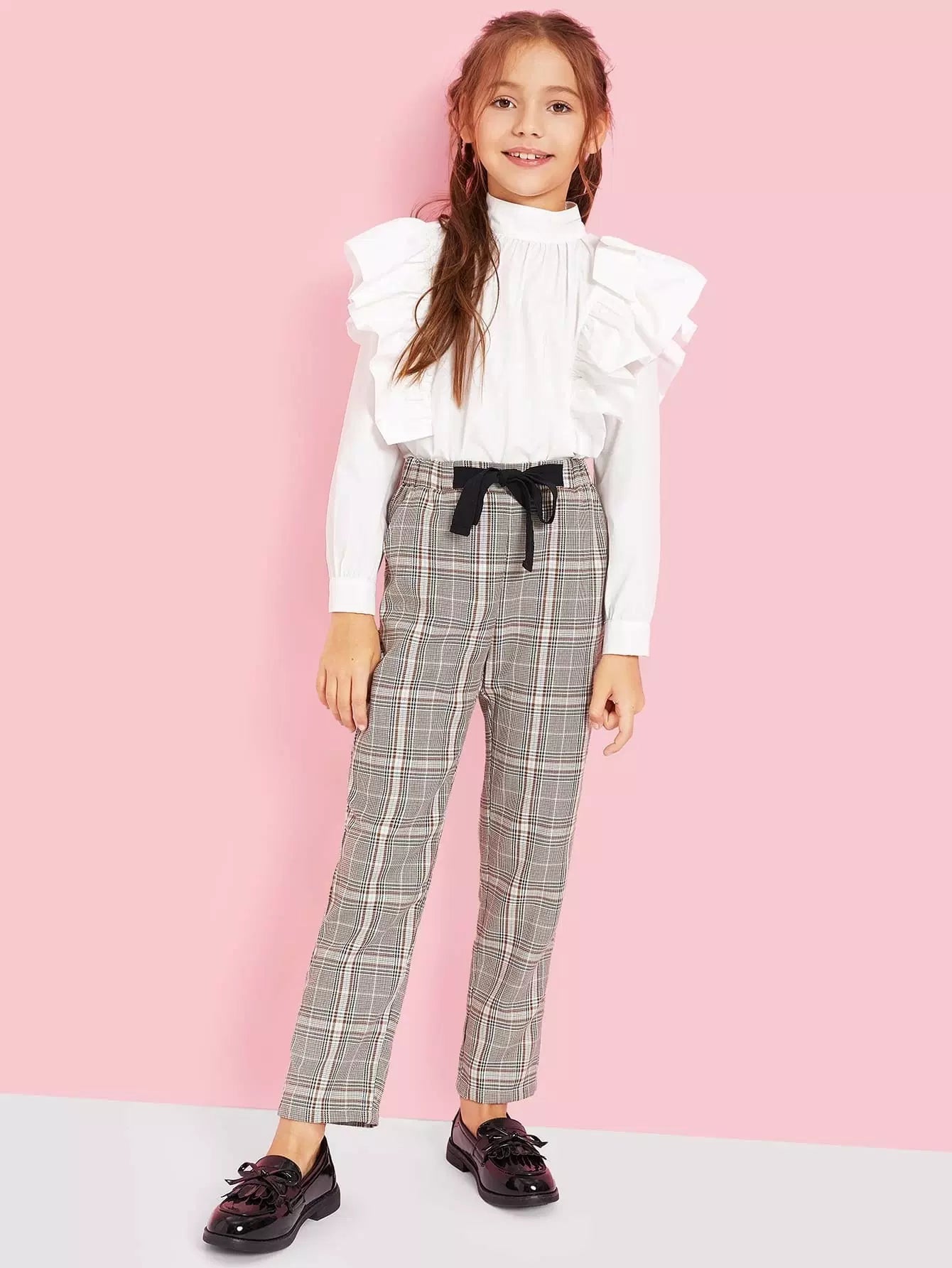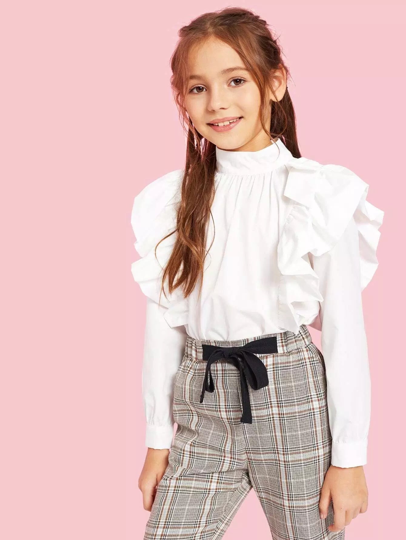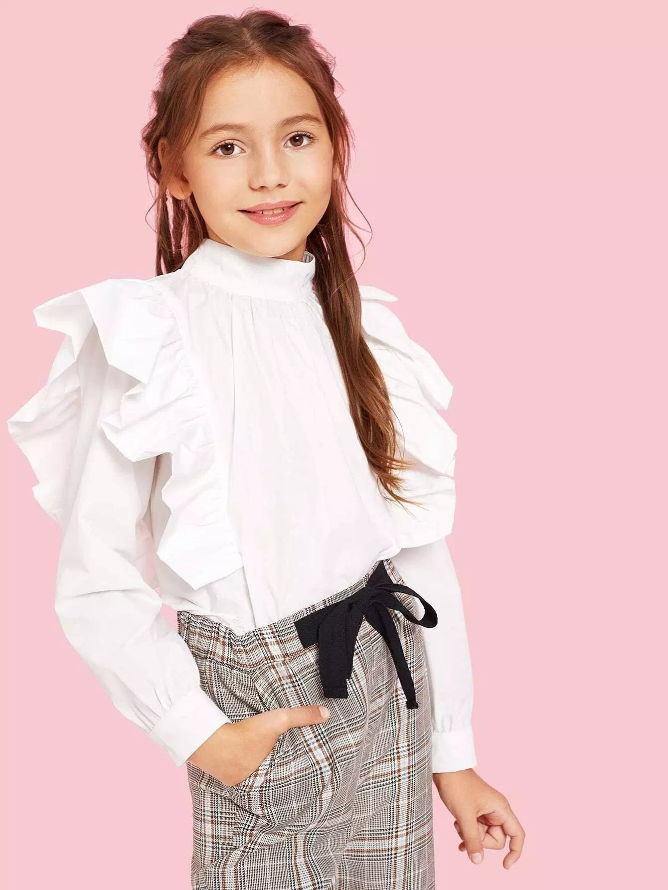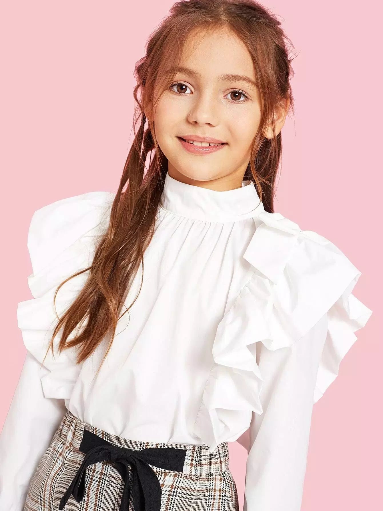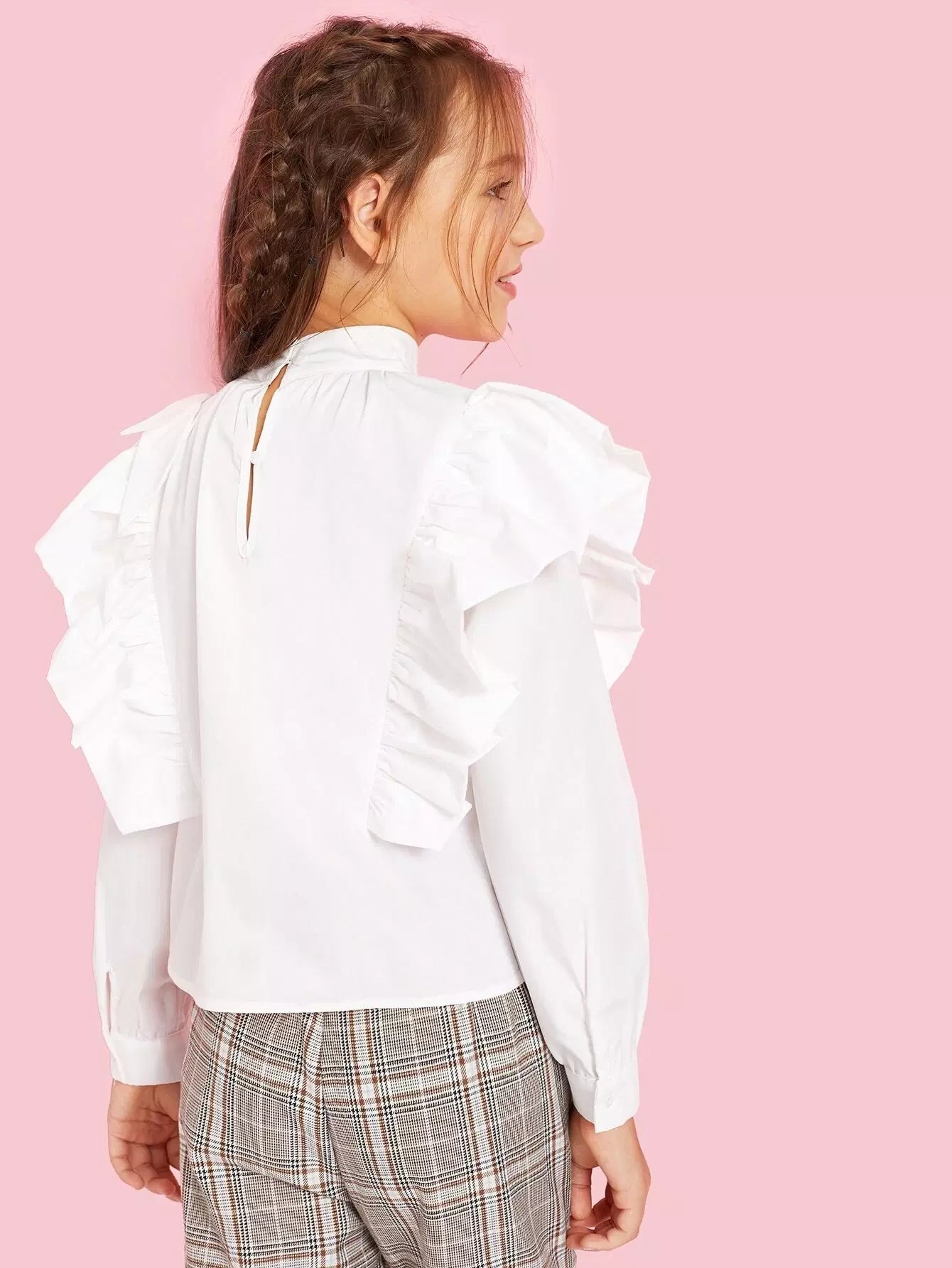 Girls Mock-neck Ruffle Embellished Pleated Front Blouse