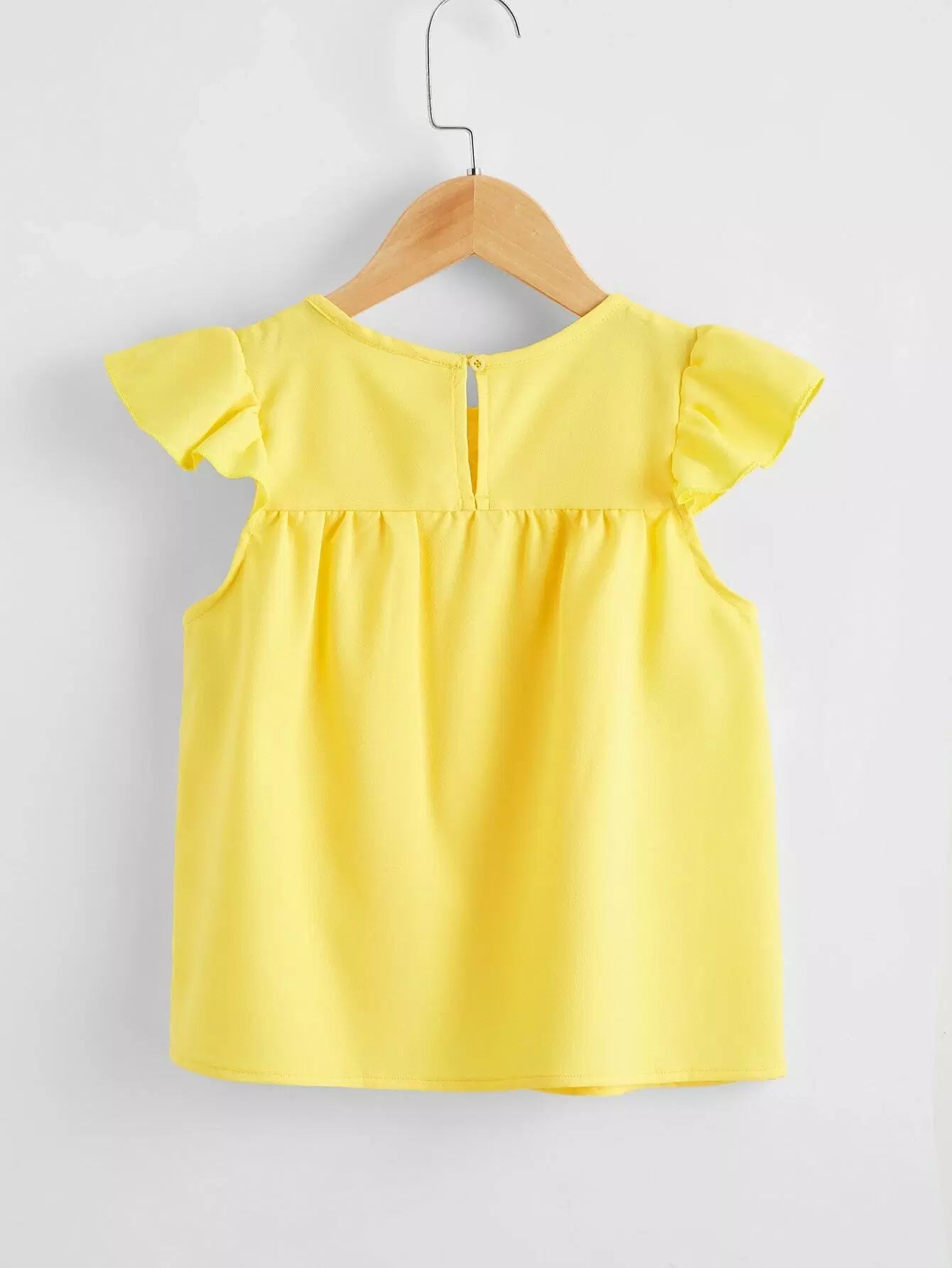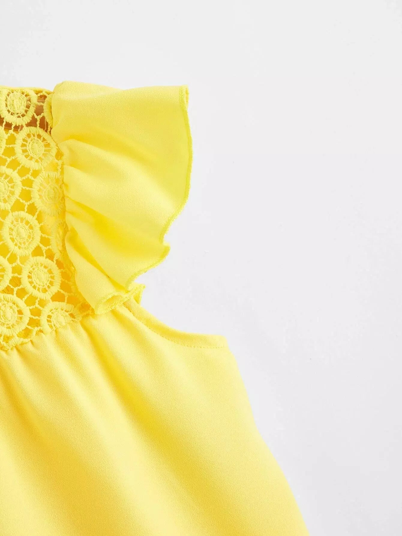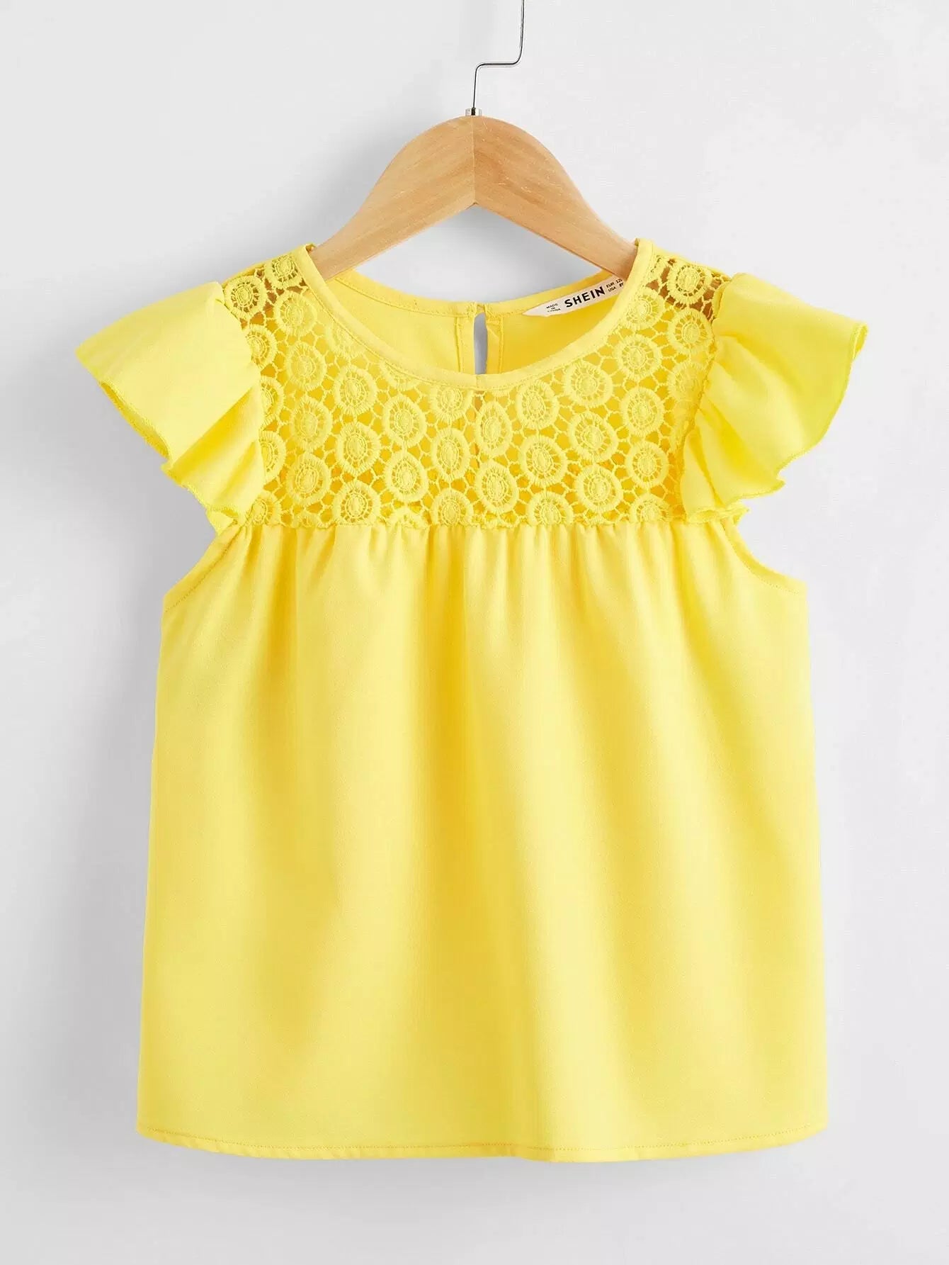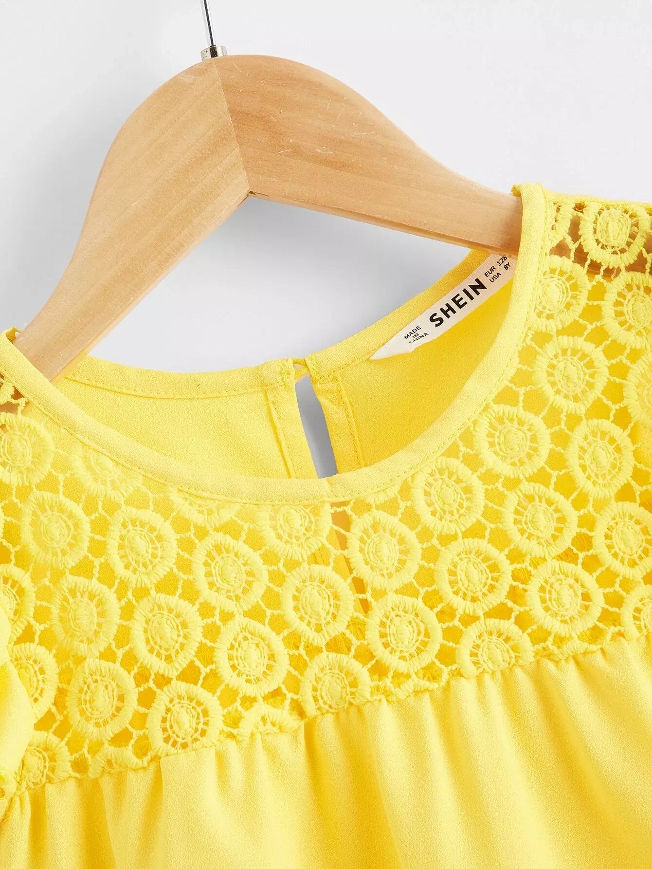 Girls Ruffle Trim Guipure Lace Yoke Top