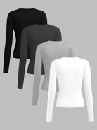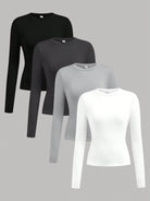 Girlism 4pcs/Set Teen Girls Crew Neck Knit All-Match Long Sleeve Casual Minimalist T-Shirts
