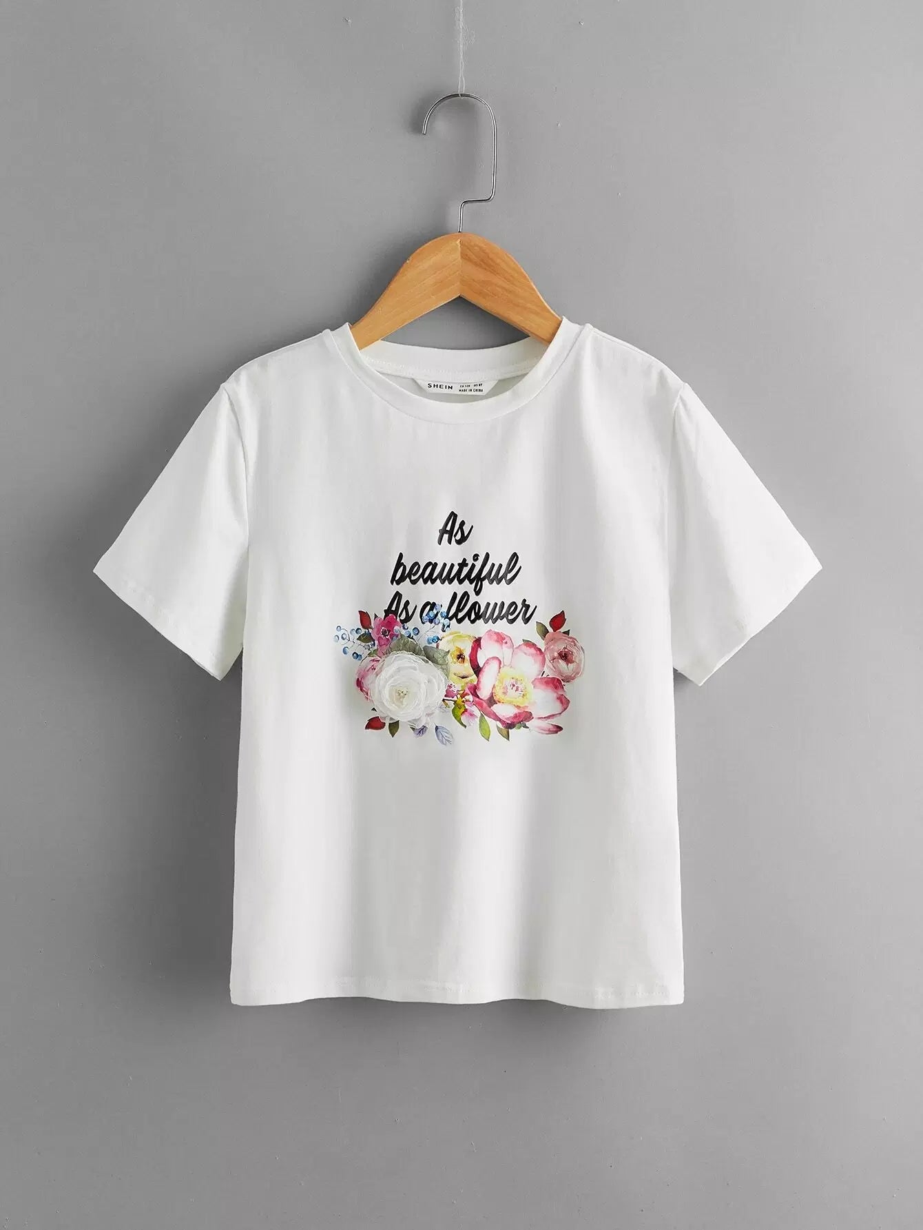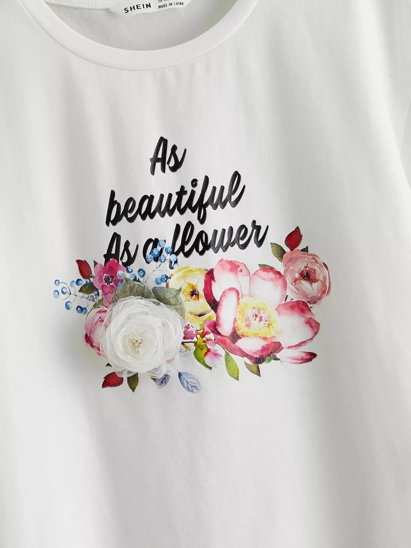 Girls 3D Applique Detail Slogan & Letter Print Tee