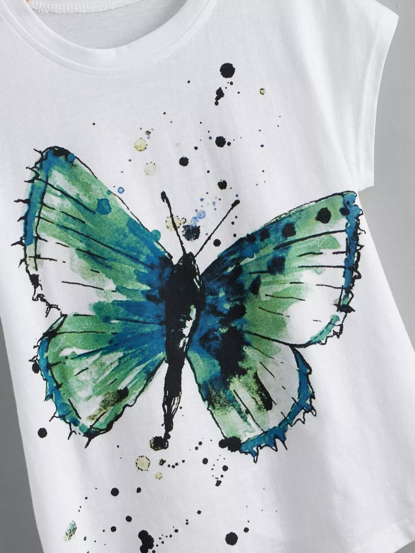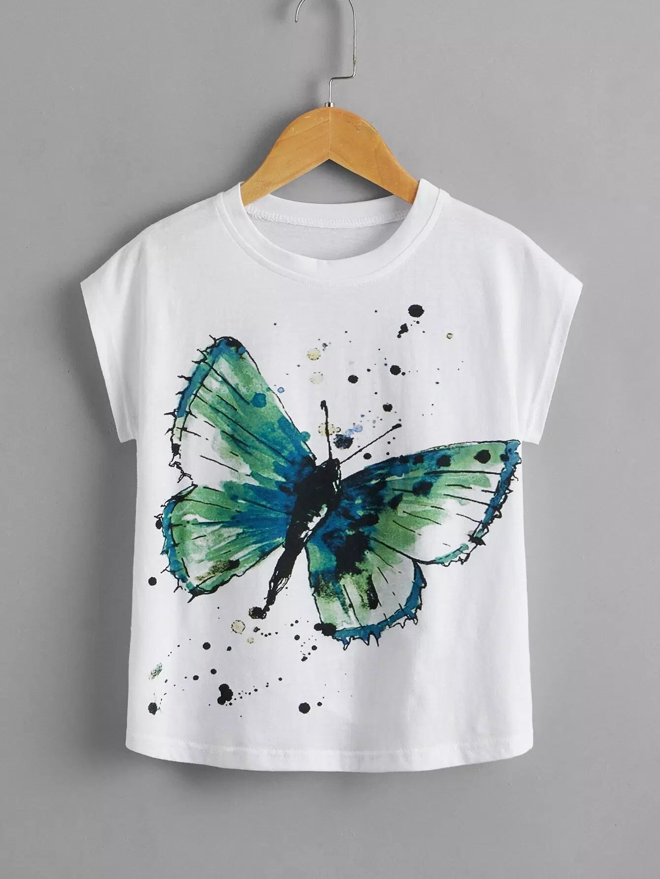 Girls - Girls Butterfly Print Batwing Sleeve Tee