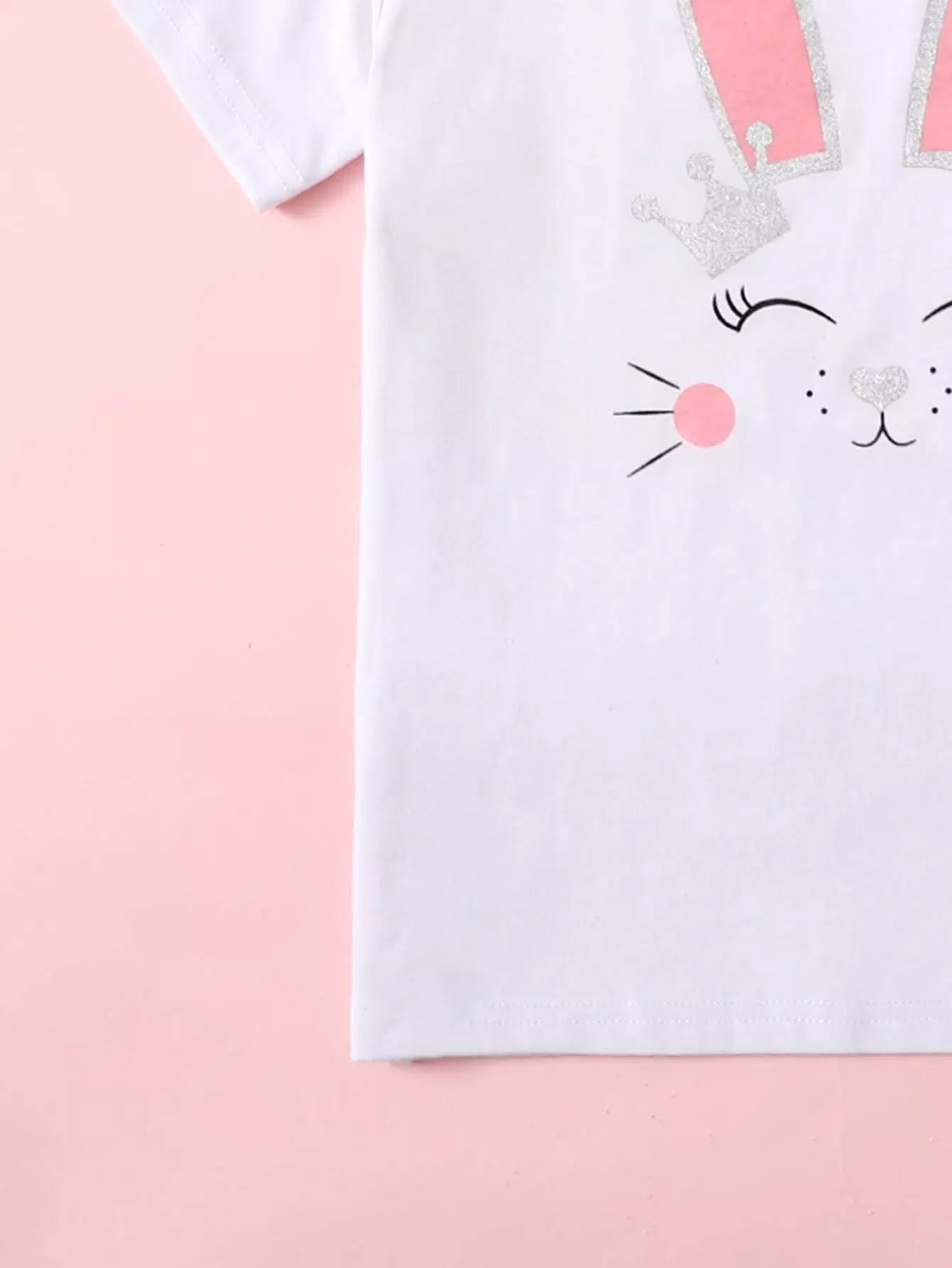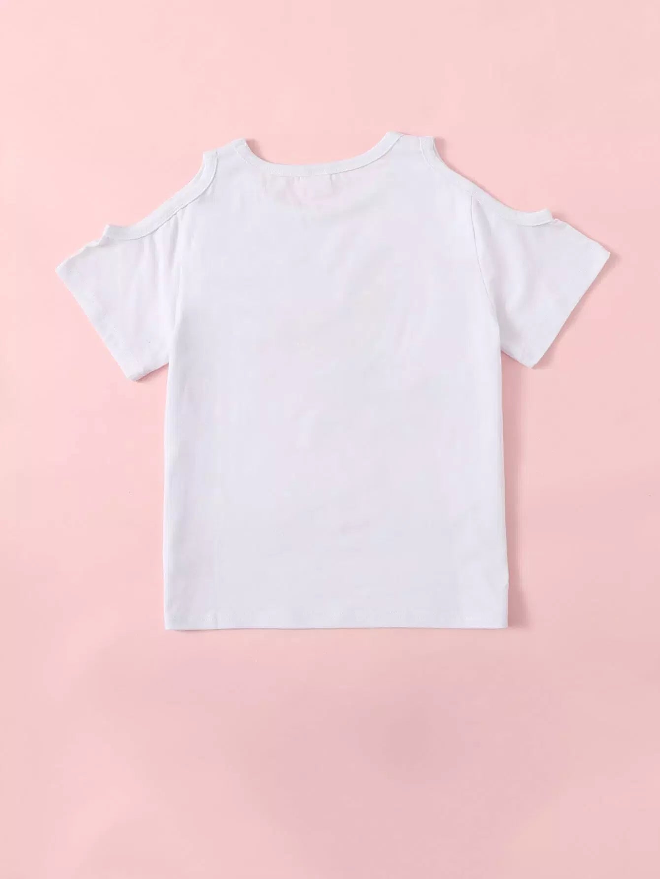Kids - Girls Cartoon Rabbit Print Cold Shoulder Tee
