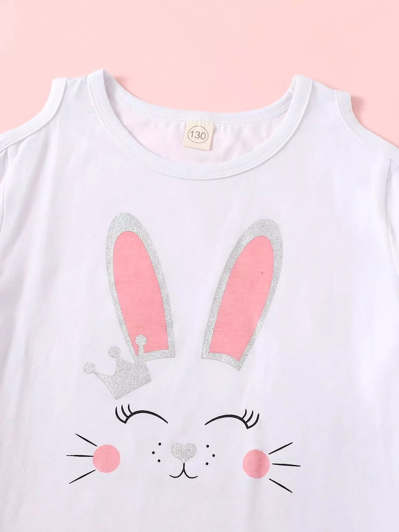 Girls Cartoon Rabbit Print Cold Shoulder Tee