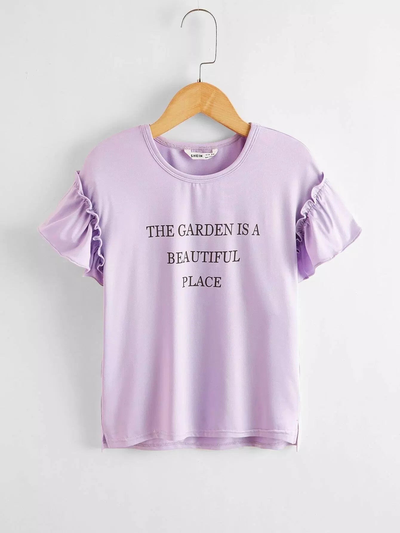 Girls Frill Trim Slogan Graphic Top