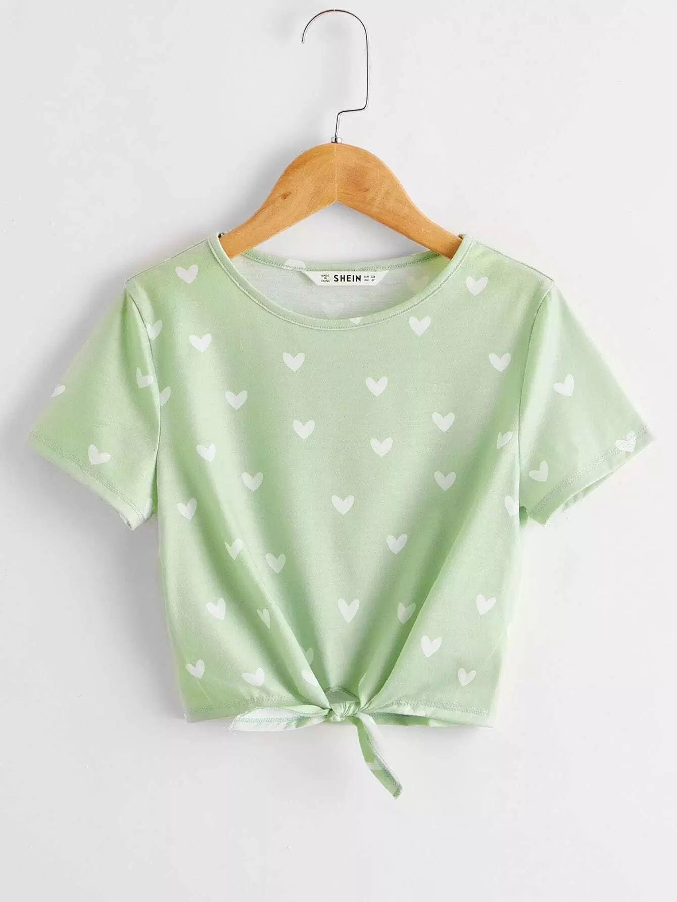 Girls Knot Hem Heart Print Tee