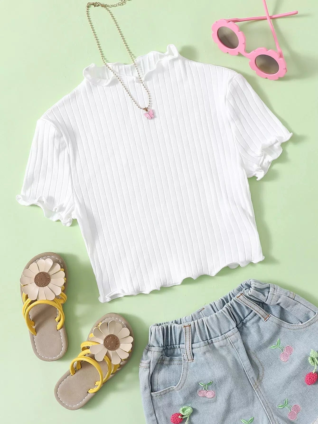 Girls Lettuce Trim Rib Knit Tee