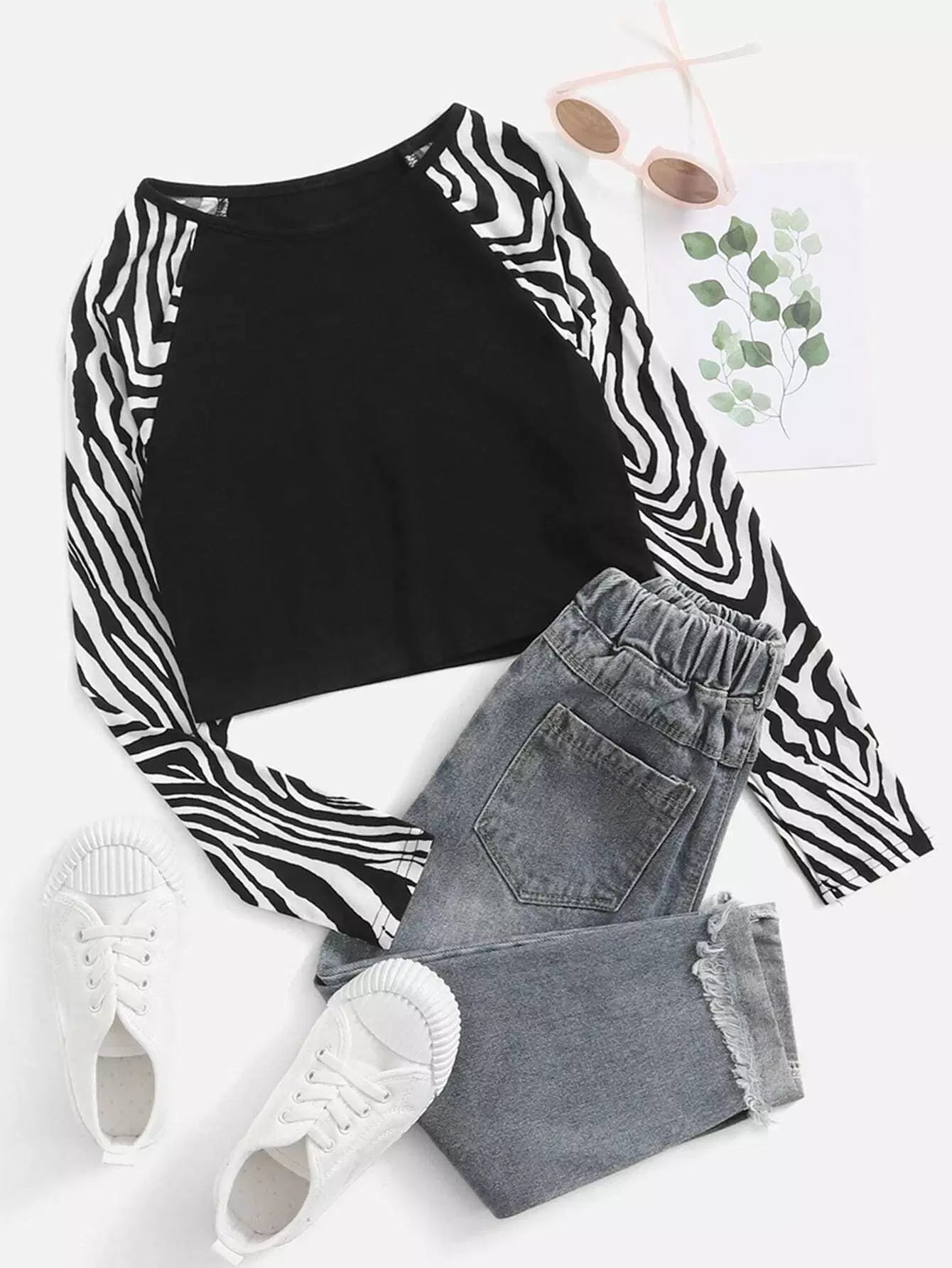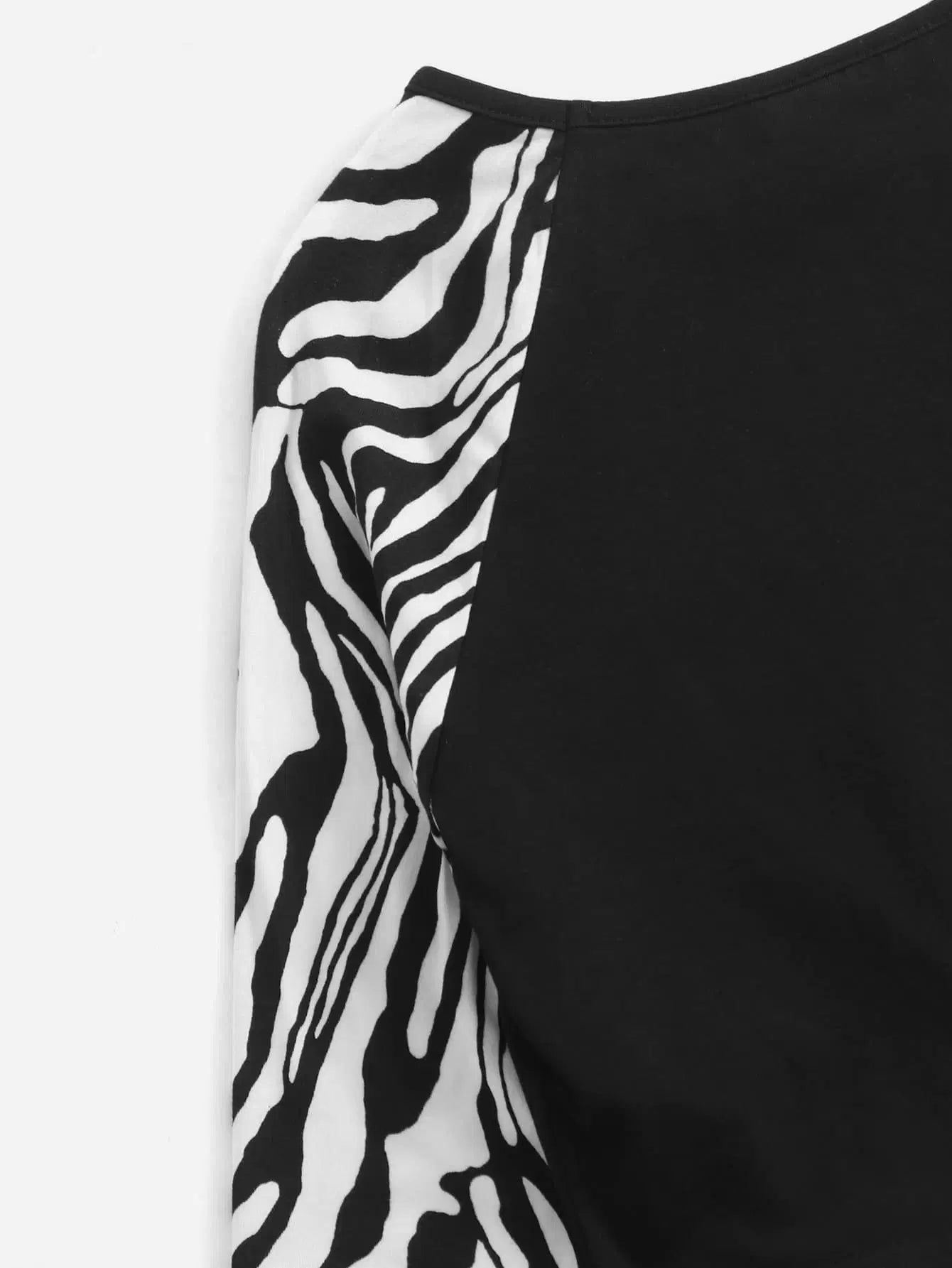 Girls Zebra Striped Raglan Sleeve Tee