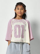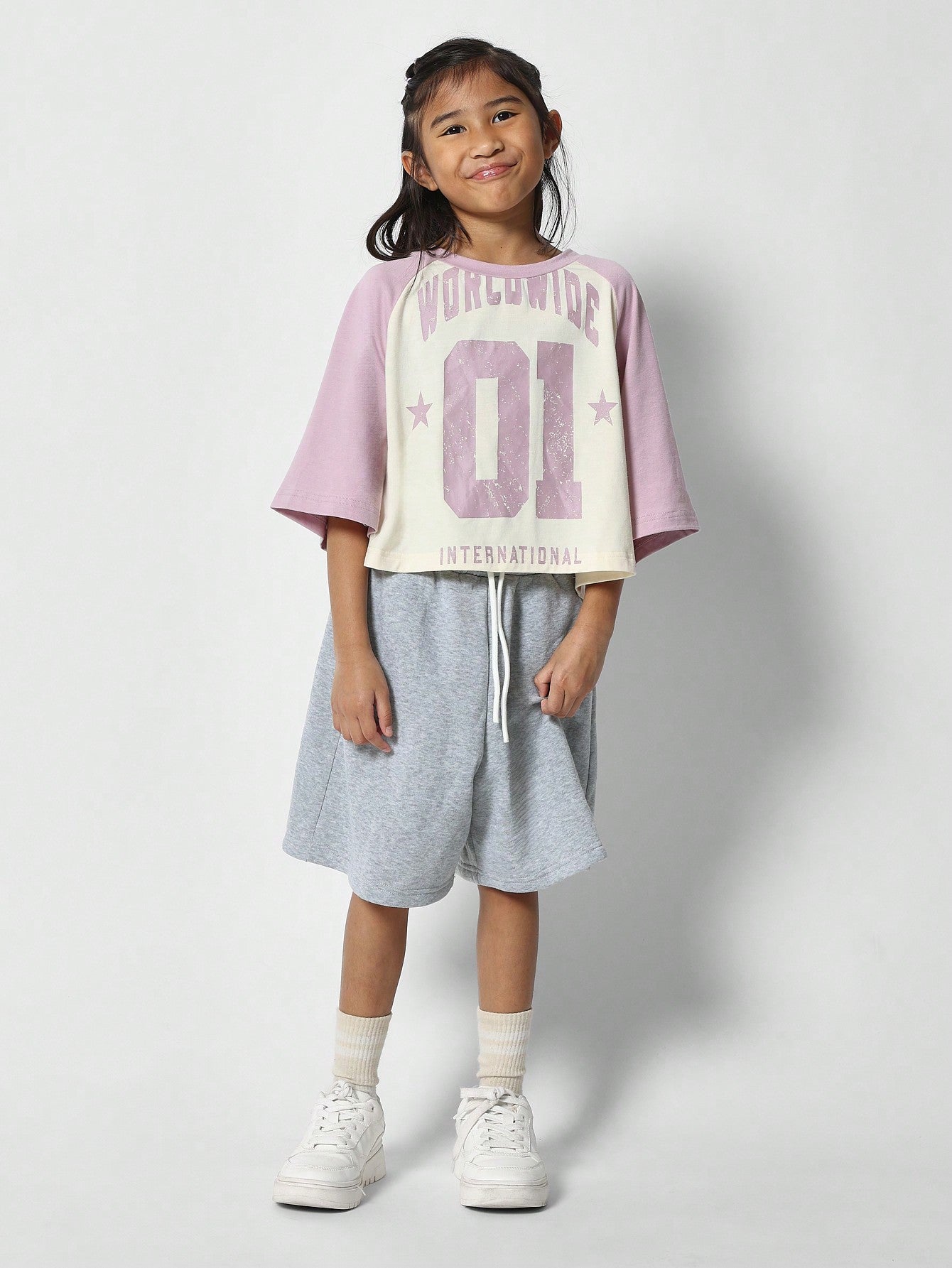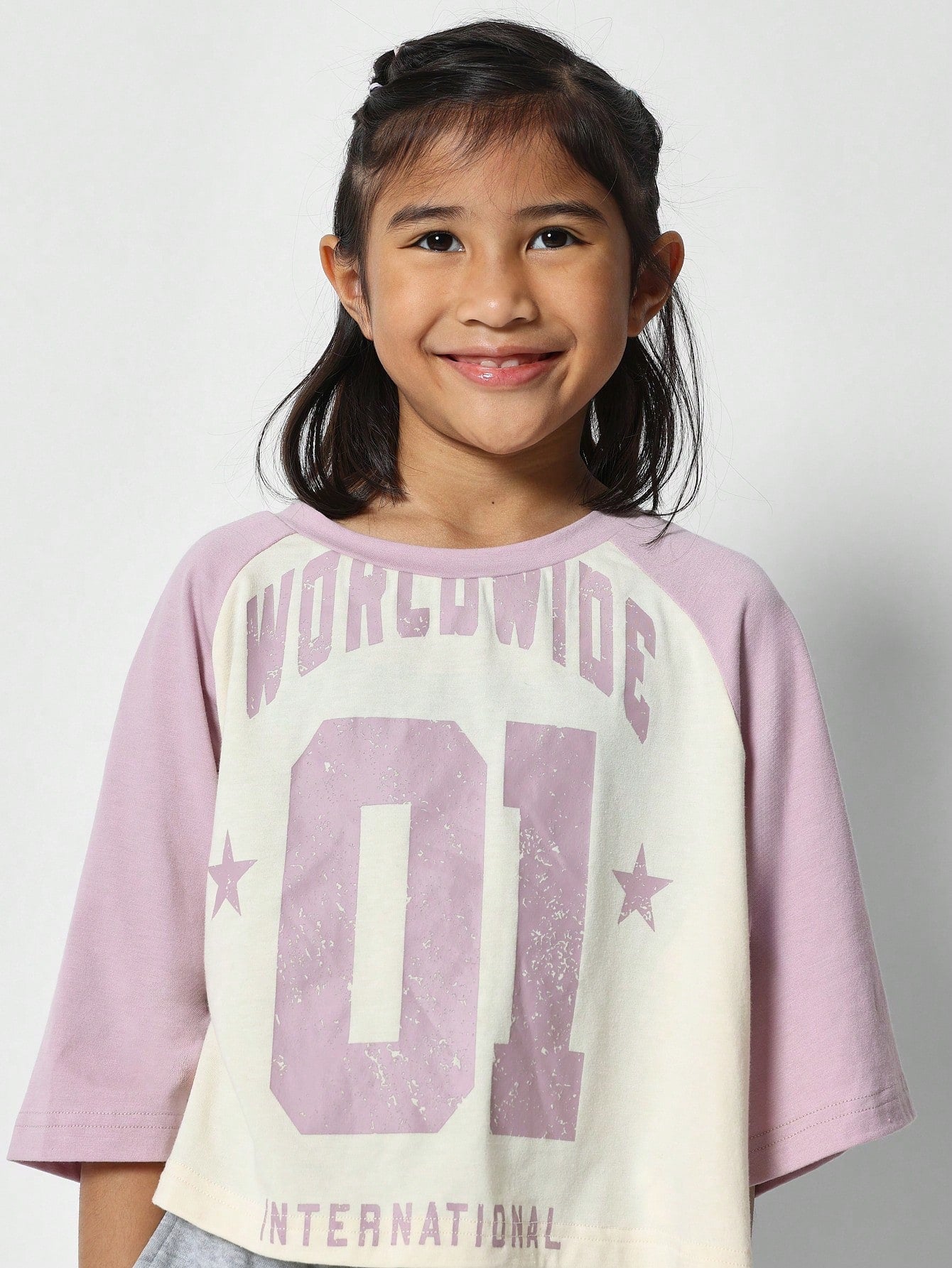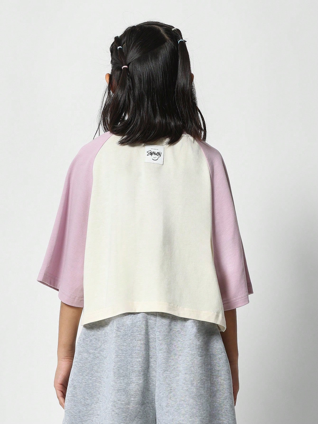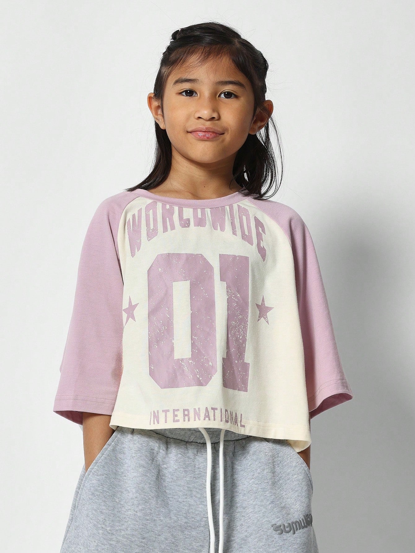SUMWON Tween Girls Oversized Crop Fit Raglan Tee With Front Graphic Print