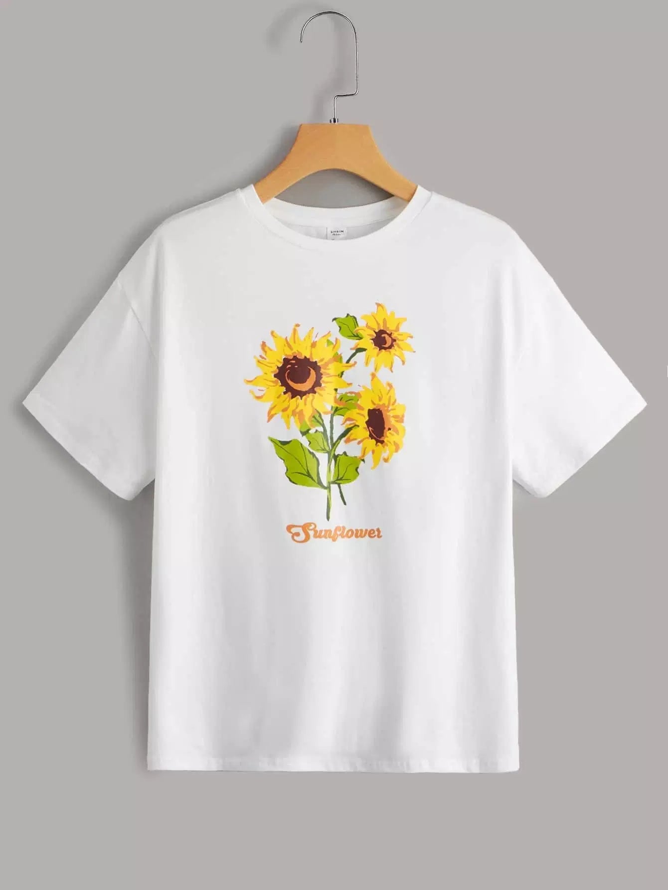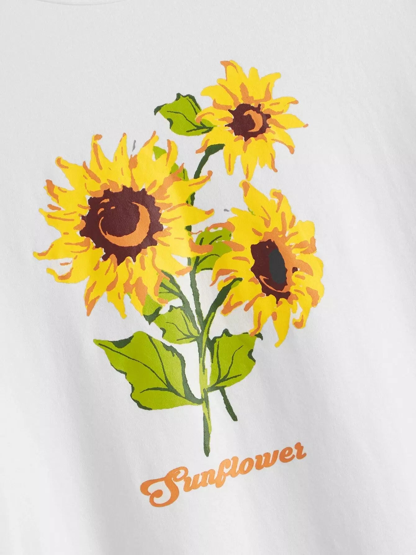 Teen Girls Sunflower Print Drop Shoulder Tee
