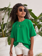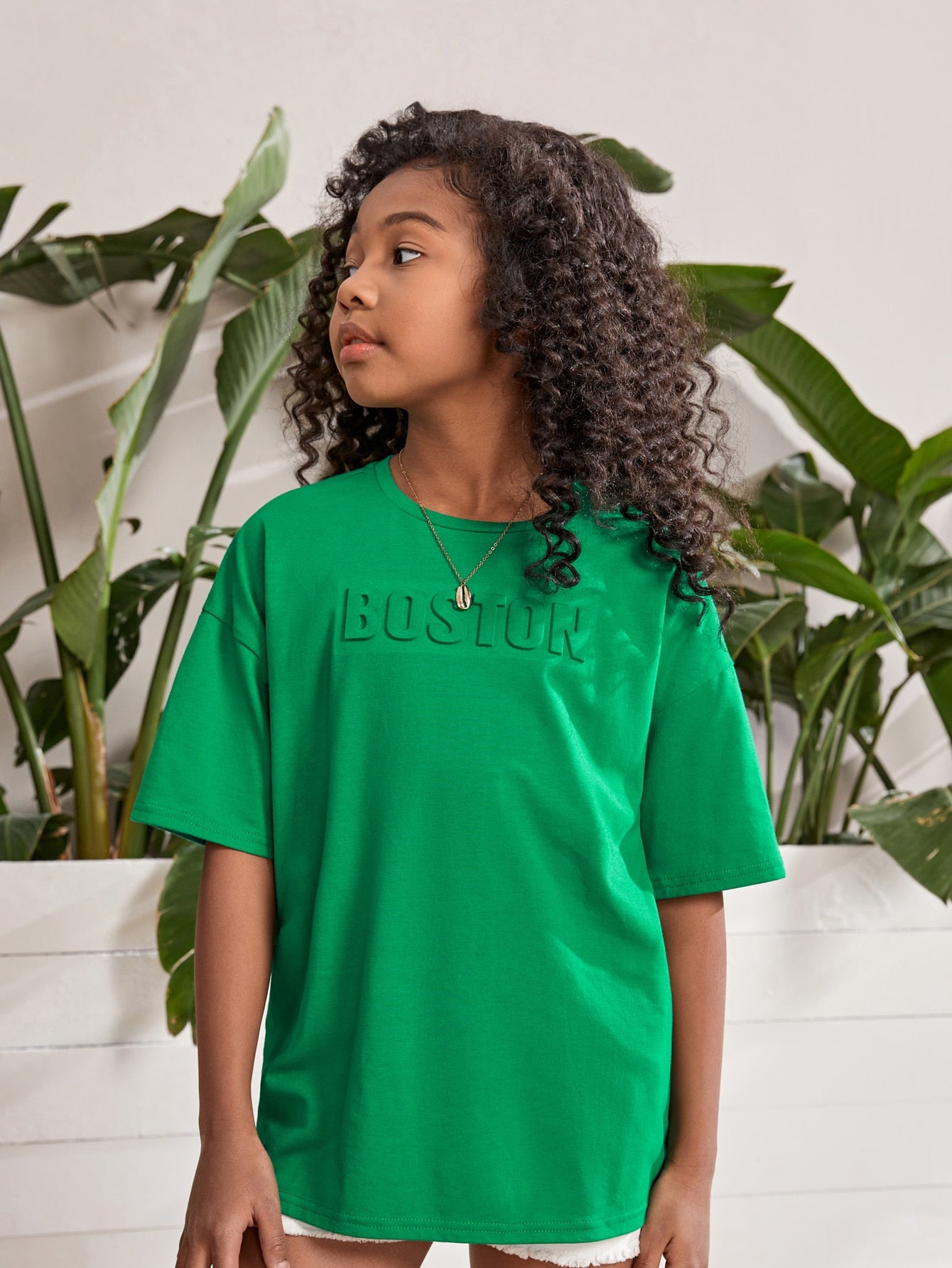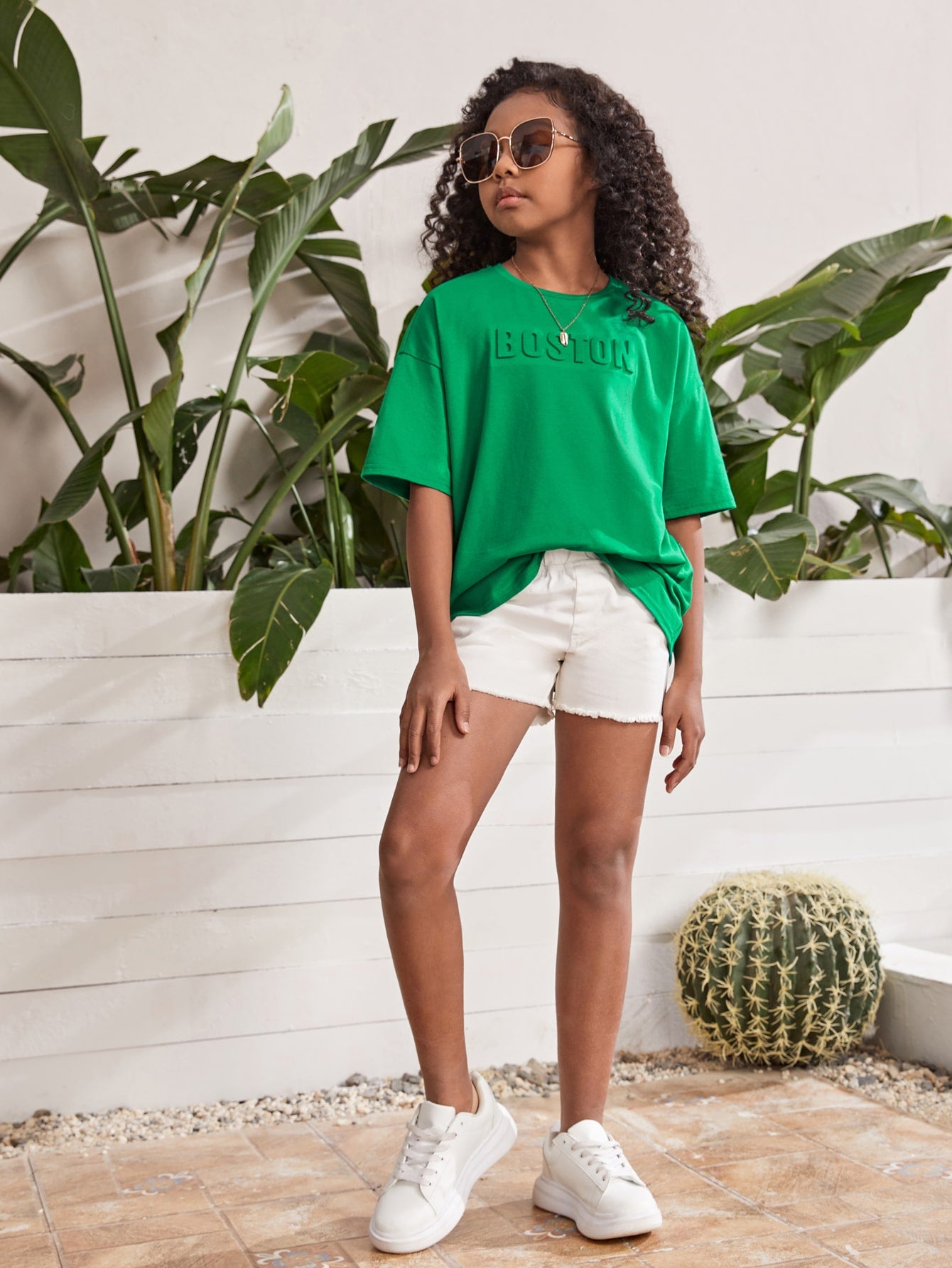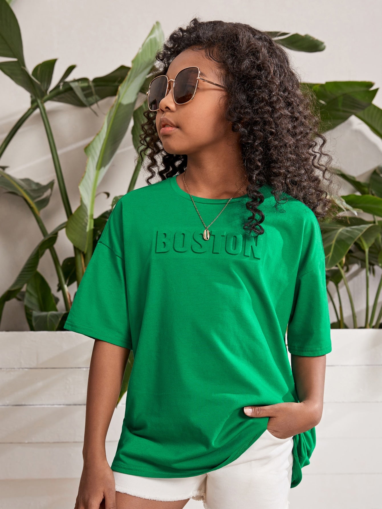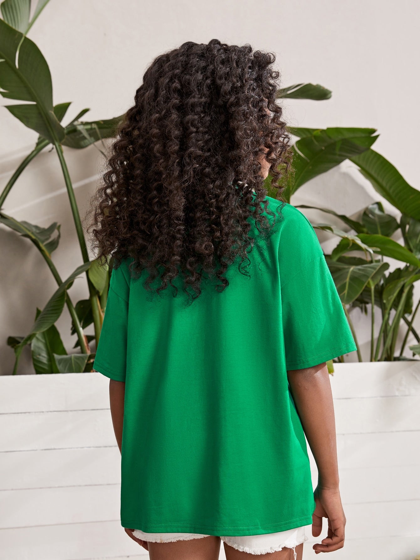 Tween Girl Letter Pattern Drop Shoulder Tee