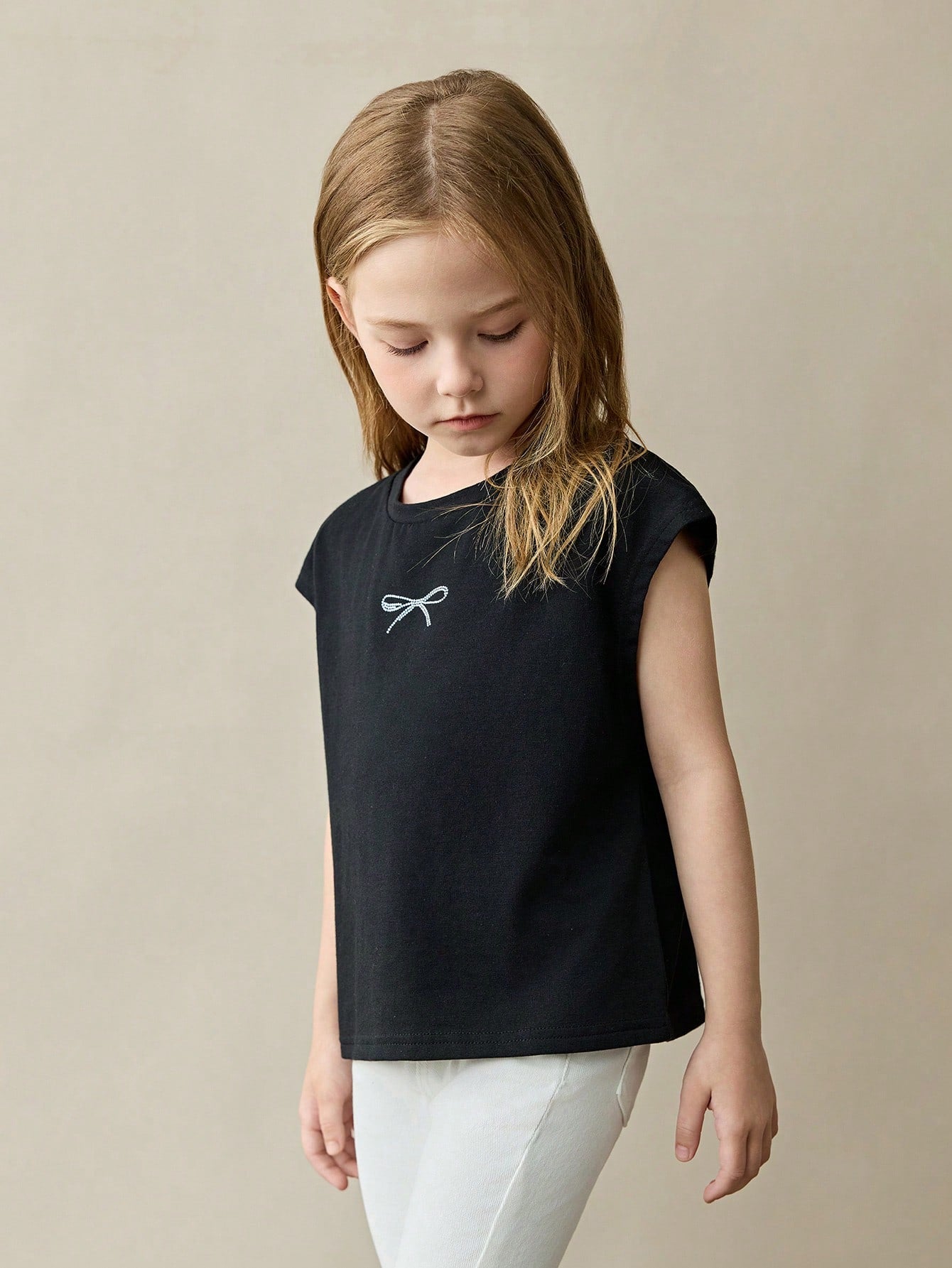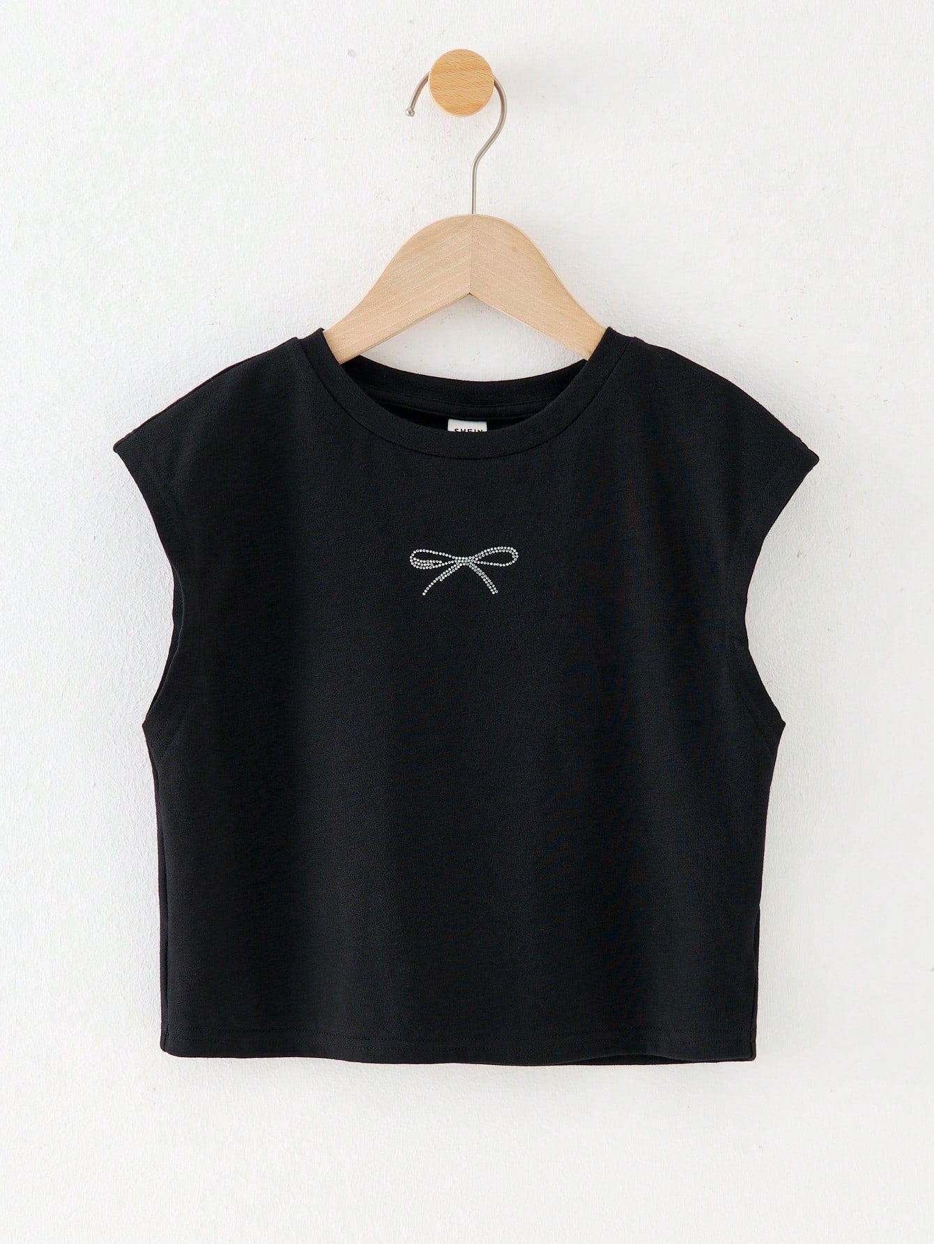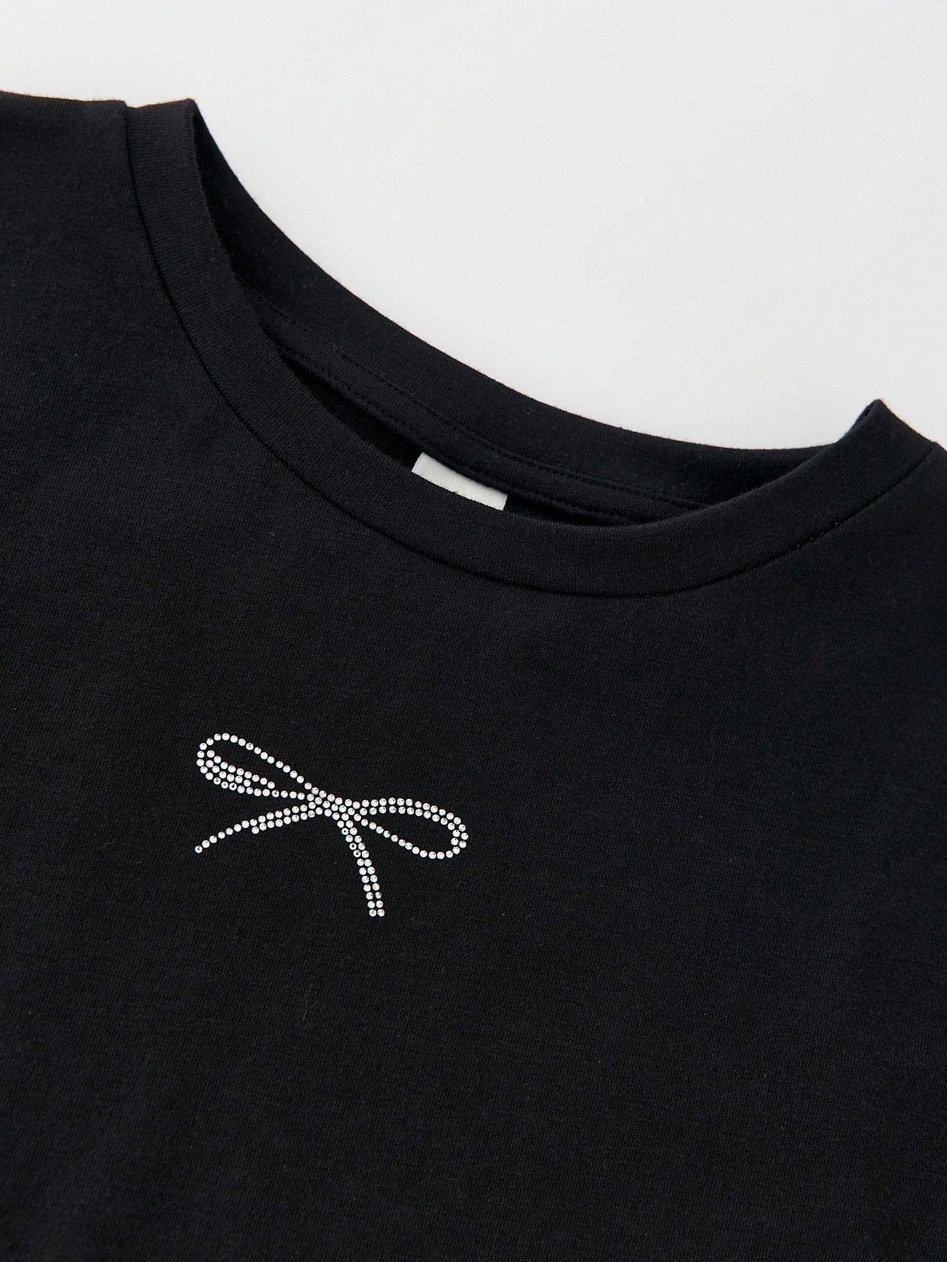 Young Girl Casual Versatile Comfortable Rhinestone Bow Round Neck Loose Pullover Knit T-Shirt