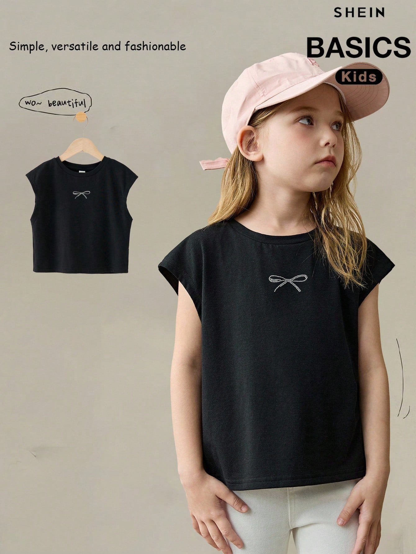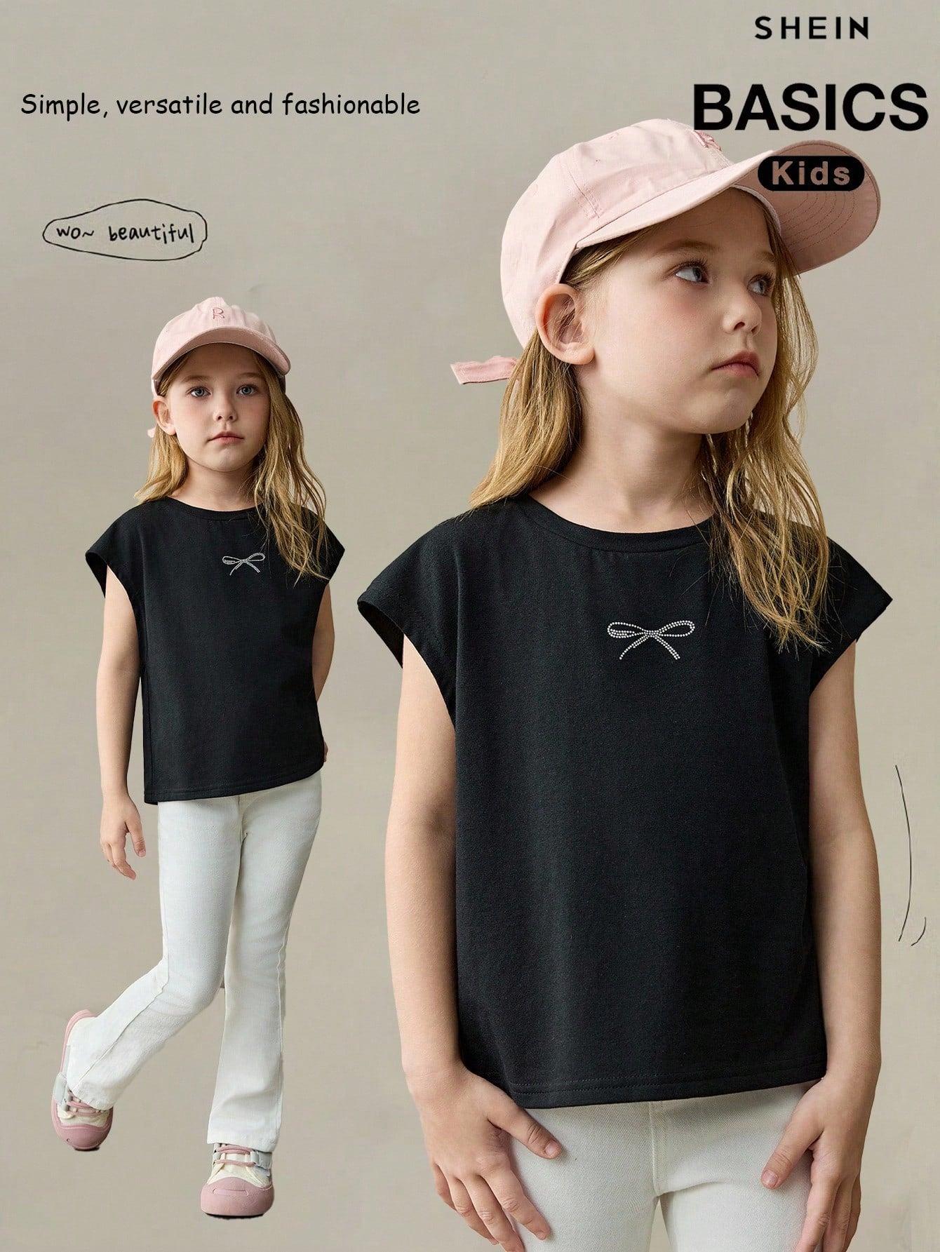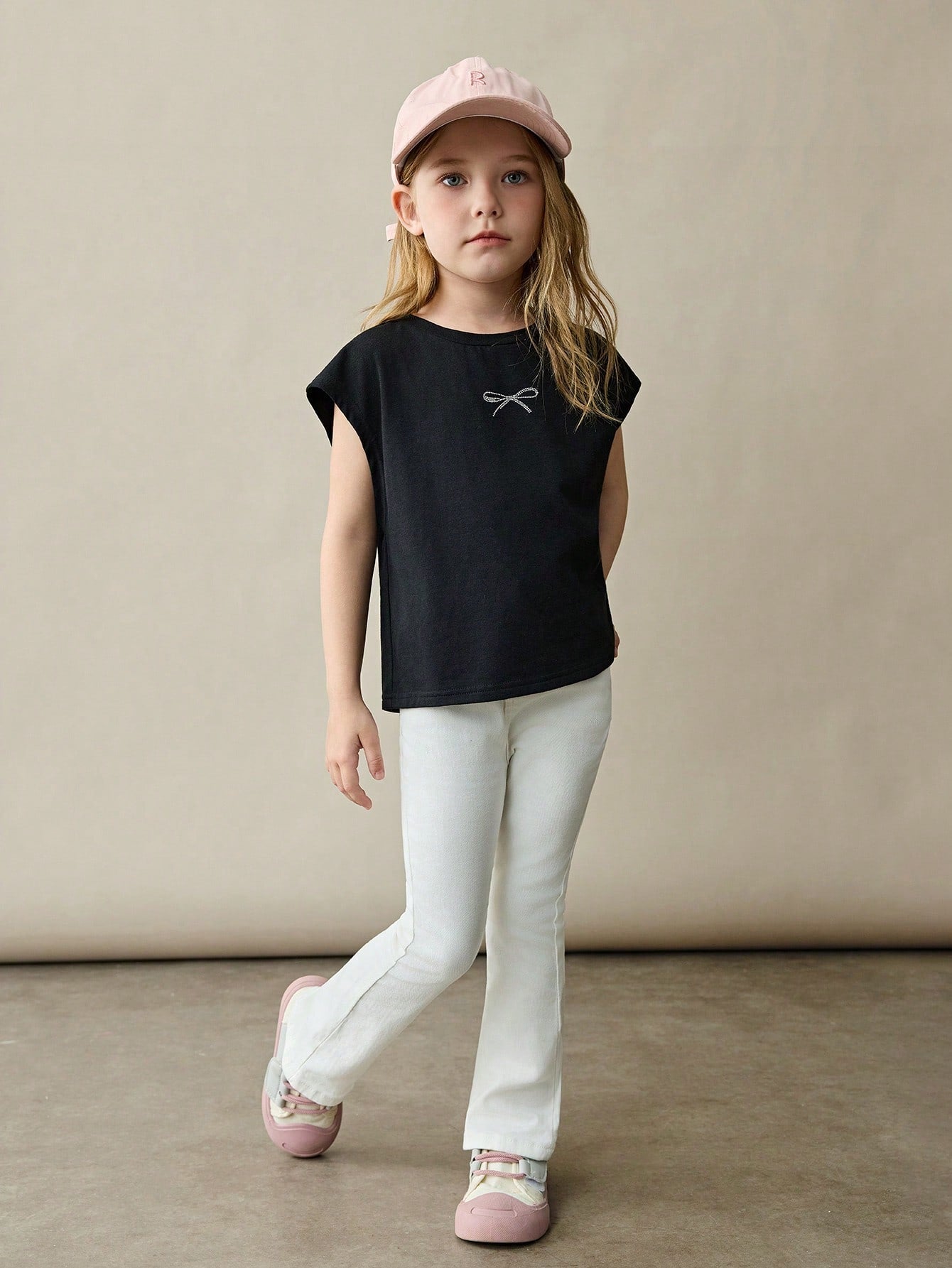 Young Girl Casual Versatile Comfortable Rhinestone Bow Round Neck Loose Pullover Knit T-Shirt