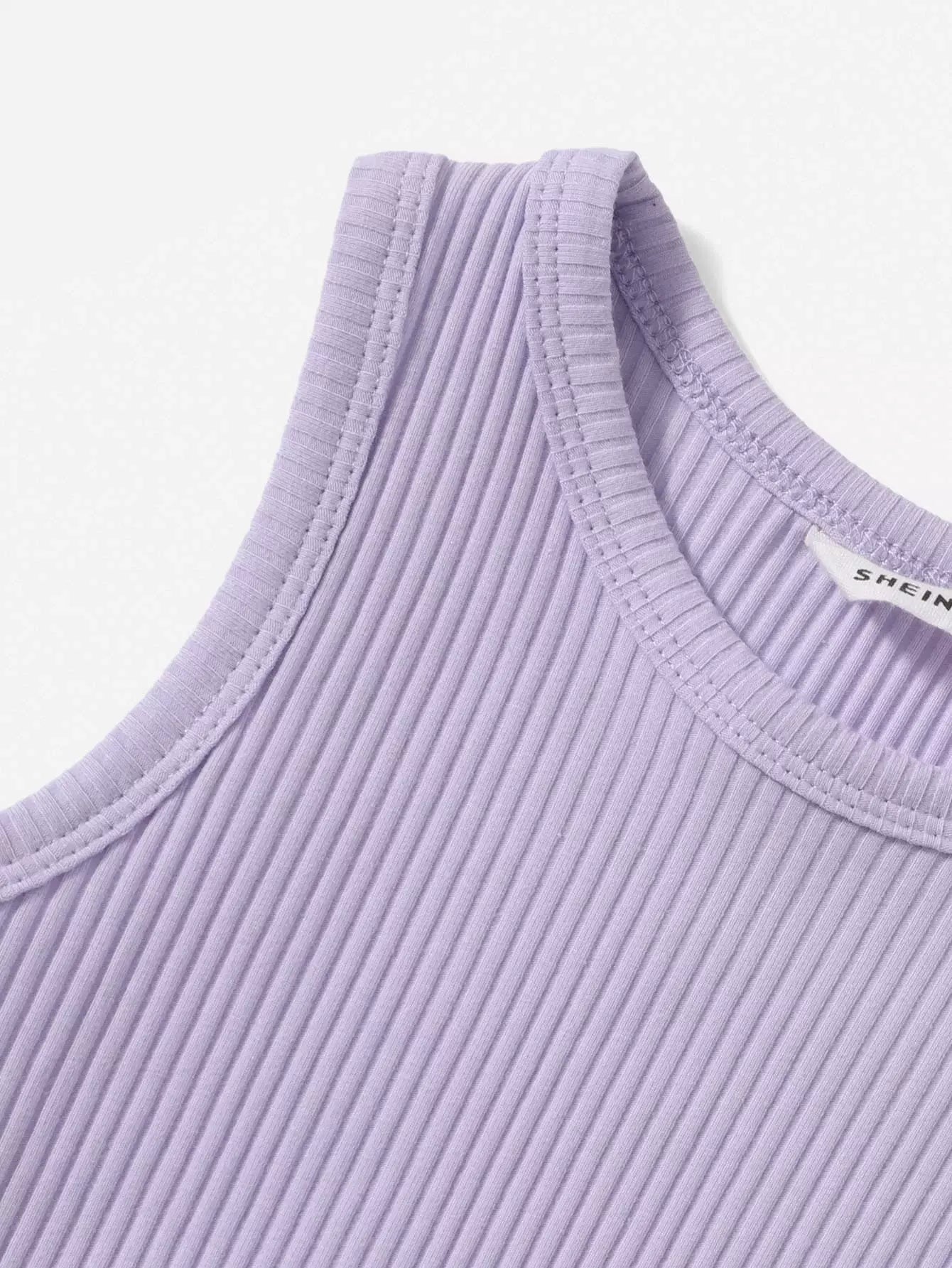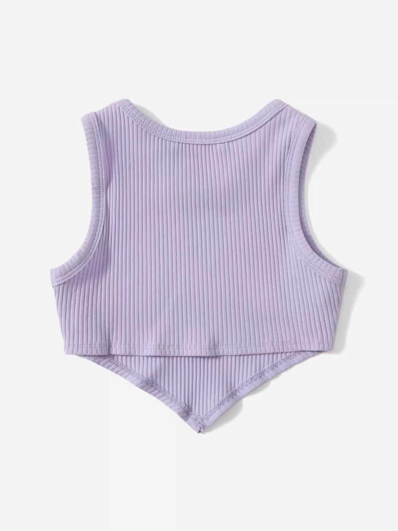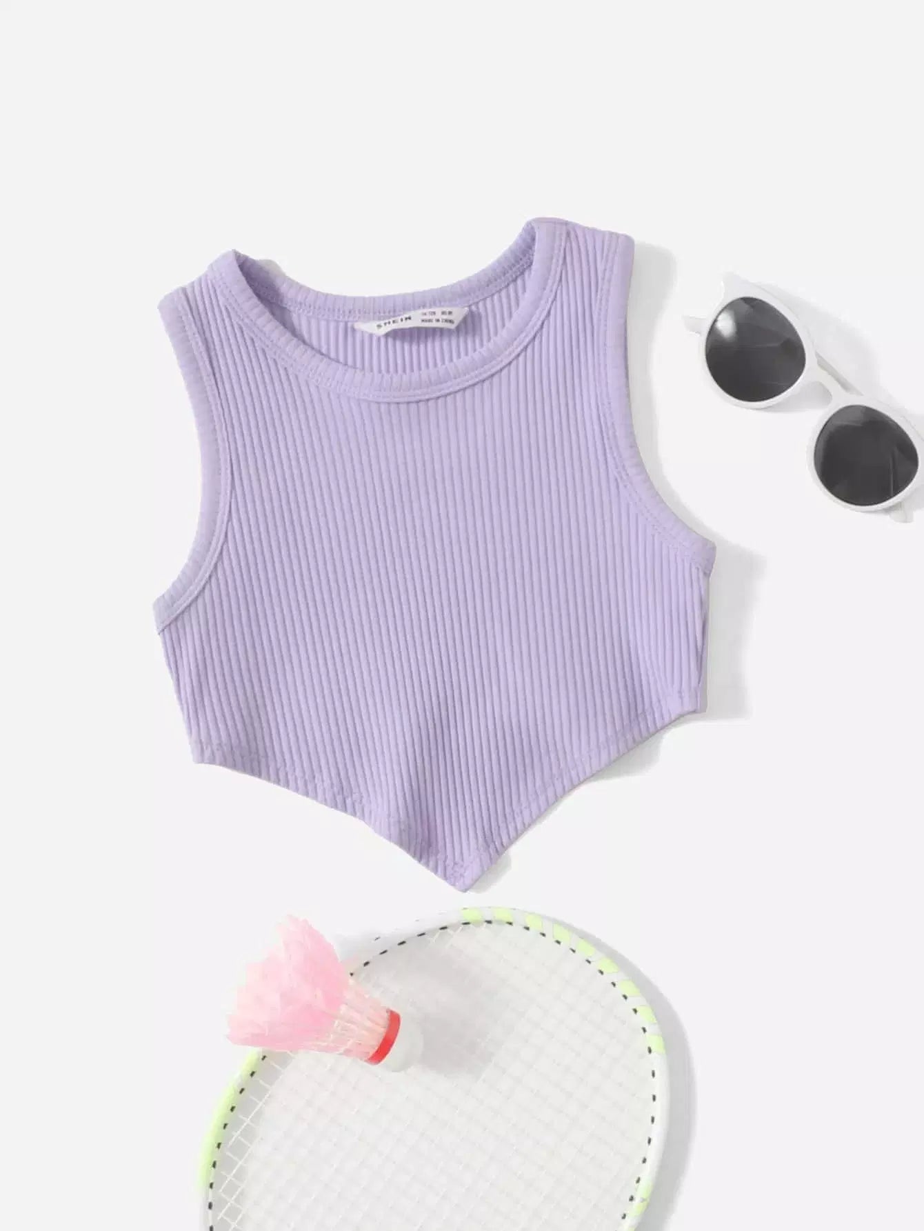 Girls Asymmetrical Hem Rib-knit Crop Tank Top