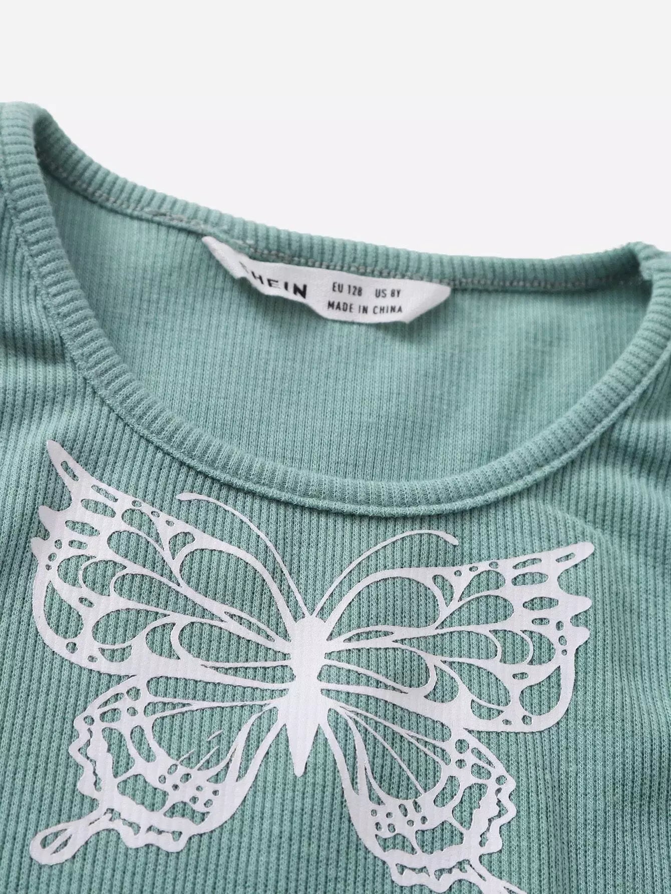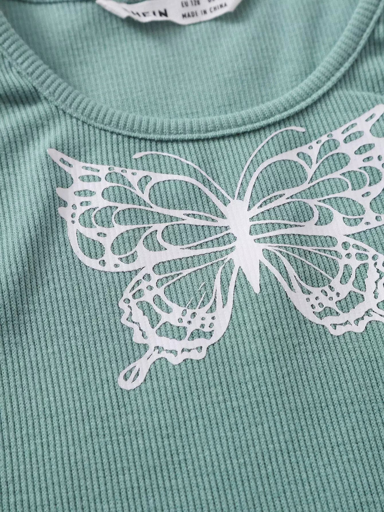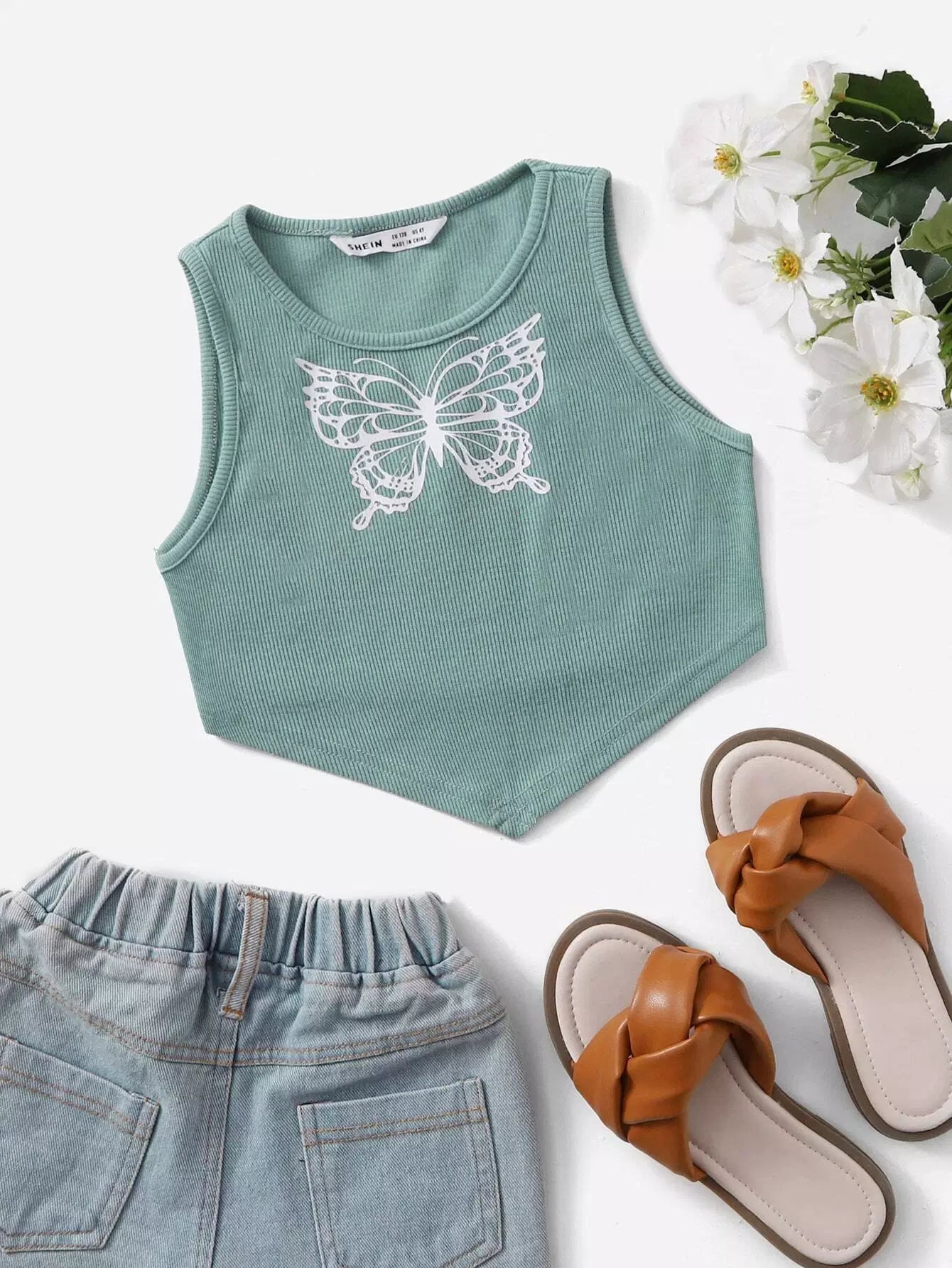 Girls Butterfly Print Bandana Rib Knit Tank Top