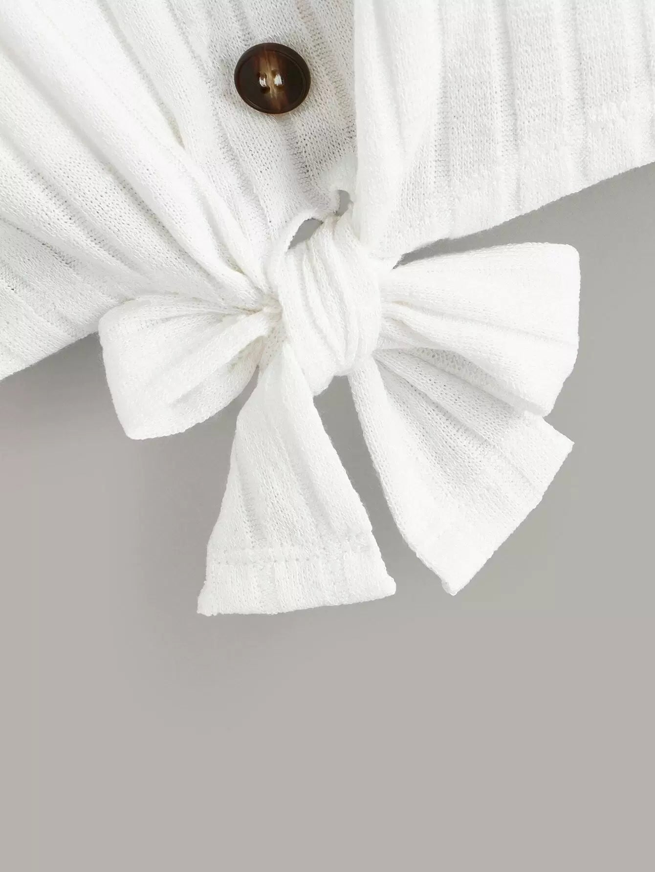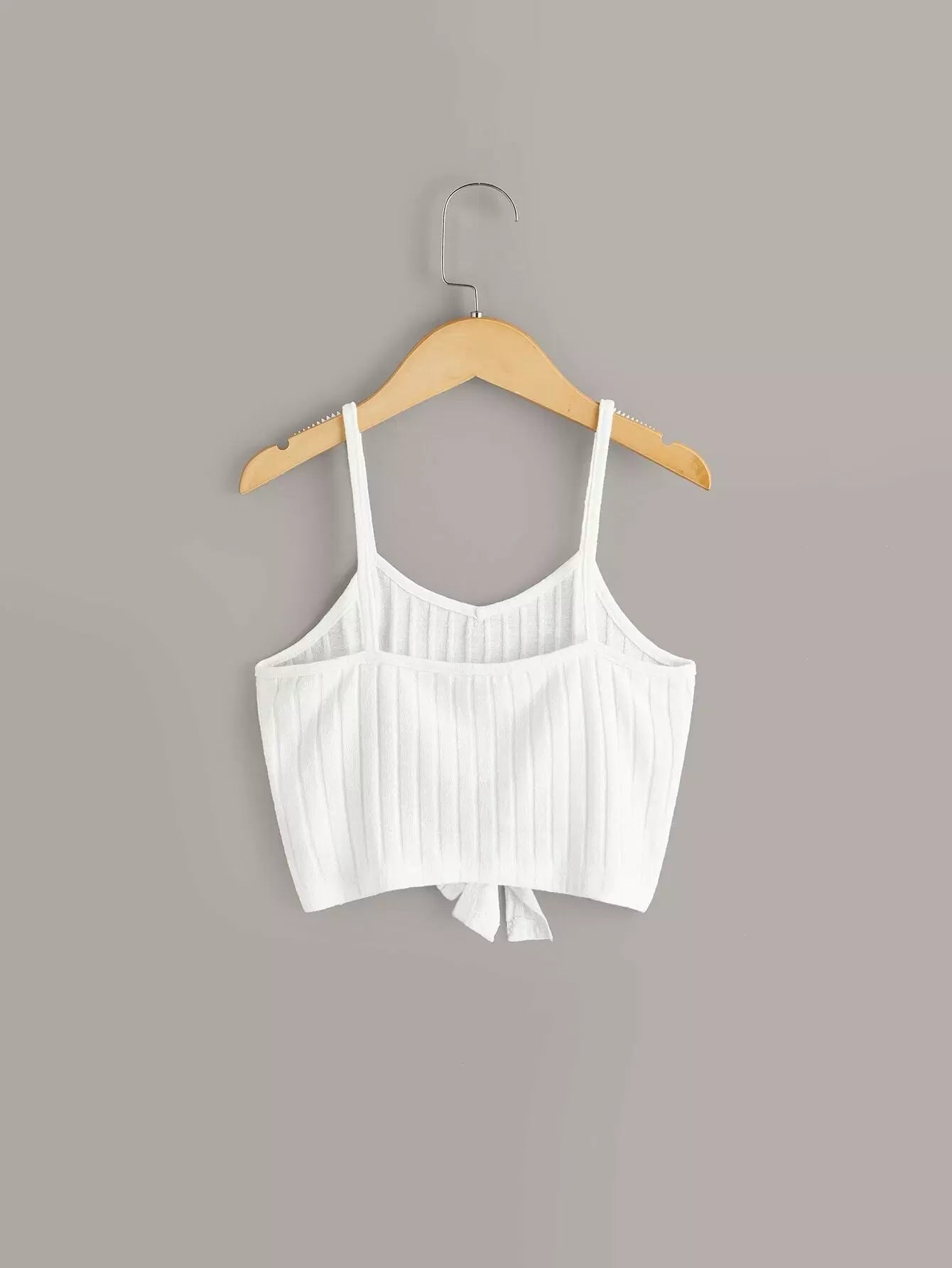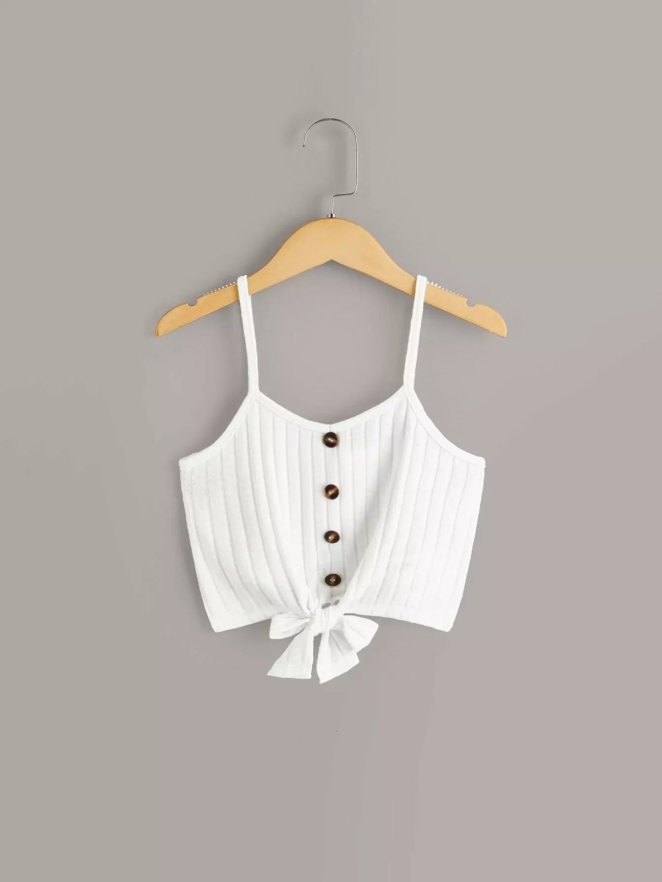 Kids - Girls Button & Knot Front Ribbed Cami Top