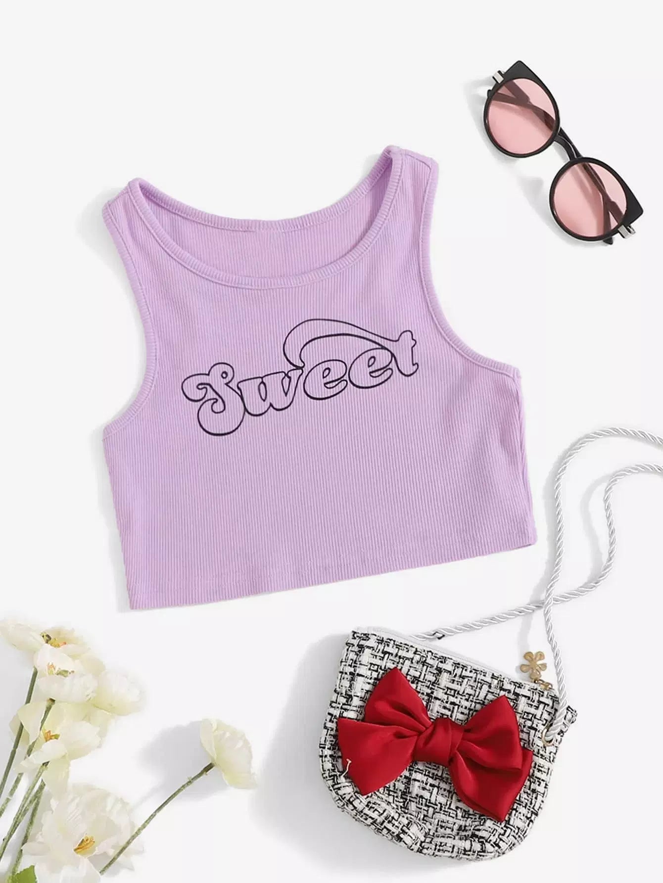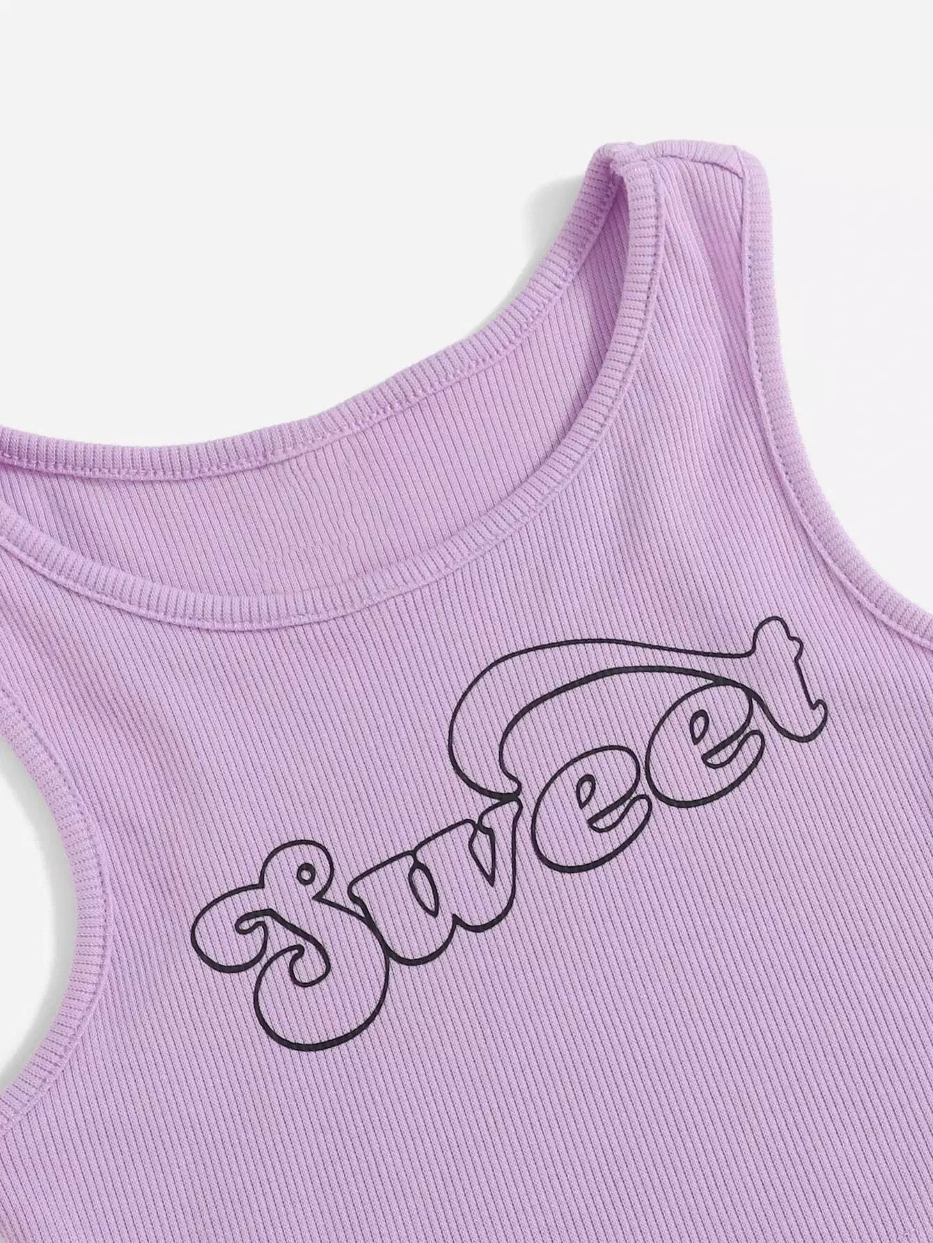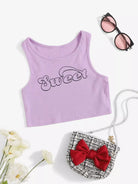 Girls Letter Graphic Rib-knit Tank Top